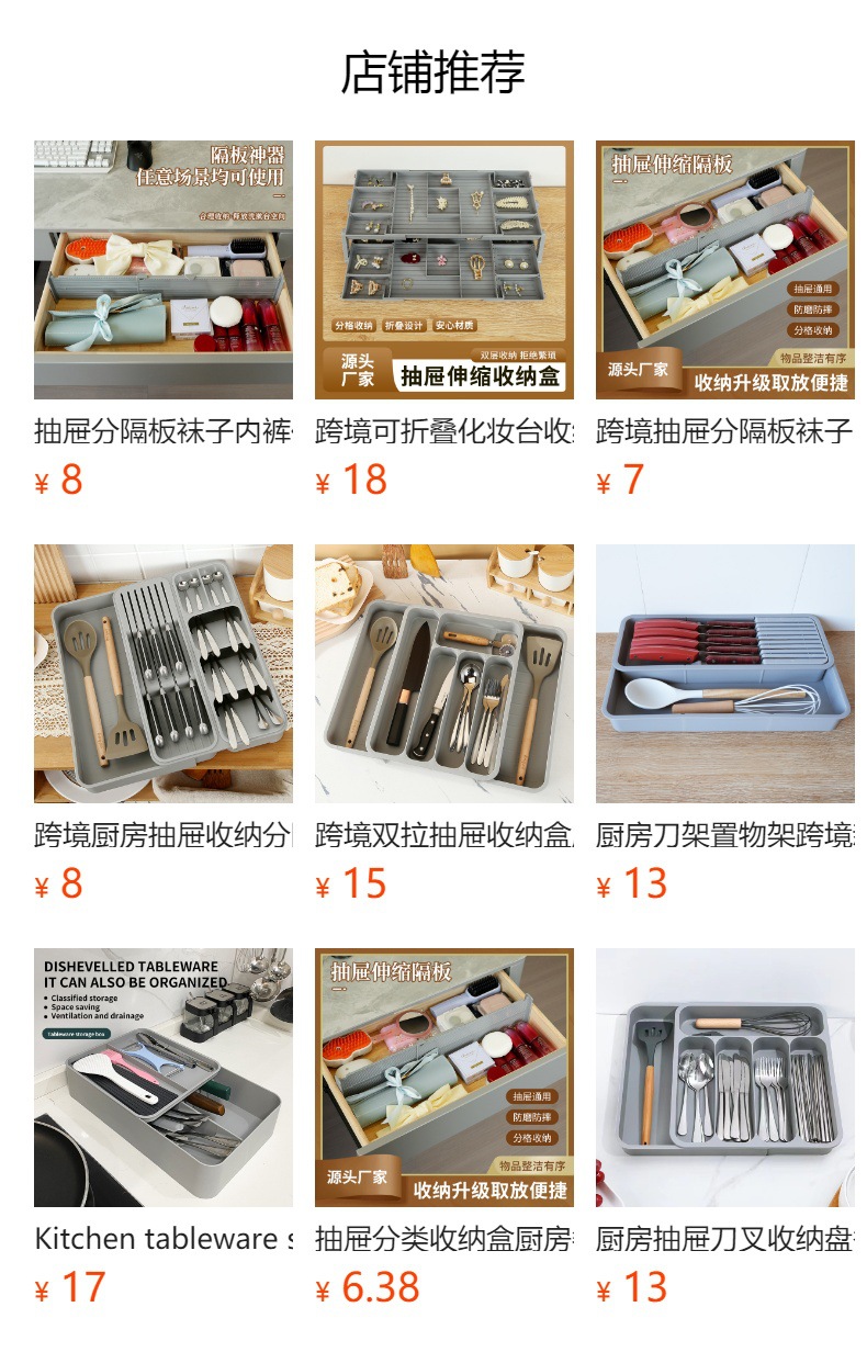 맞춤형 서랍 수납함, 주방 식기 수납함, 대형 양면 확장형 플라스틱 박스, 숟가락, 포크, 나이프에 적합스토어 가기