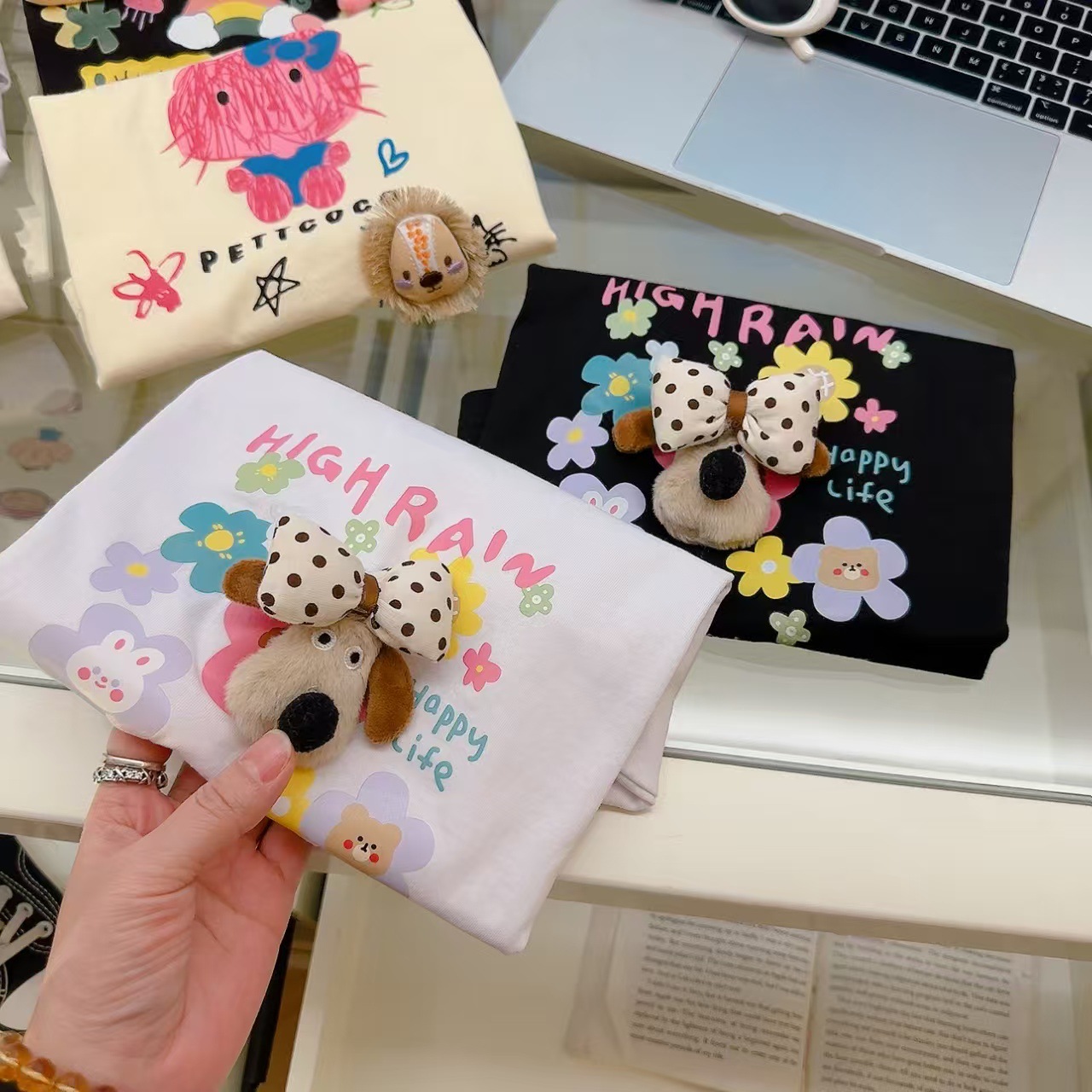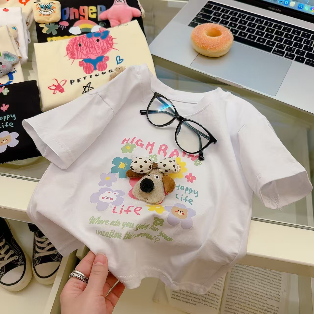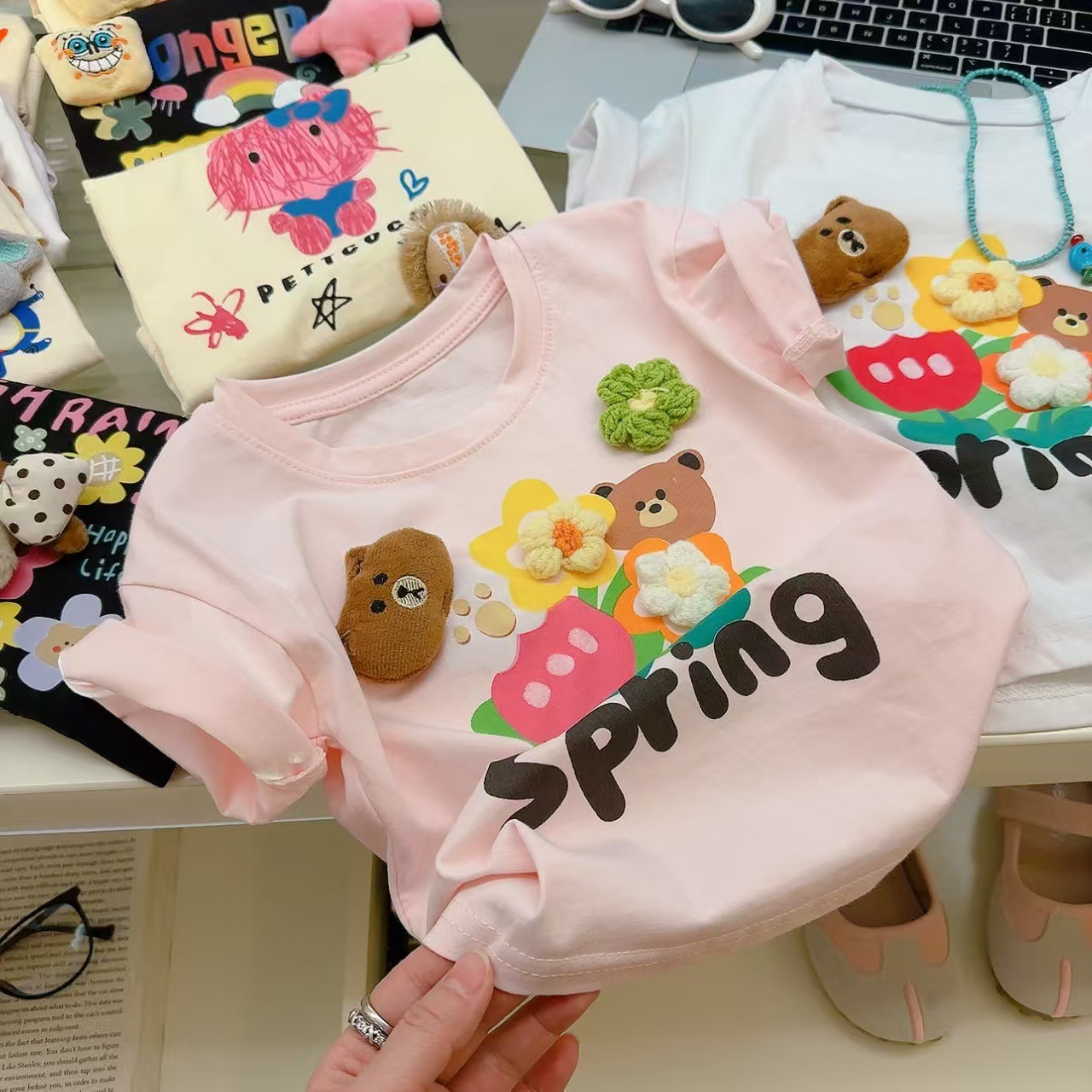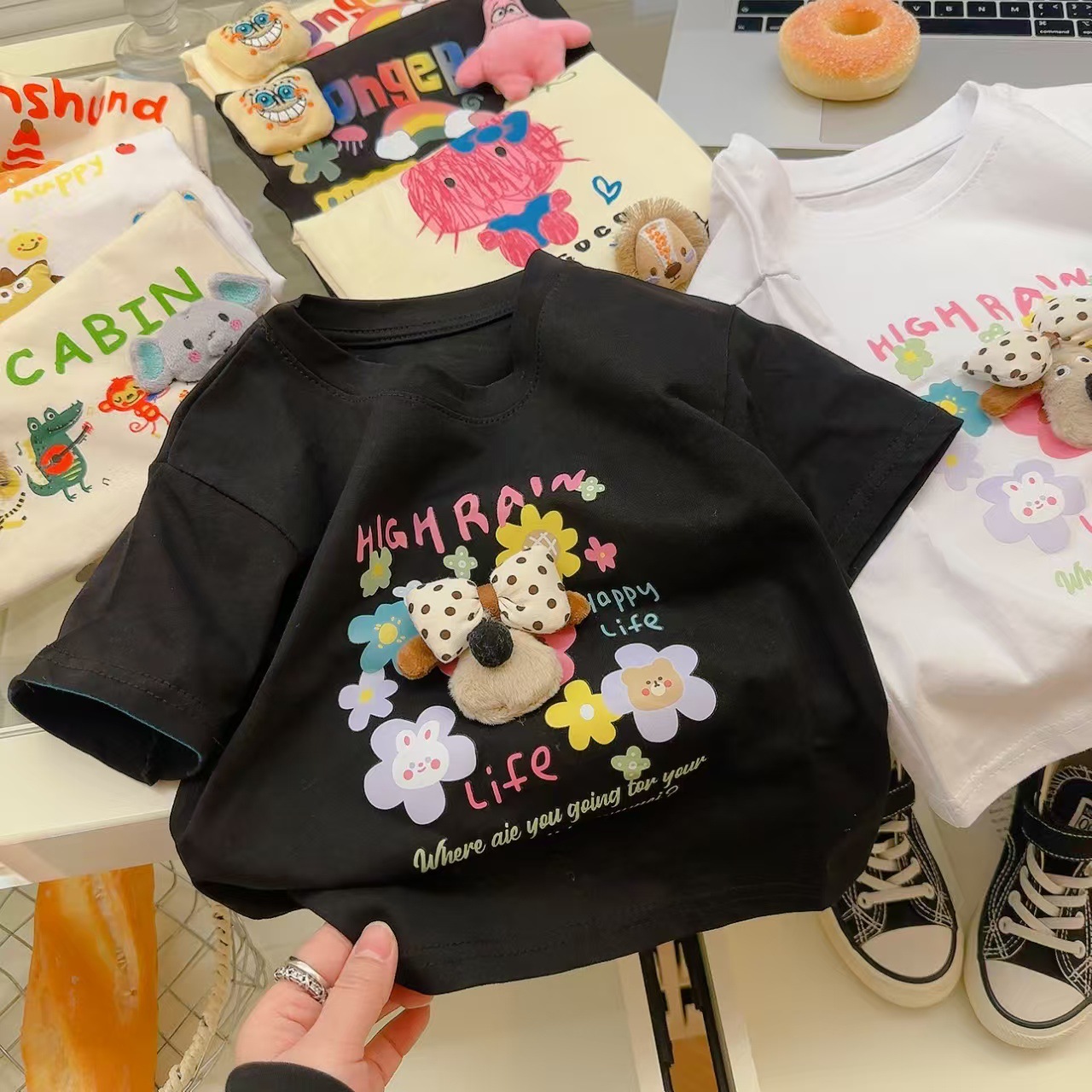 소녀 여름 반소매 티셔츠 2025 새로운 어린이 여름 만화 반소매 소녀 큰 어린이 인터넷-유명한 티셔츠 탑스토어 가기