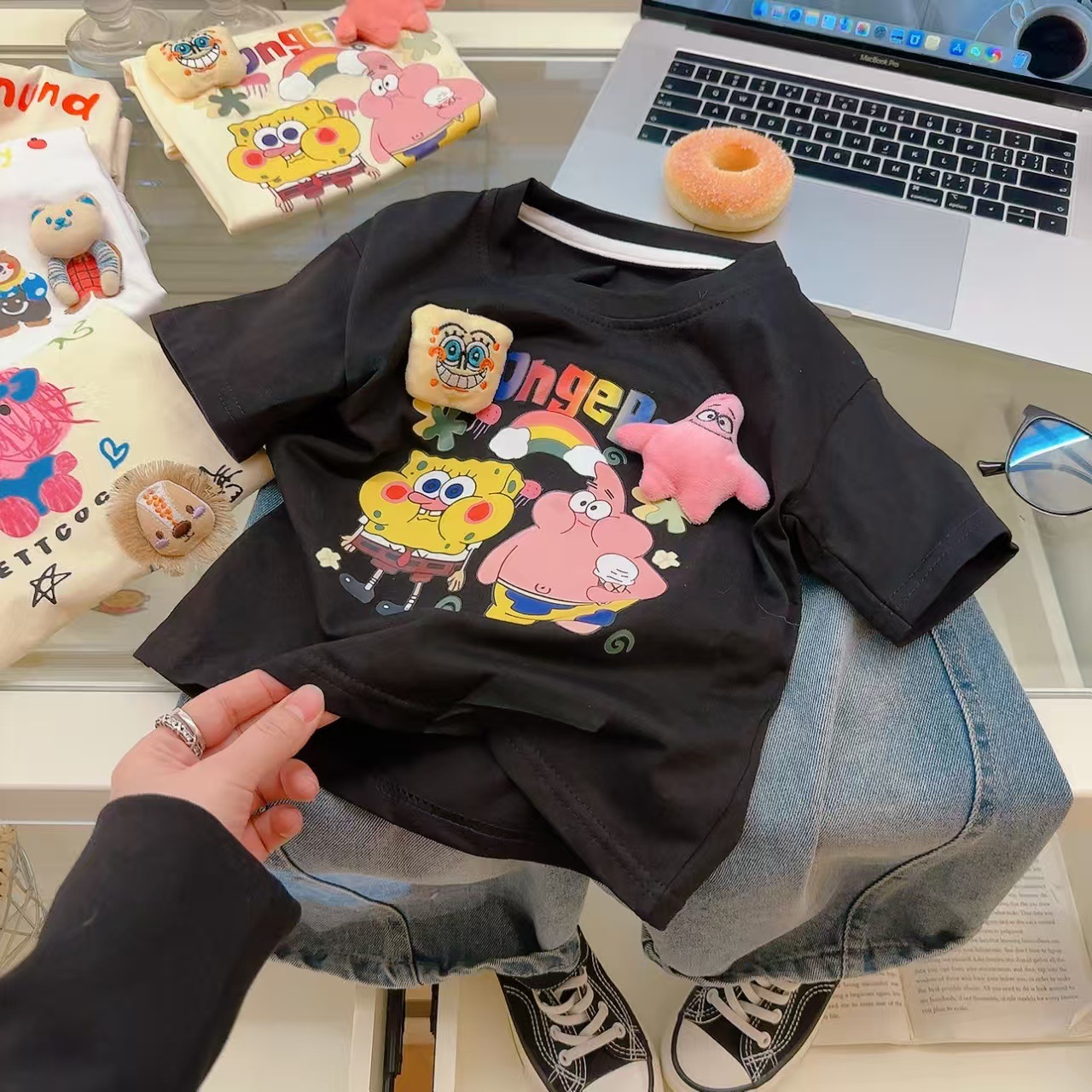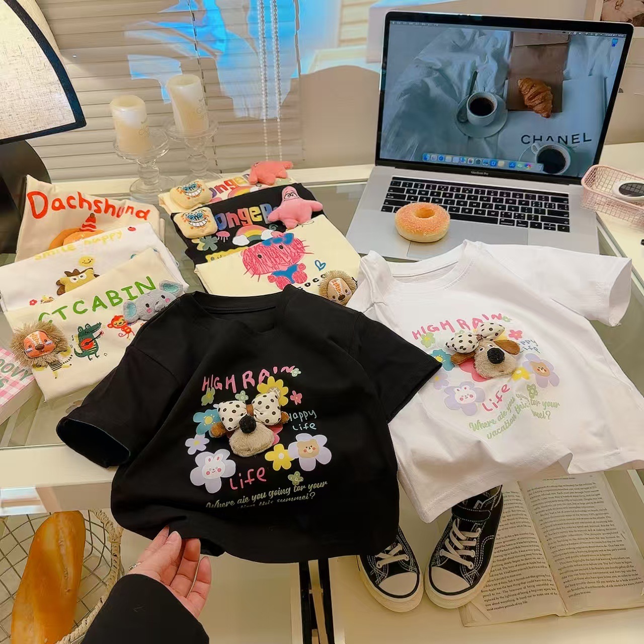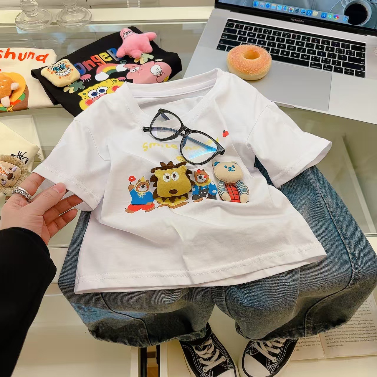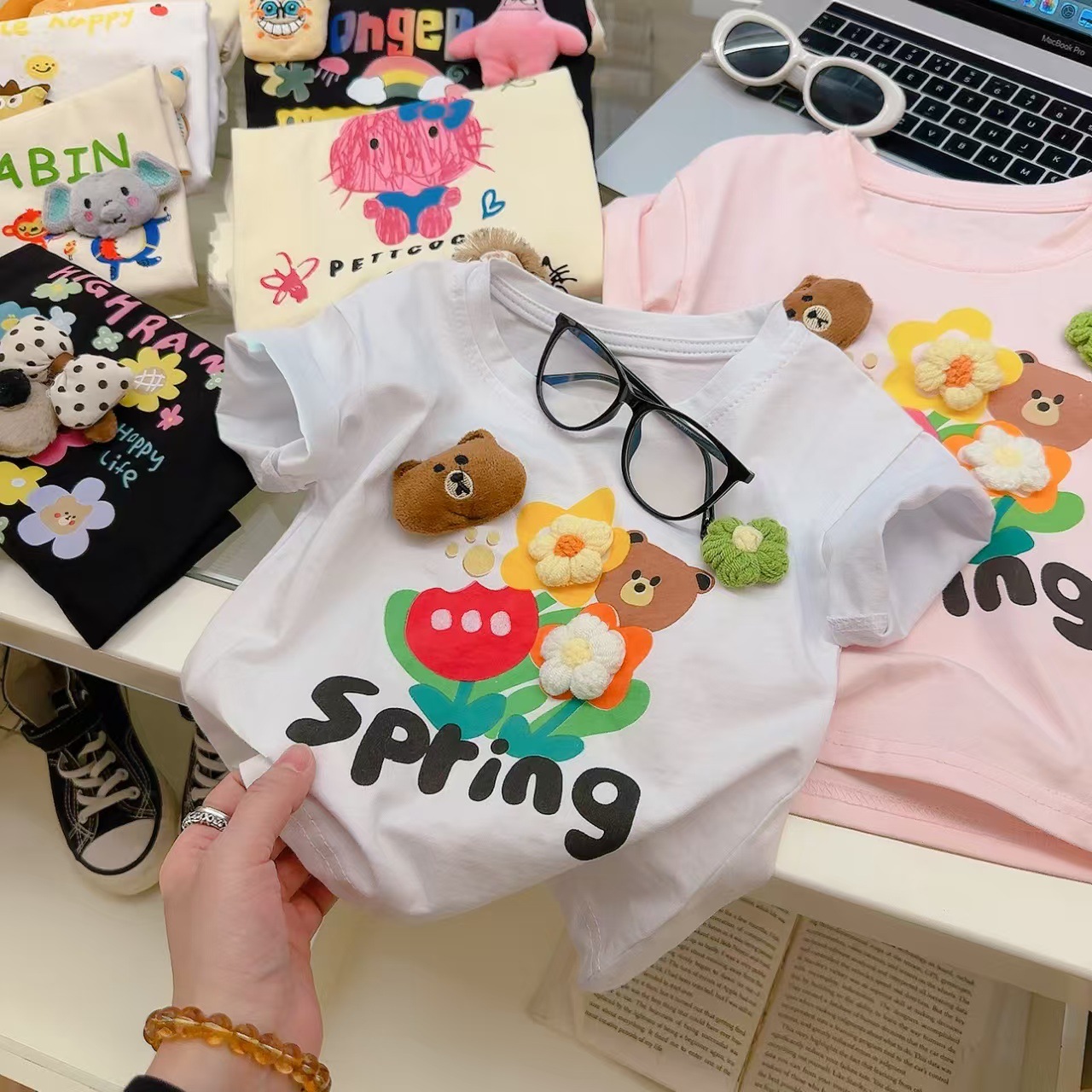 소녀 여름 반소매 티셔츠 2025 새로운 어린이 여름 만화 반소매 소녀 큰 어린이 인터넷-유명한 티셔츠 탑스토어 가기