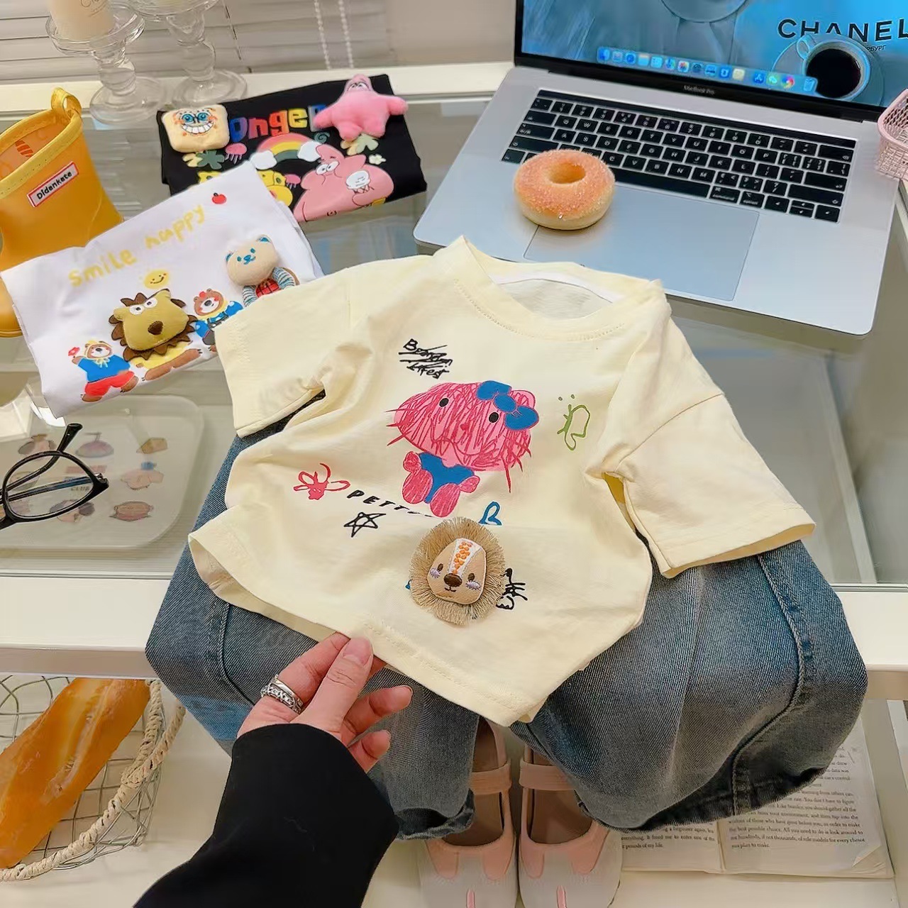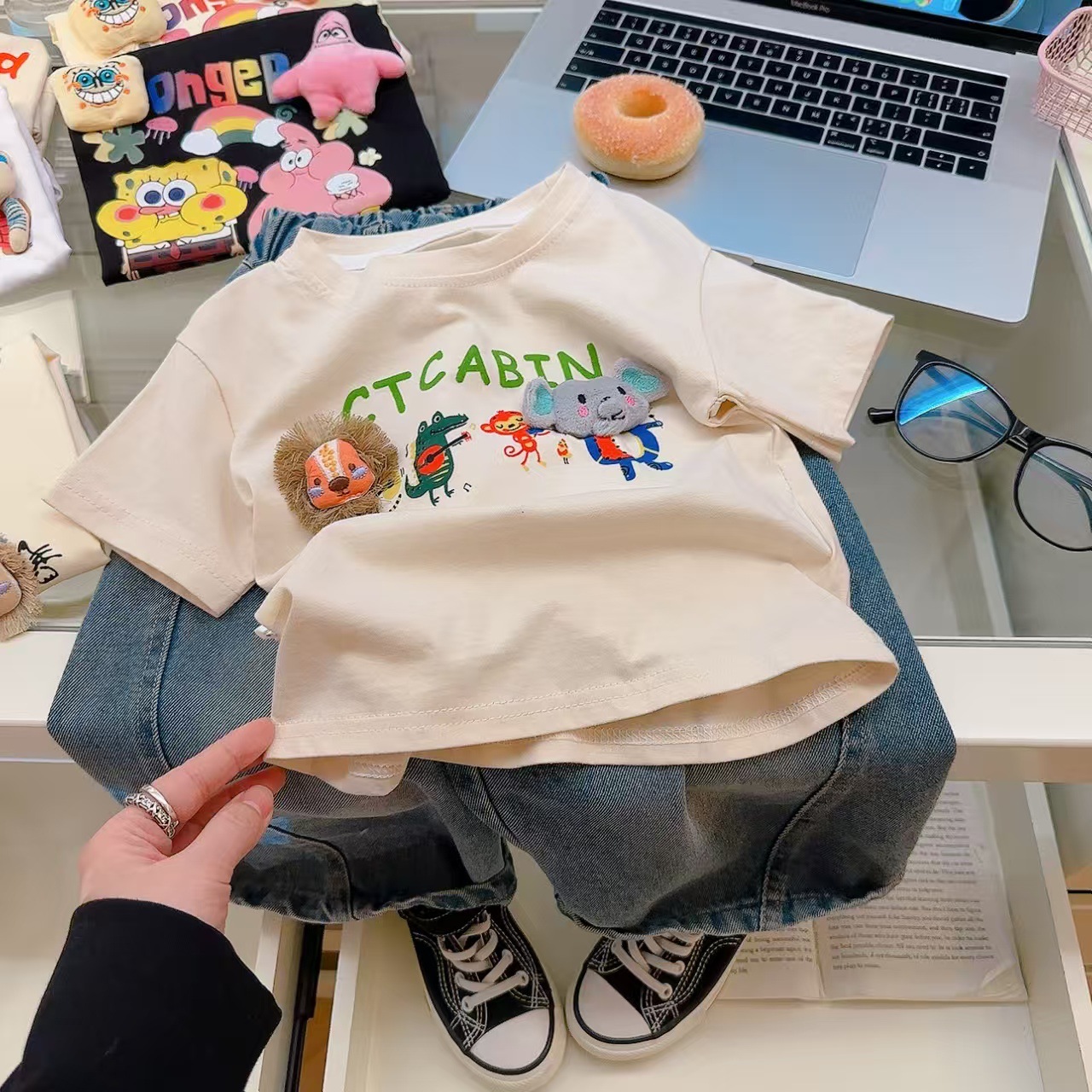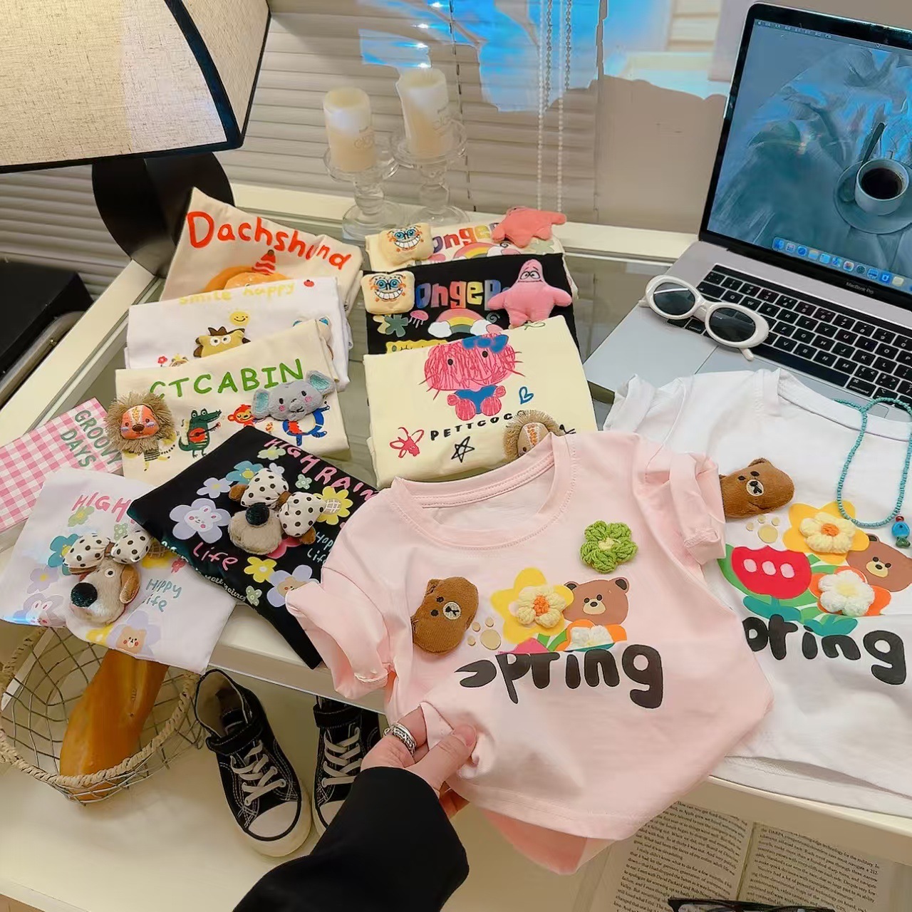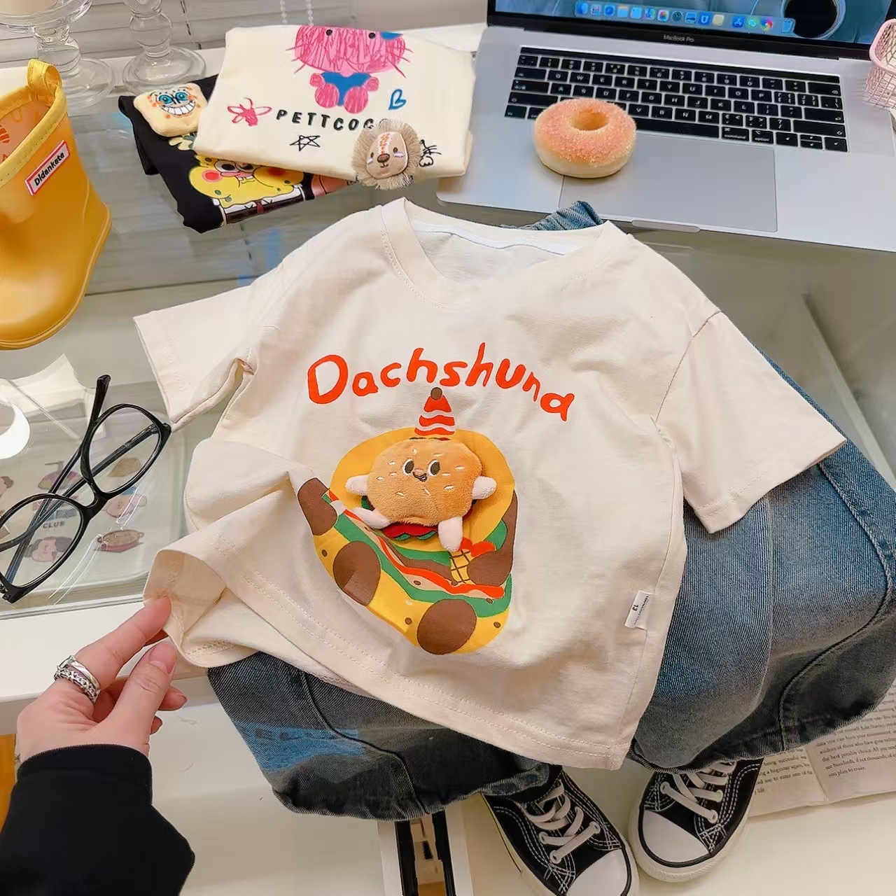 소녀 여름 반소매 티셔츠 2025 새로운 어린이 여름 만화 반소매 소녀 큰 어린이 인터넷-유명한 티셔츠 탑스토어 가기