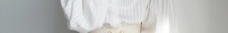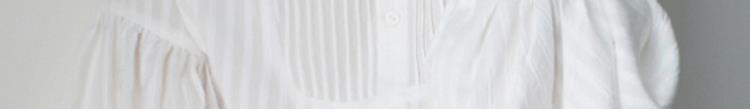 2025 봄과 가을 새로운 스타일 프랑스 복고풍 우아한 기질 어두운 세로 줄무늬 주름 스탠드 칼라 랜턴 슬리브 여성용 흰색 셔츠스토어 가기