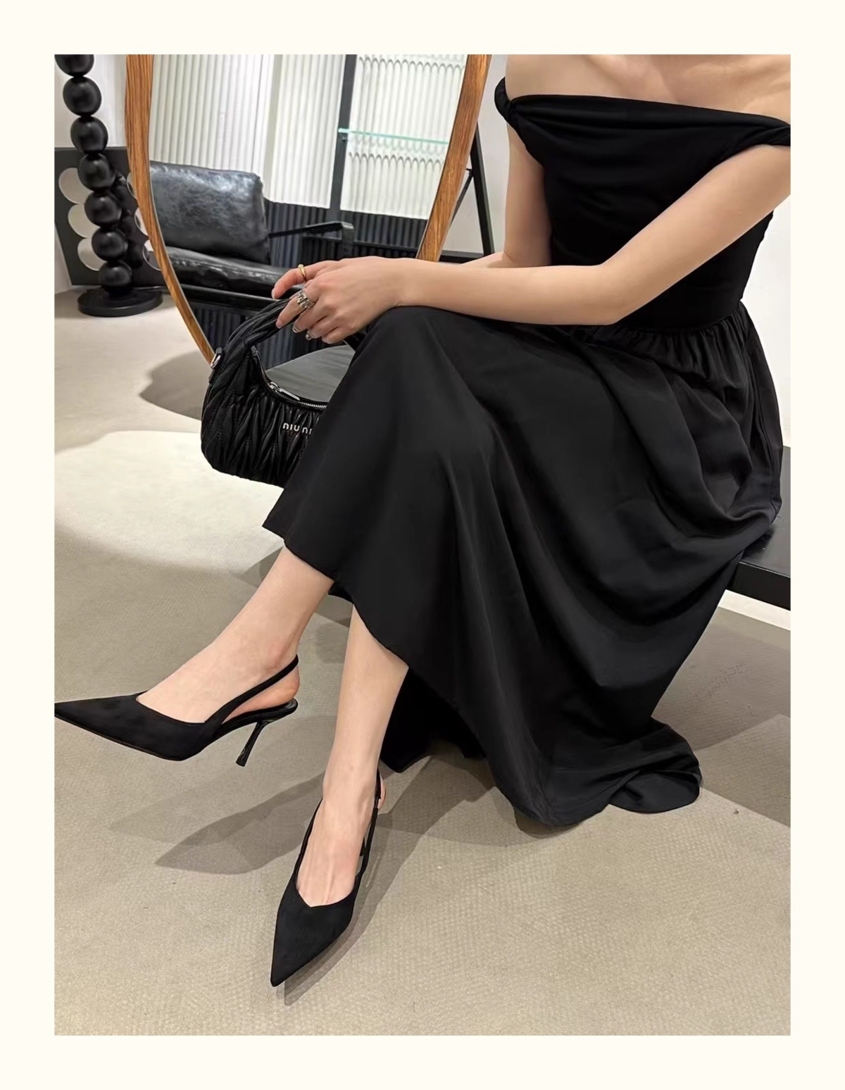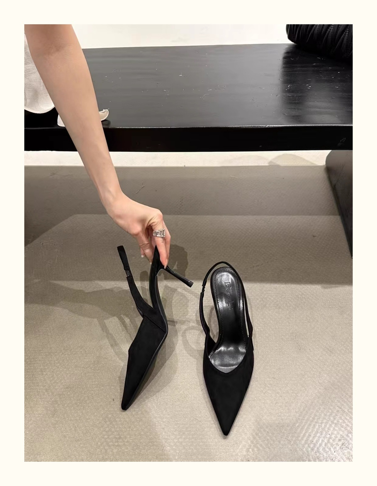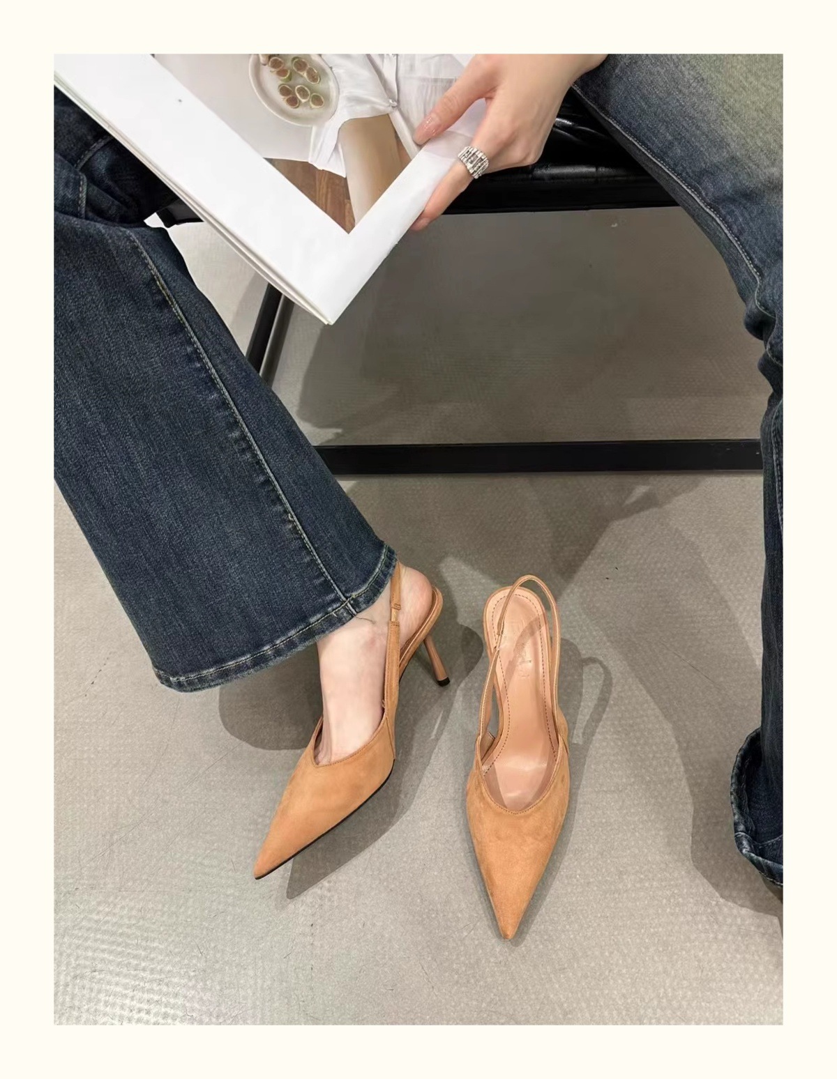 두 높이 ~ 프랑스 뾰족한 레오파드 하이힐 발가락 샌들 여성용 봄과 여름 스틸레토 힐 스웨이드 리어 빈 신발
