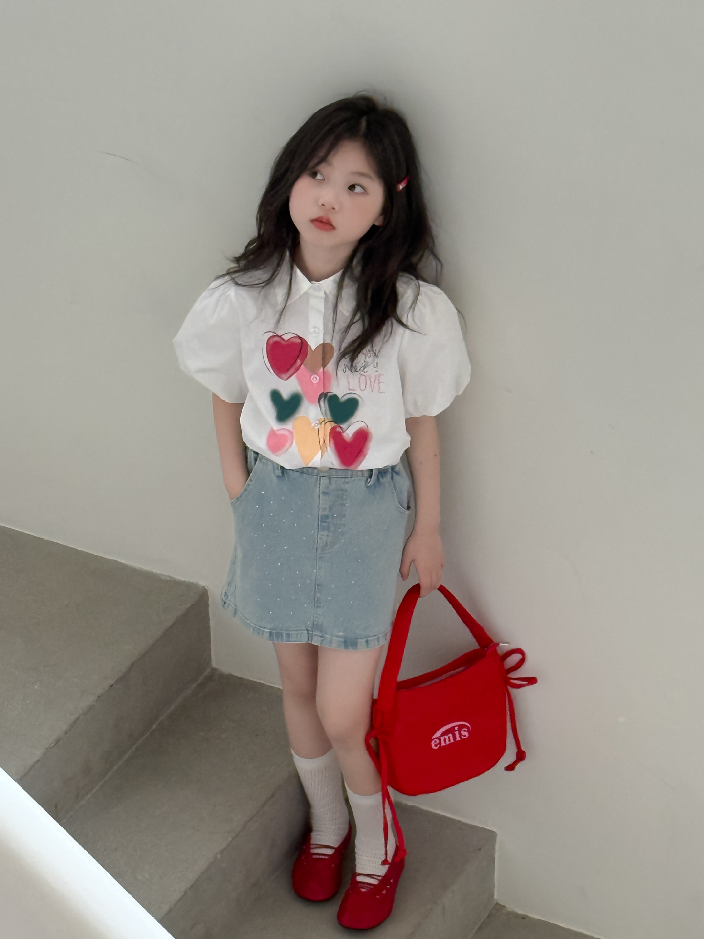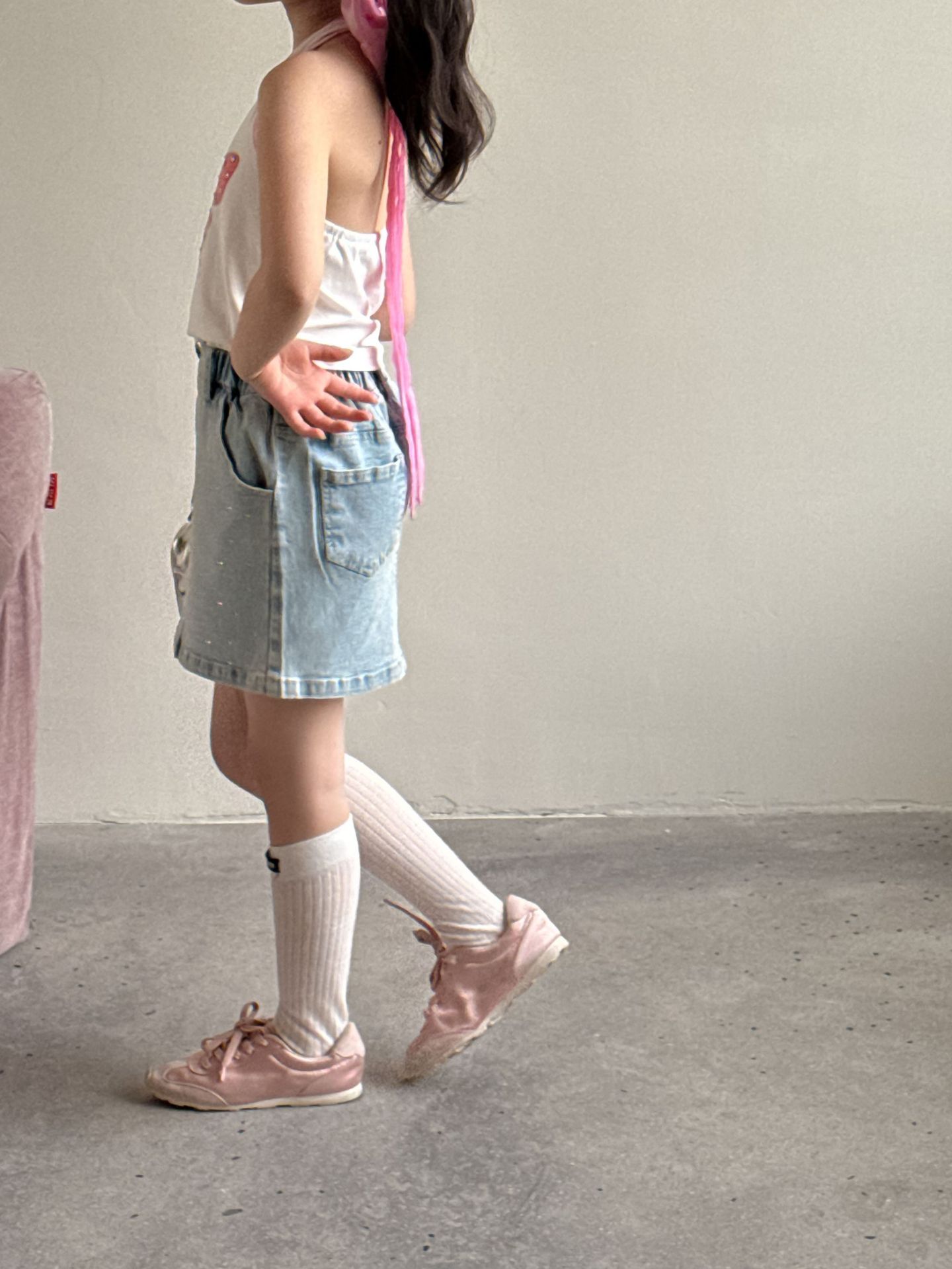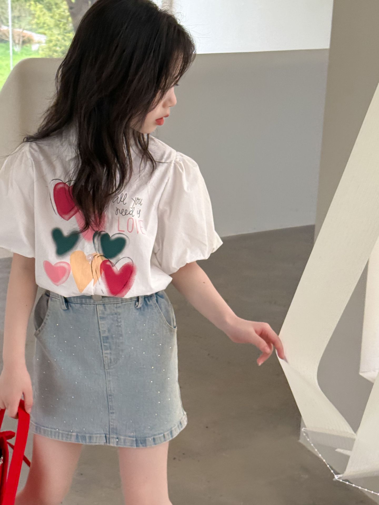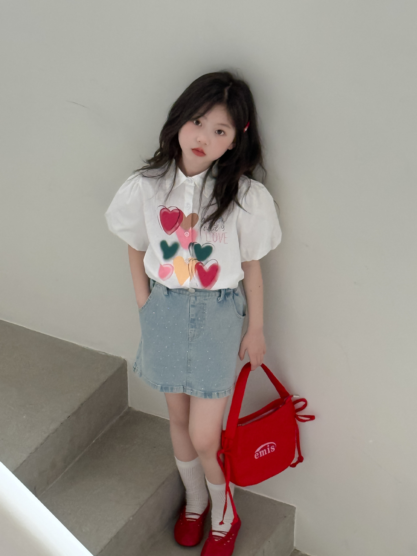어린이 치마 2025 여름 새 소녀의 다이아몬드가 박힌 패션 블루 데님 스커트 여성 올 매치 바지 스커트 슬림 핏 스커트스토어 가기