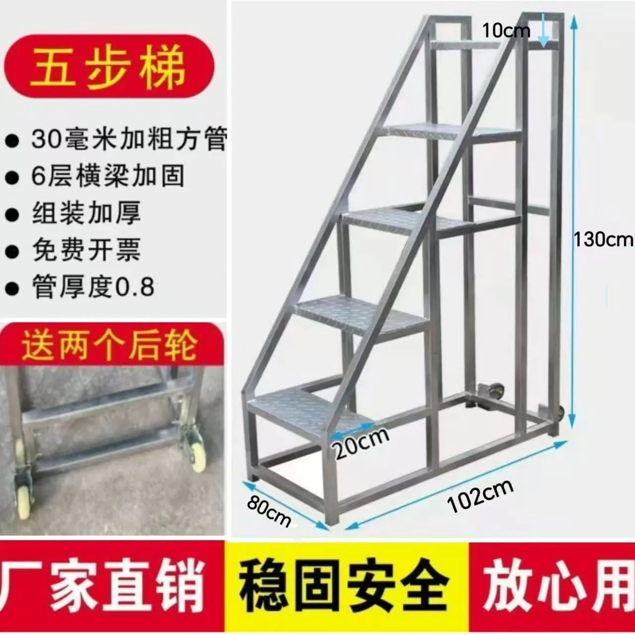 • 사다리 46cm 폭 두꺼운 튜브 0.8 보드 1.0-5단 사다리 높이 130cm 뒷바퀴 포함