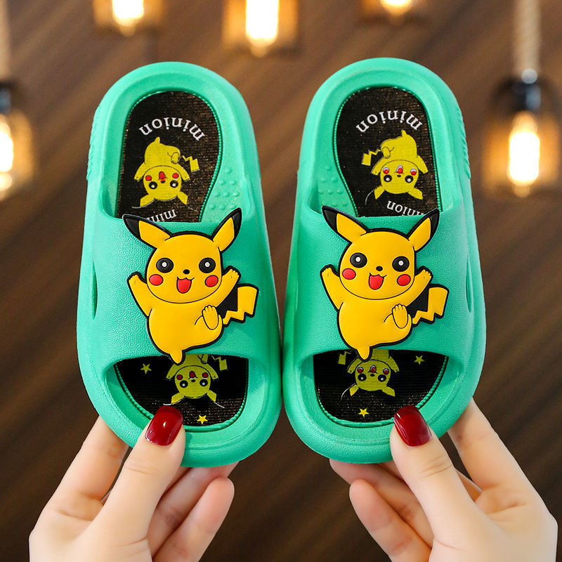 어린이 슬리퍼 소년 Bikachu 귀여운 만화 실내 미끄럼 부드러운 바닥 홈 욕실 아기 소년 슬리퍼스토어 가기