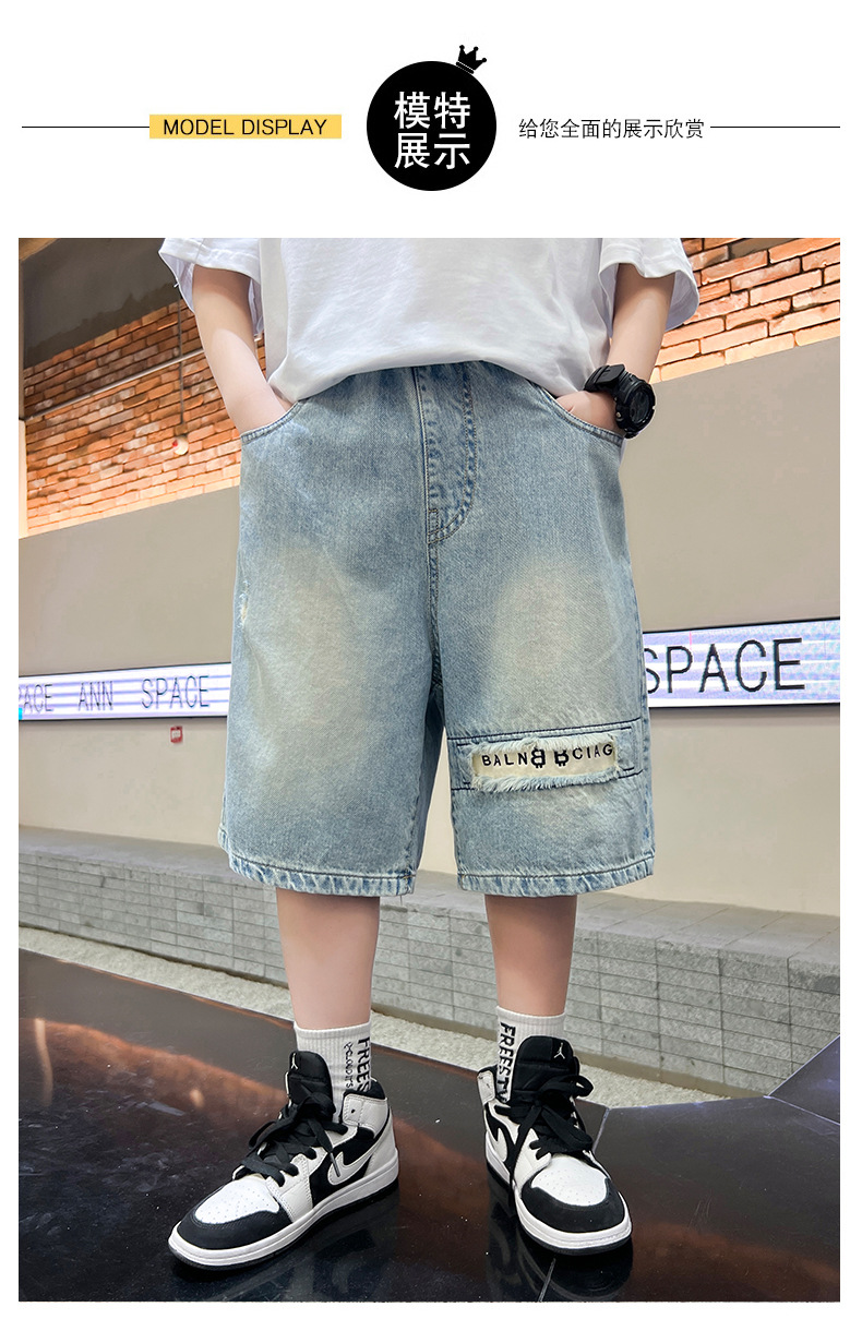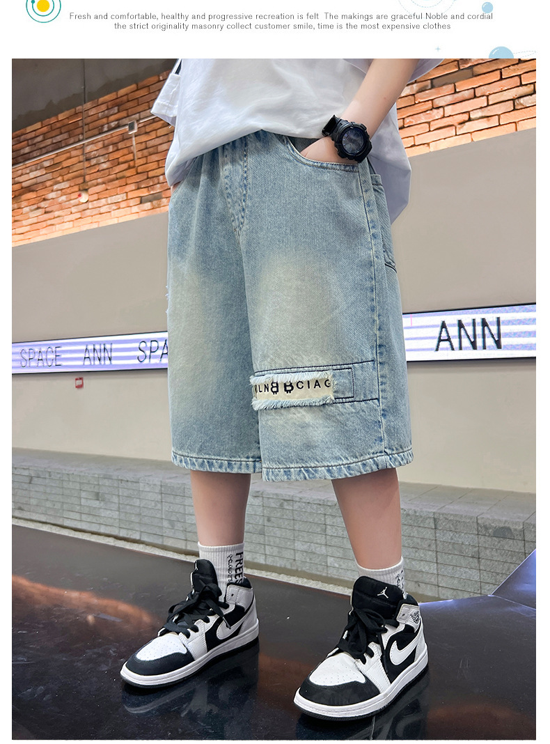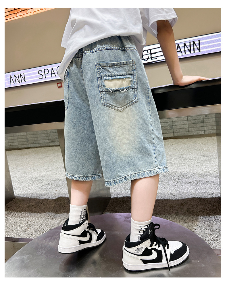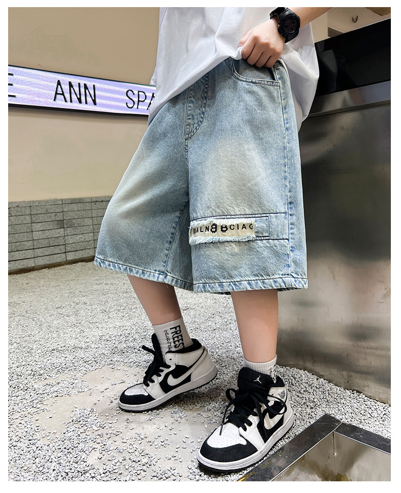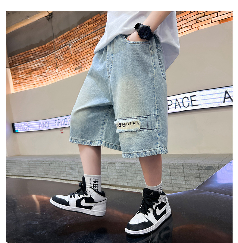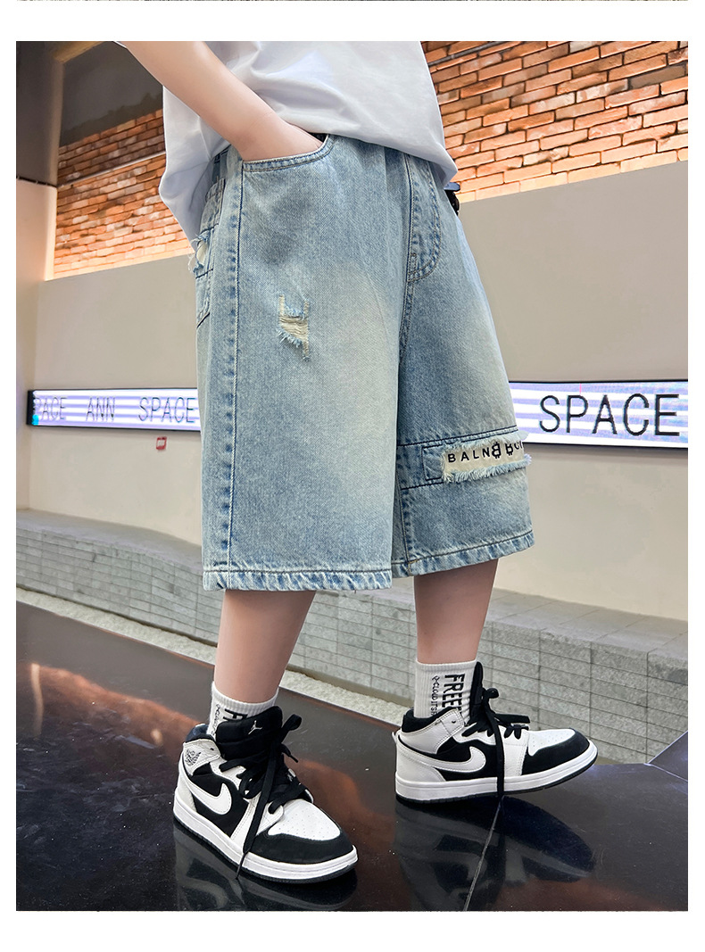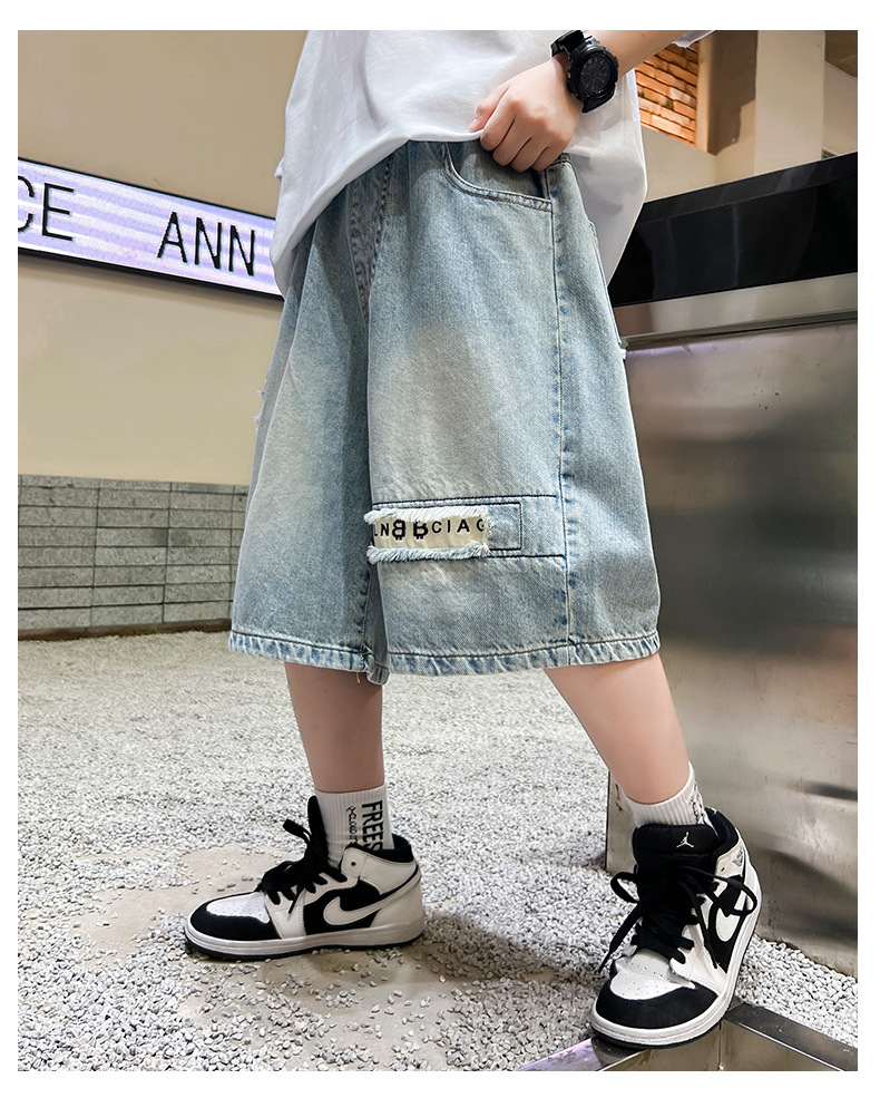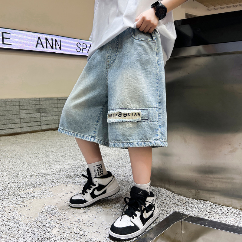 남학생 서양식 랩 데님 반바지 여름 새 2024 중대형 아동복 여름 얇은 바지 소년 옷스토어 가기