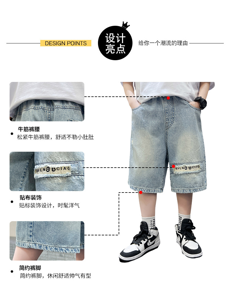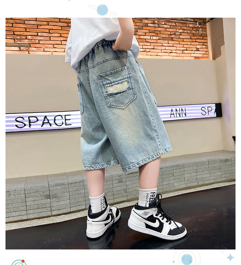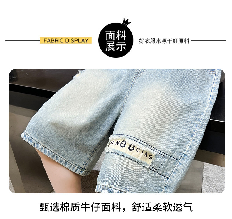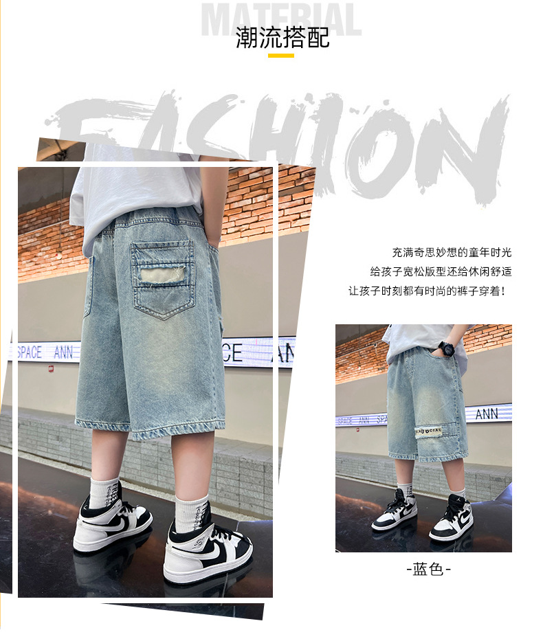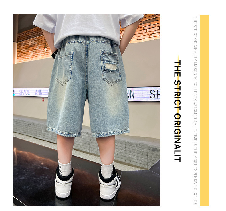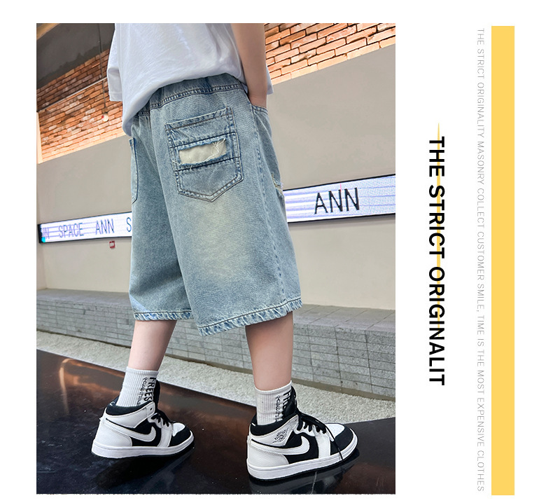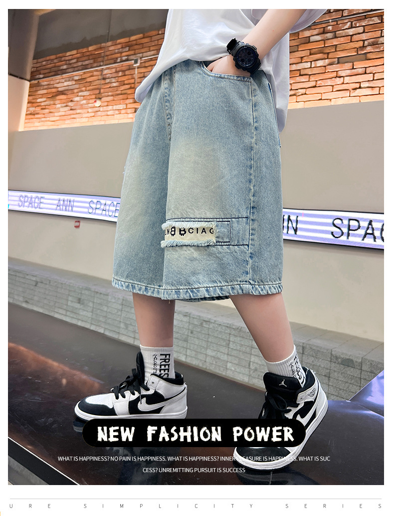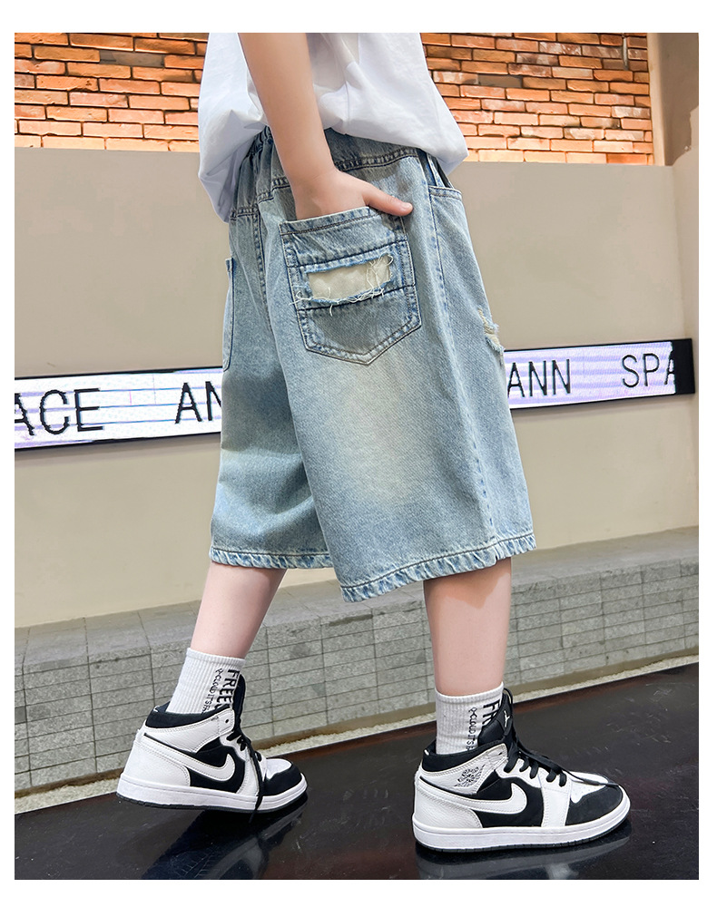 남학생 서양식 랩 데님 반바지 여름 새 2024 중대형 아동복 여름 얇은 바지 소년 옷스토어 가기