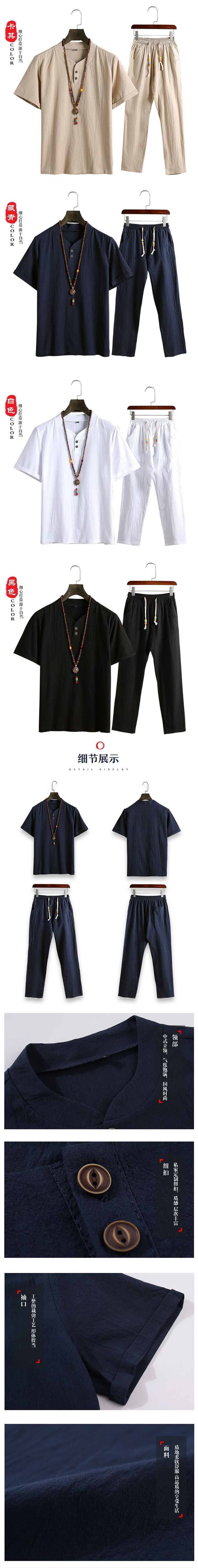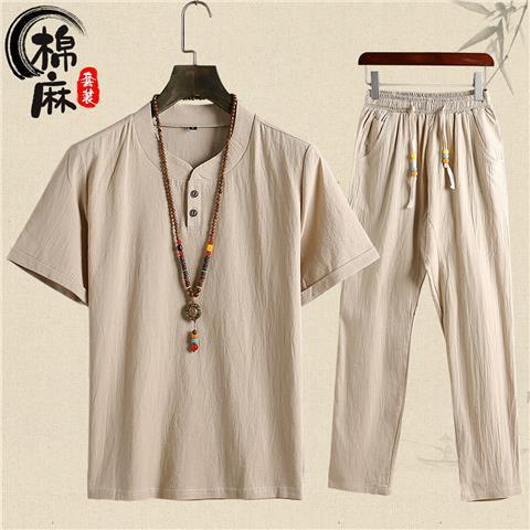 리넨 세트 남성 반팔 바지 옷 세트 남성 중년 및 노인 남성 의류 아빠의 여름 면화 및 리넨 투피스 세트