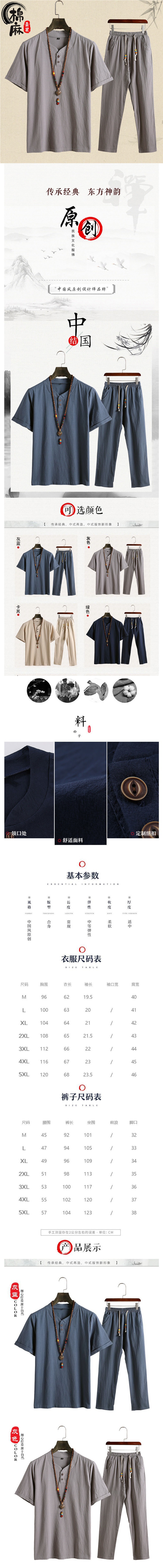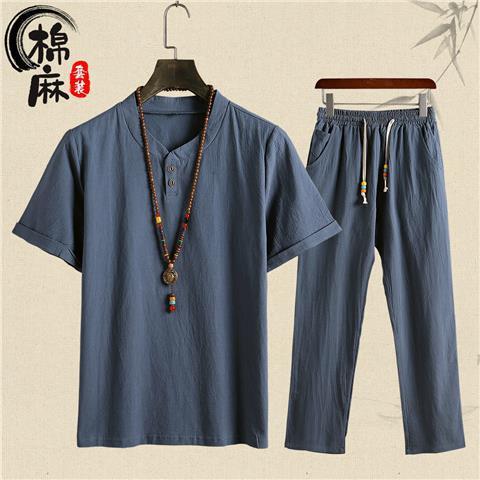 리넨 세트 남성 반팔 바지 옷 세트 남성 중년 및 노인 남성 의류 아빠의 여름 면화 및 리넨 투피스 세트스토어 가기