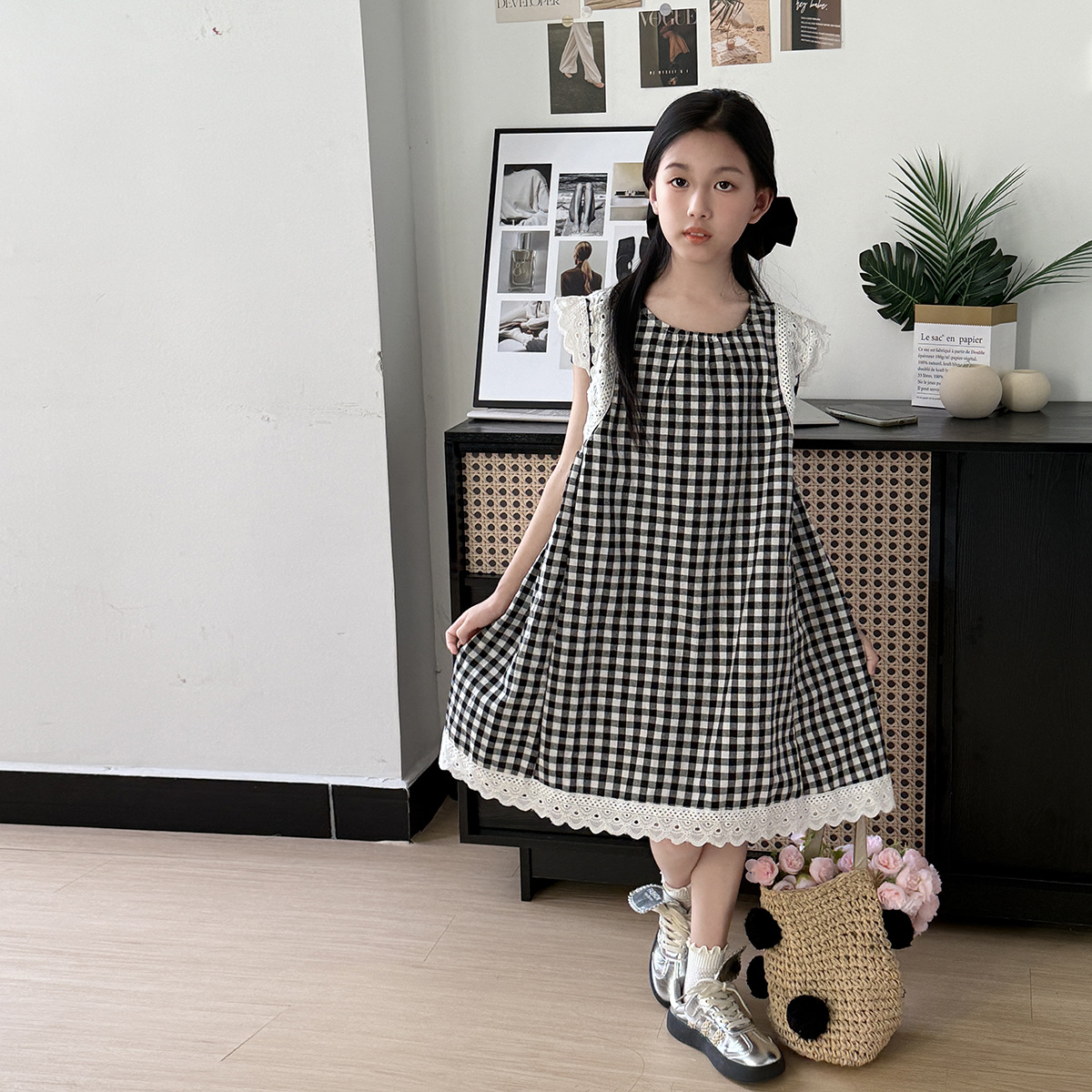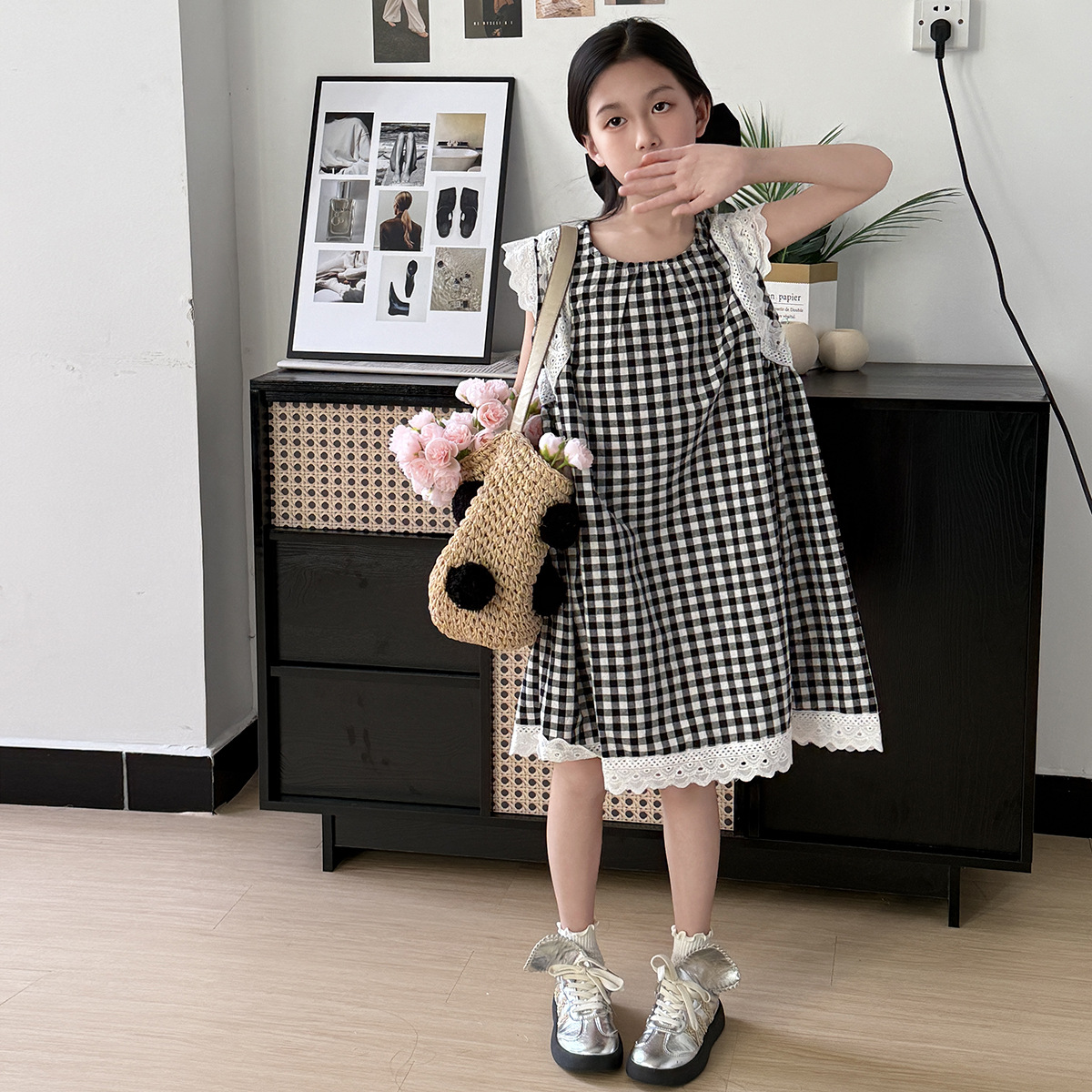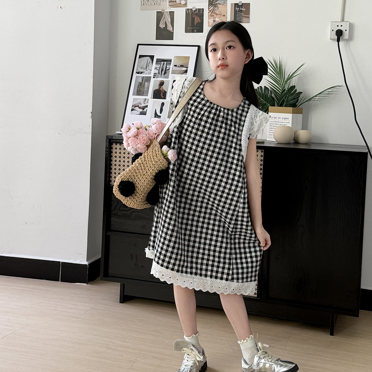 소녀 스커트 여름 2025 새로운 스타일 소녀 빅 아동복 여름 공주 원피스 소녀 어린이 여름 착용 격자 무늬 원피스