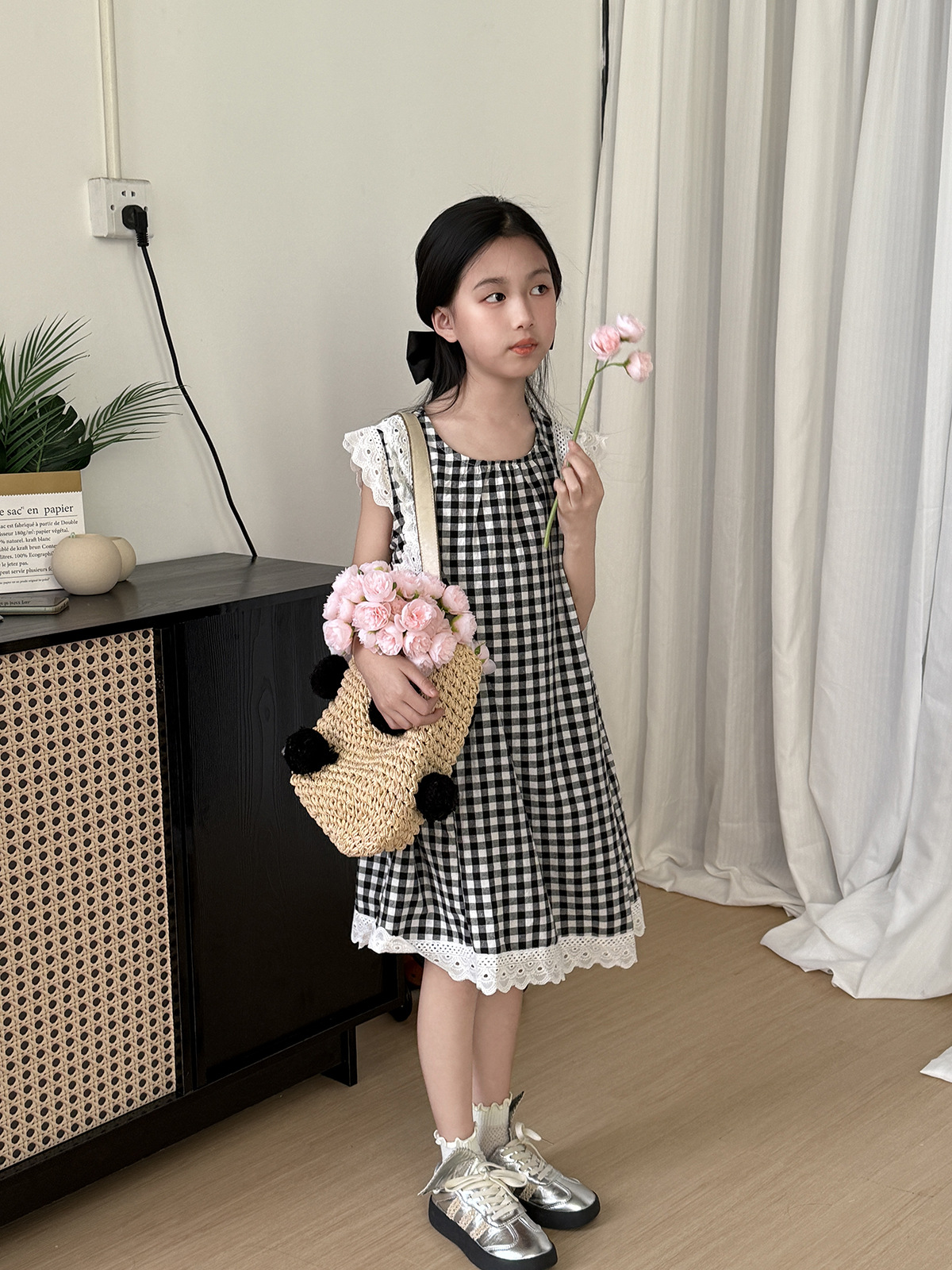 소녀 스커트 여름 2025 새로운 스타일 소녀 빅 아동복 여름 공주 원피스 소녀 어린이 여름 착용 격자 무늬 원피스스토어 가기