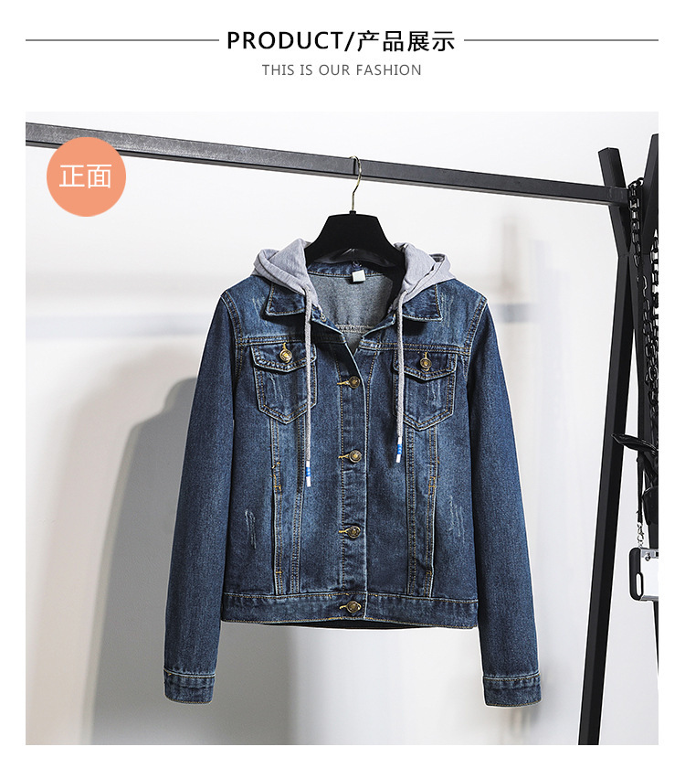 일본과 한국 스타일 슈퍼 인기 데님 짧은 코트 여성의 짧은 봄과 가을 새로운 긴 소매 슬림 핏 후드 자켓 학생 탑스토어 가기