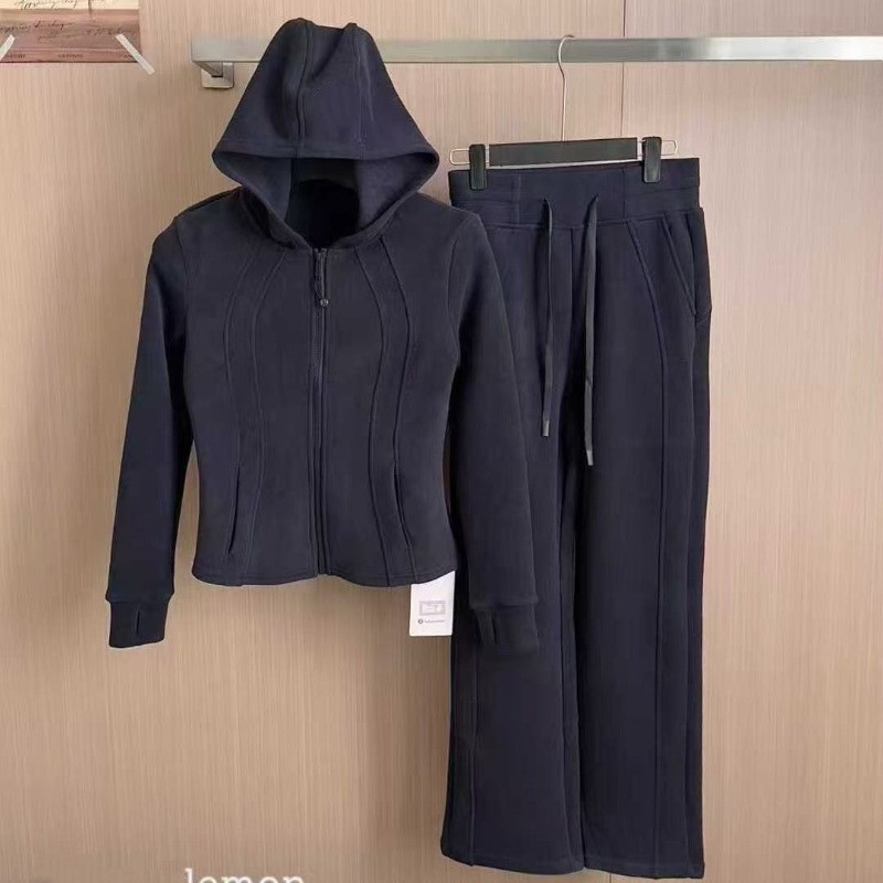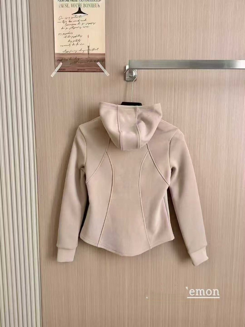 【상포 정품】루루 오리지널 라벨 3세대 방풍 요가복 여성용 플리스 안감 두꺼운 보온 후드 겨울용
