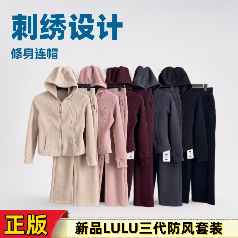 【상포 정품】루루 오리지널 라벨 3세대 방풍 요가복 여성용 플리스 안감 두꺼운 보온 후드 겨울용스토어 가기