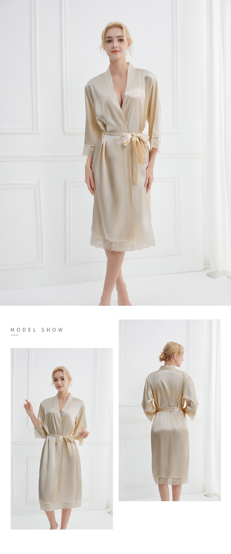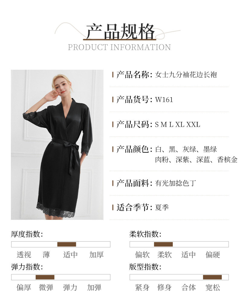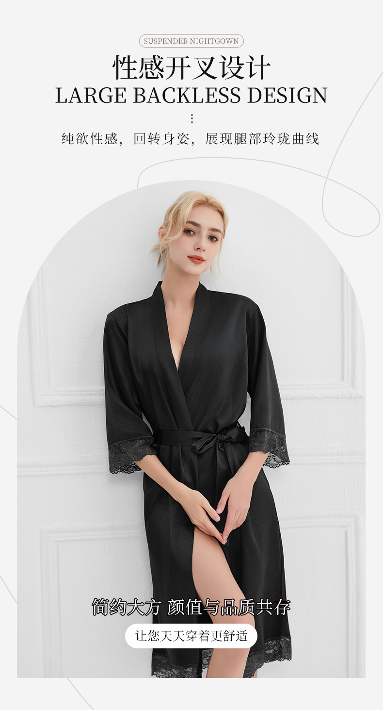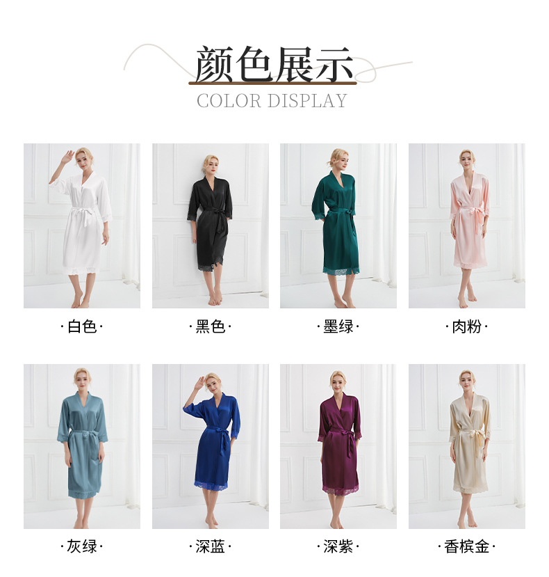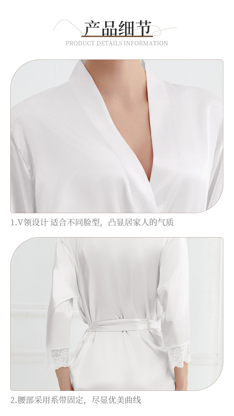 봄과 가을 실크 솔리드 컬러 나이트 가운 섹시한 V 넥 레이스 나이트 가운 여성 9 점 슬리브 레이스 프렌치 스타일 홈 로브스토어 가기