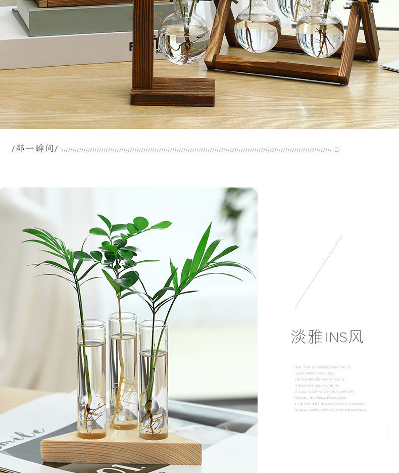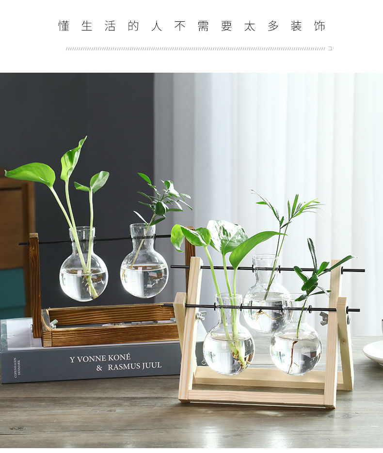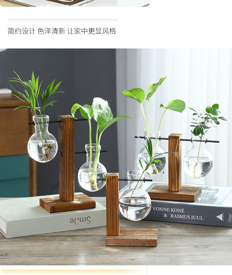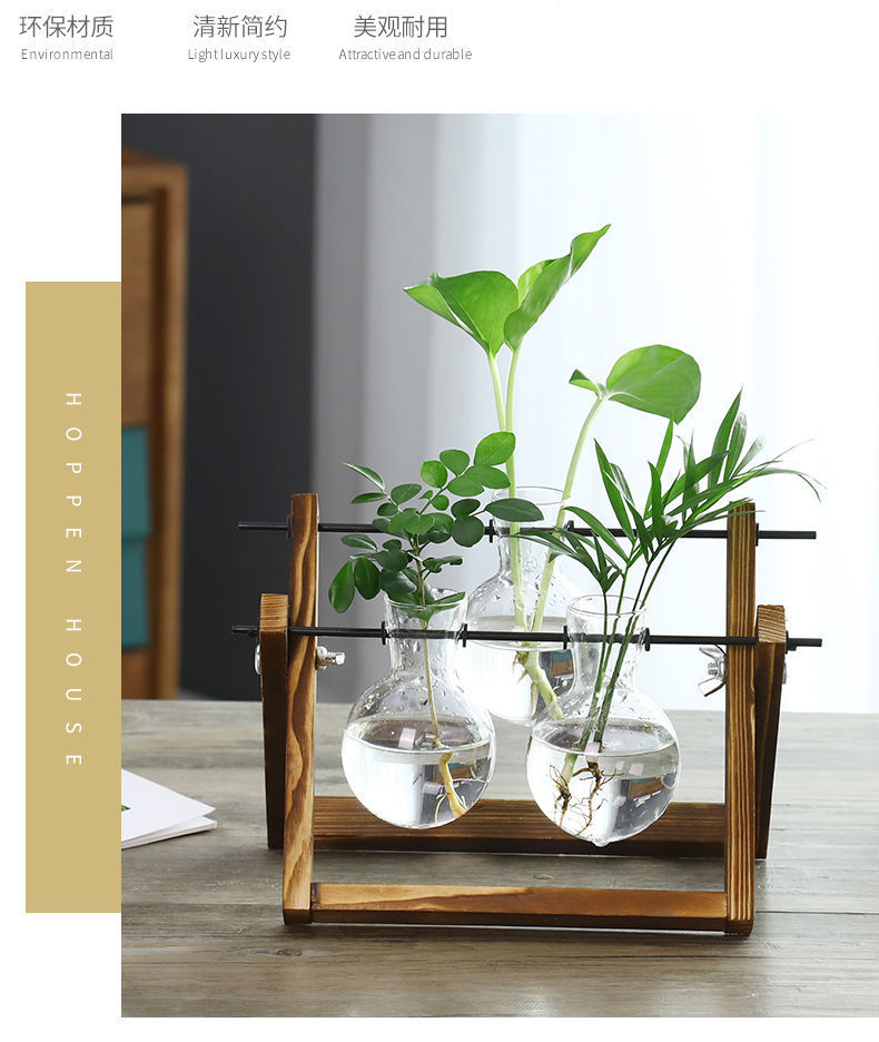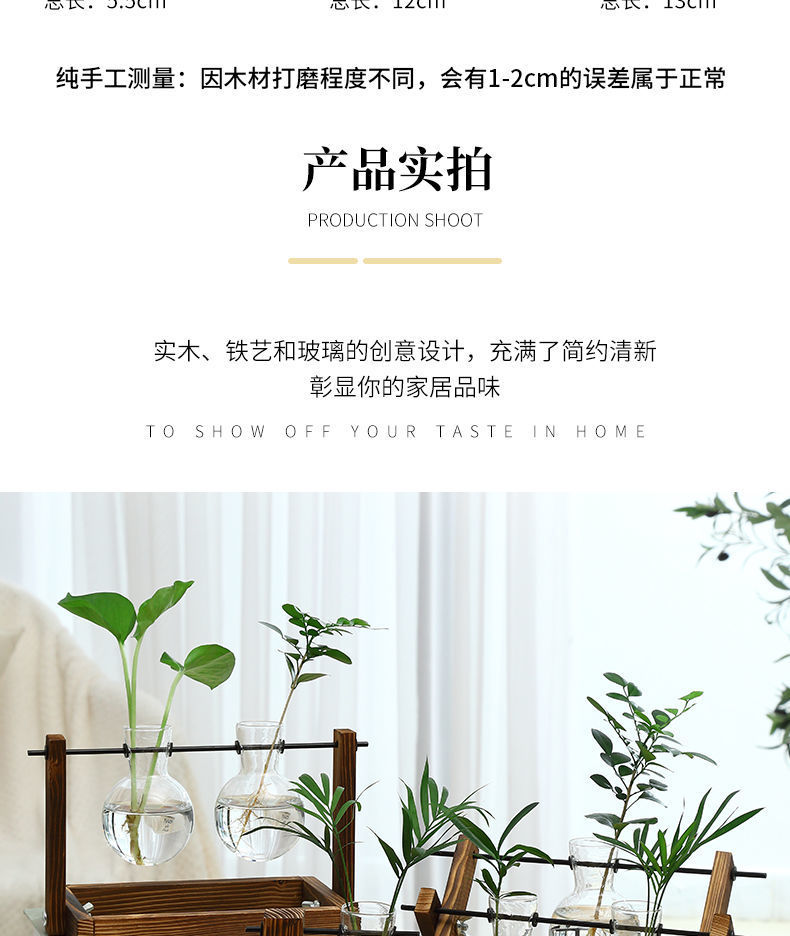 나무 프레임 수경 꽃병 녹색 유리 꽃병 컨테이너 사무실 실내 바탕 화면 녹색 식물 장식품 장식 꽃 냄비 도매스토어 가기