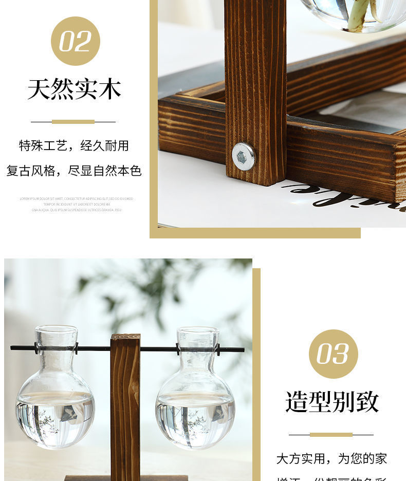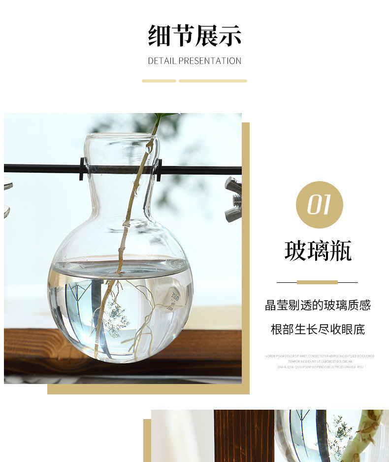 나무 프레임 수경 꽃병 녹색 유리 꽃병 컨테이너 사무실 실내 바탕 화면 녹색 식물 장식품 장식 꽃 냄비 도매