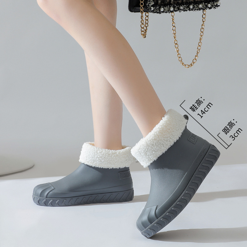 2025년 신형 로우탑 여성용 아우터 패셔너블 레인부츠 주방 작업용 짧은 미끄럼 방지 내마모성 플러스 벨벳 방수 신발스토어 가기