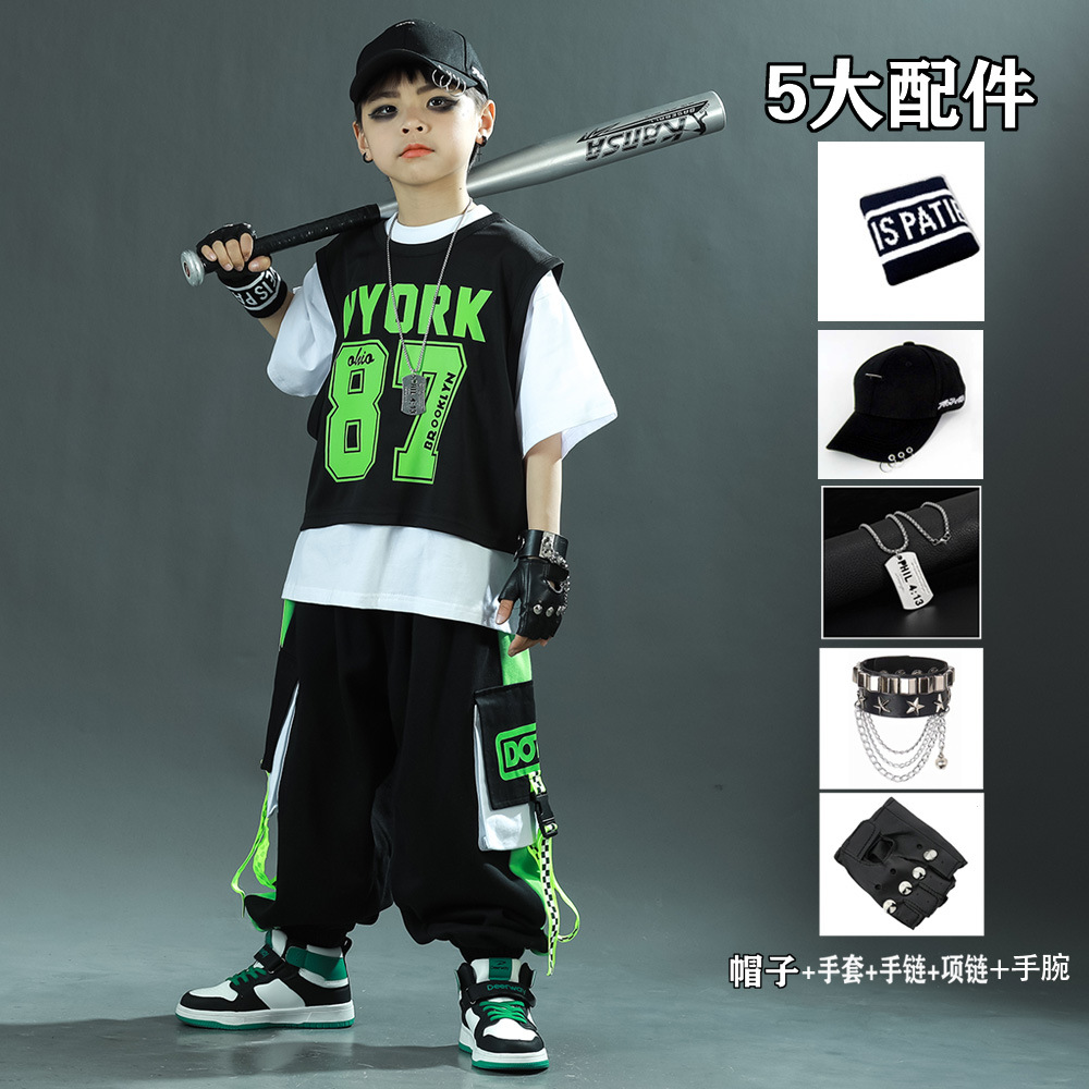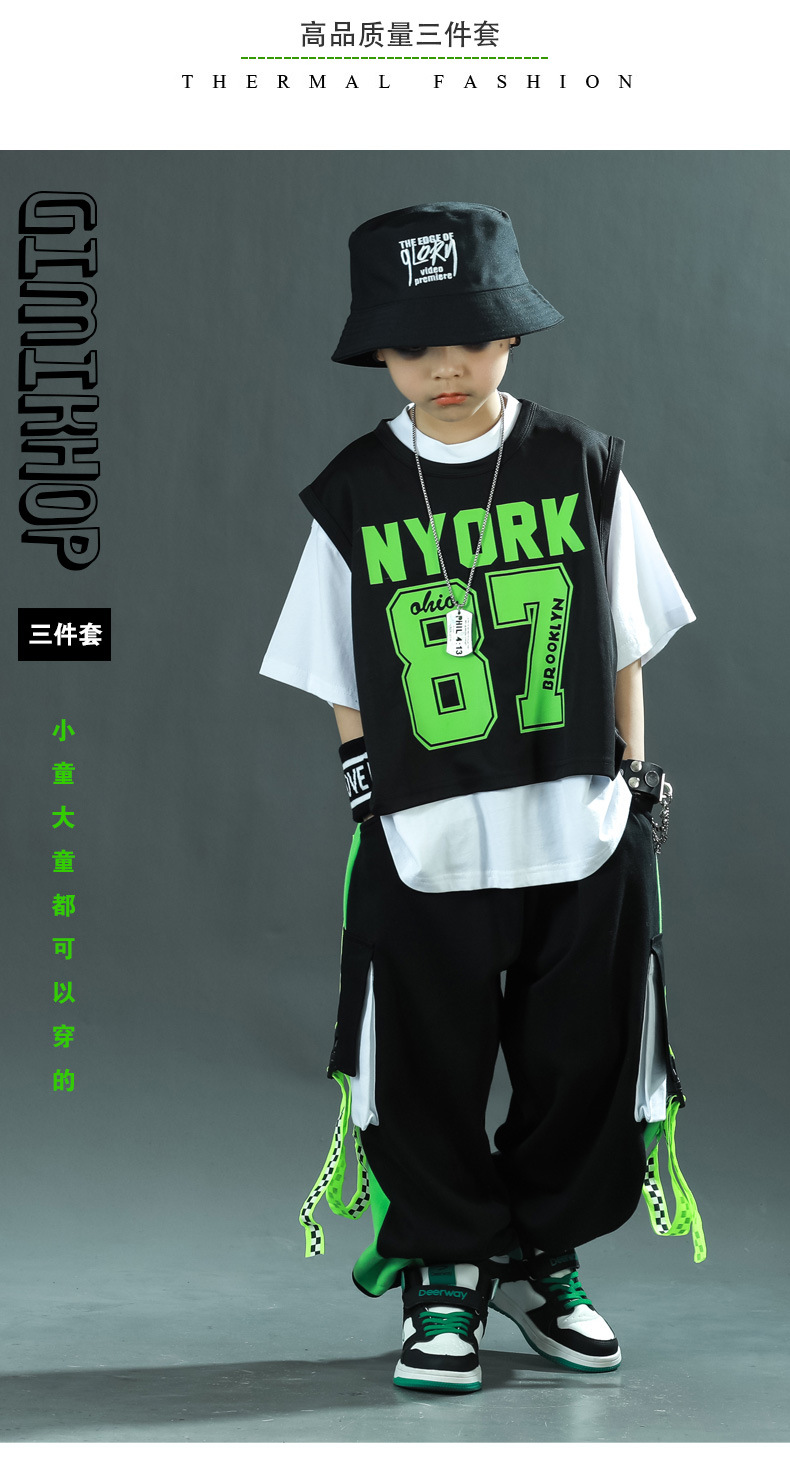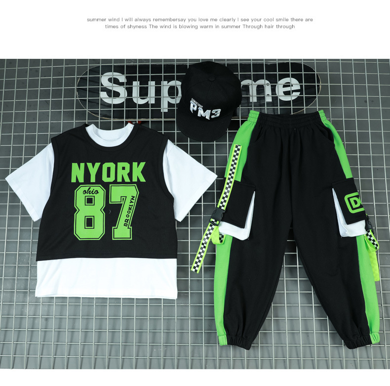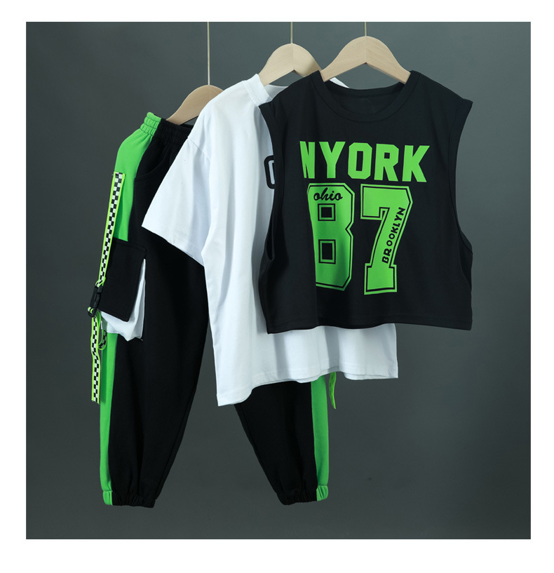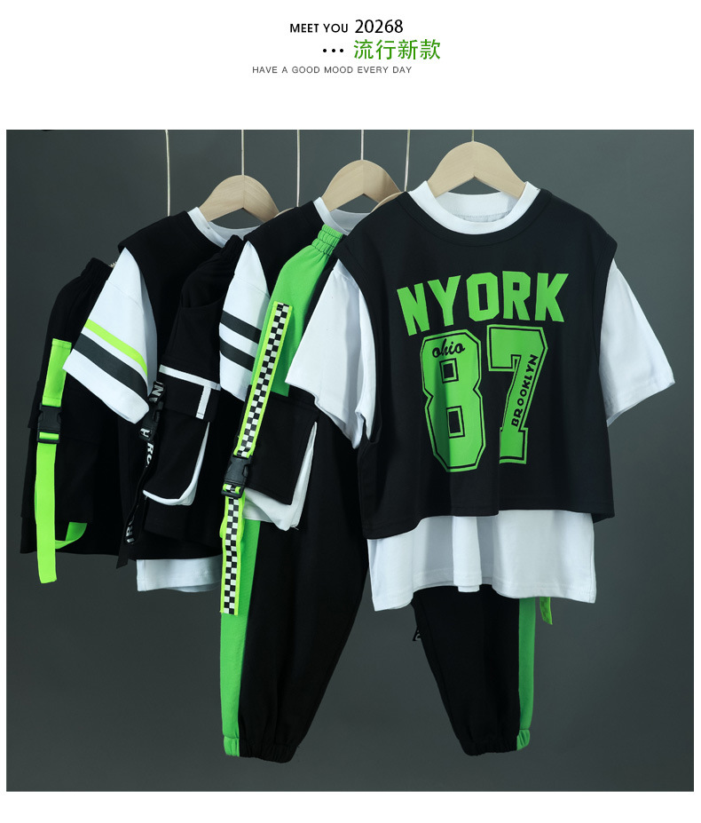 한국 스타일 아동복 새로운 스타일 힙합 중대형 아동복 여름 아동복 스포츠 아동용 반팔 3 피스 의류 트렌드스토어 가기