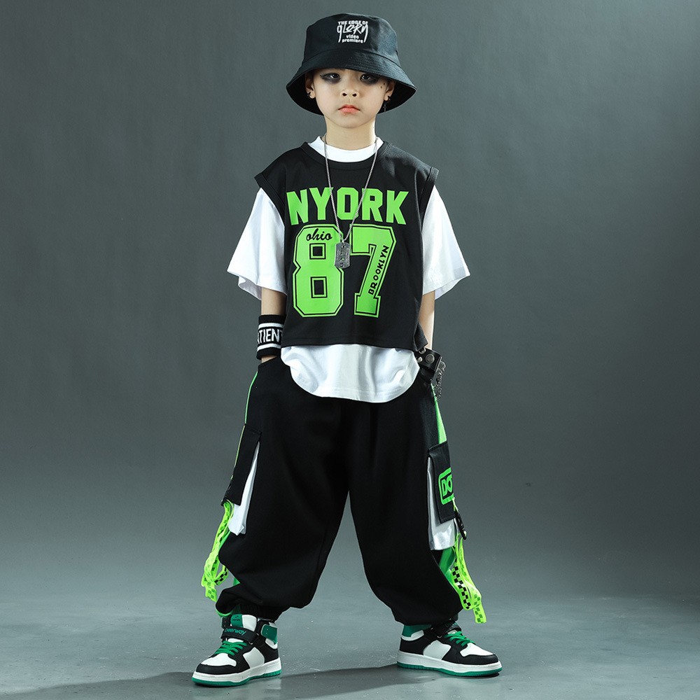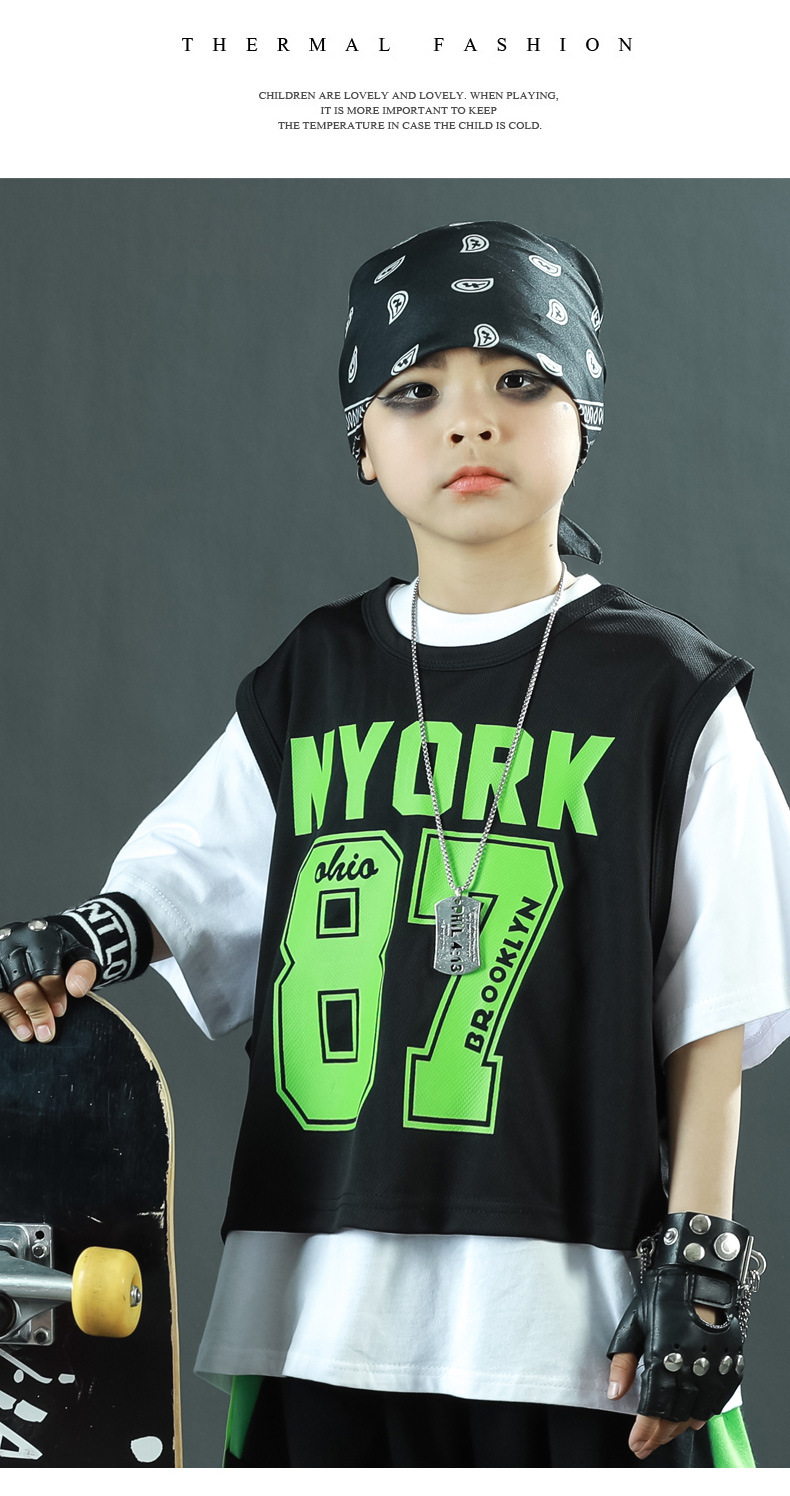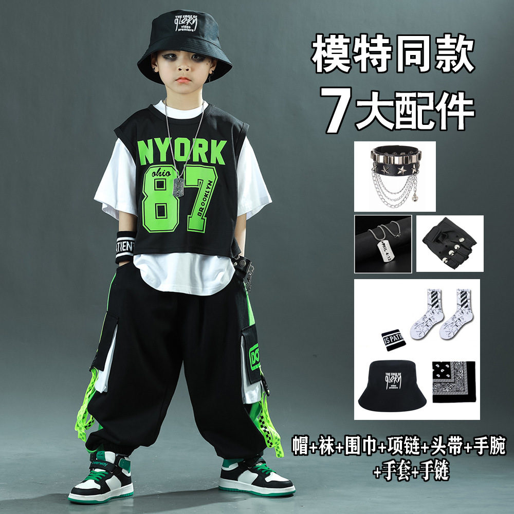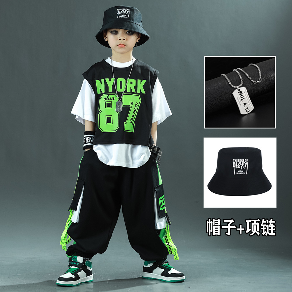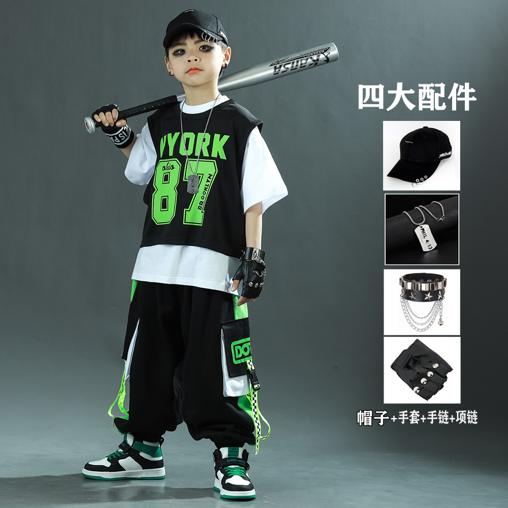 한국 스타일 아동복 새로운 스타일 힙합 중대형 아동복 여름 아동복 스포츠 아동용 반팔 3 피스 의류 트렌드스토어 가기