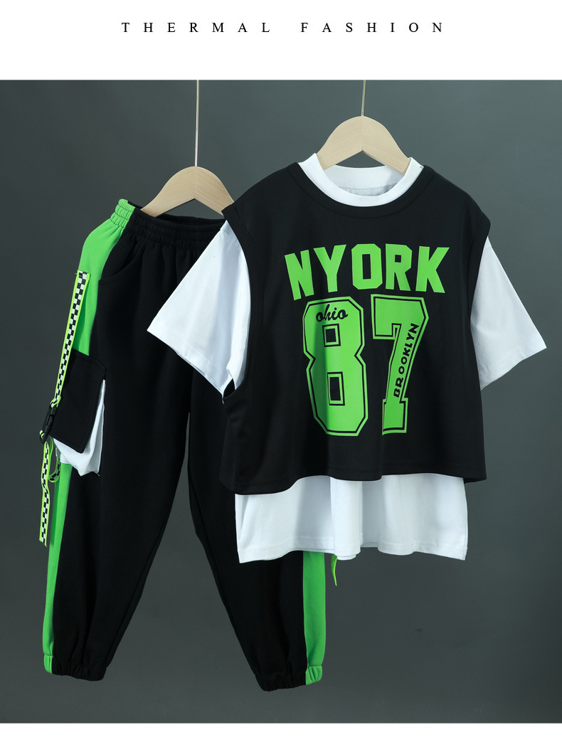 한국 스타일 아동복 새로운 스타일 힙합 중대형 아동복 여름 아동복 스포츠 아동용 반팔 3 피스 의류 트렌드