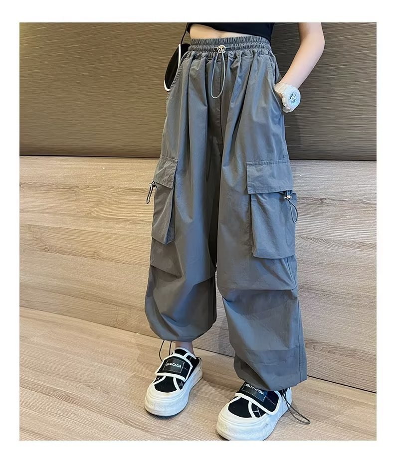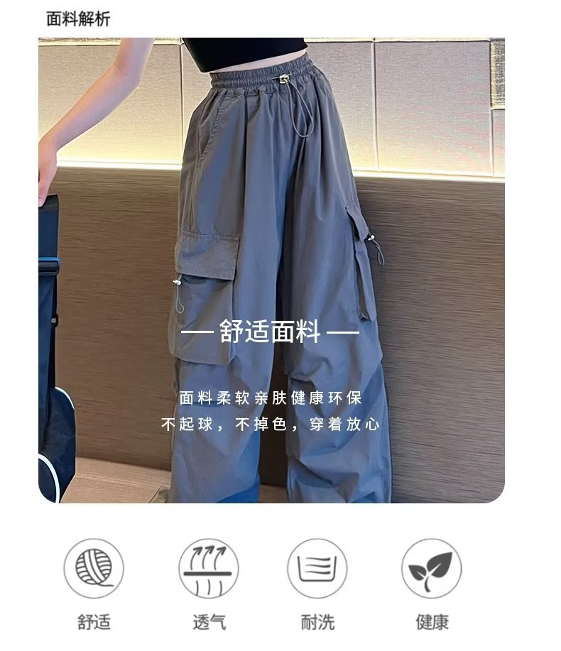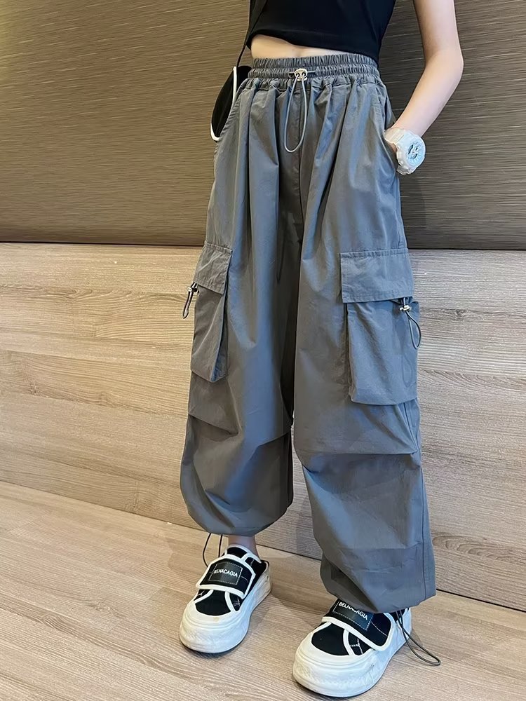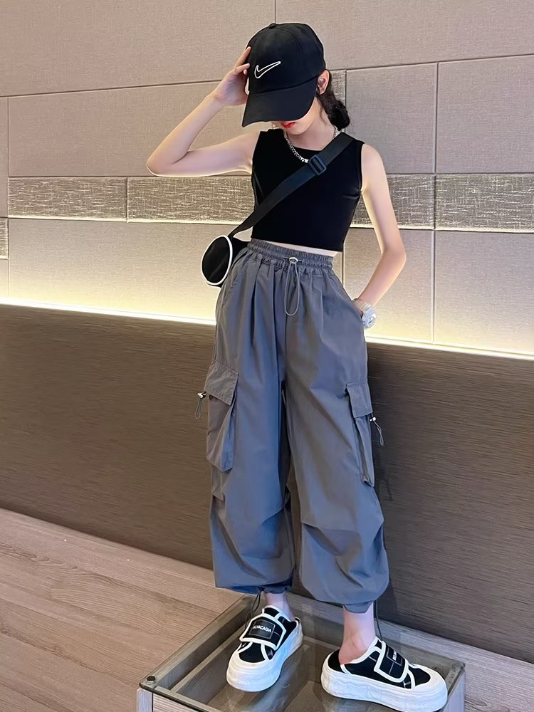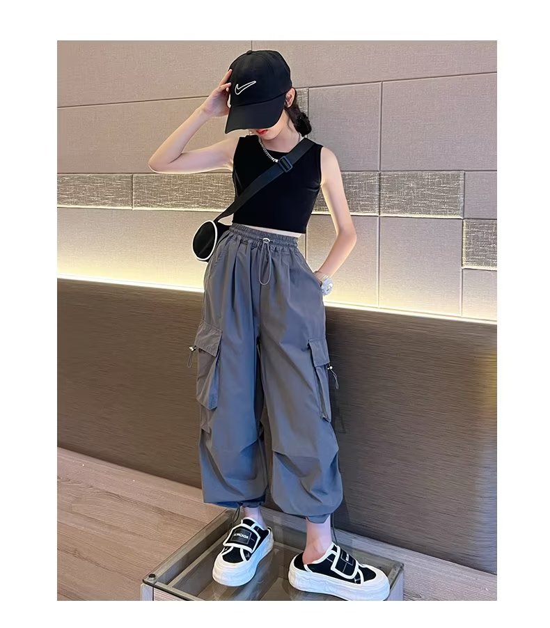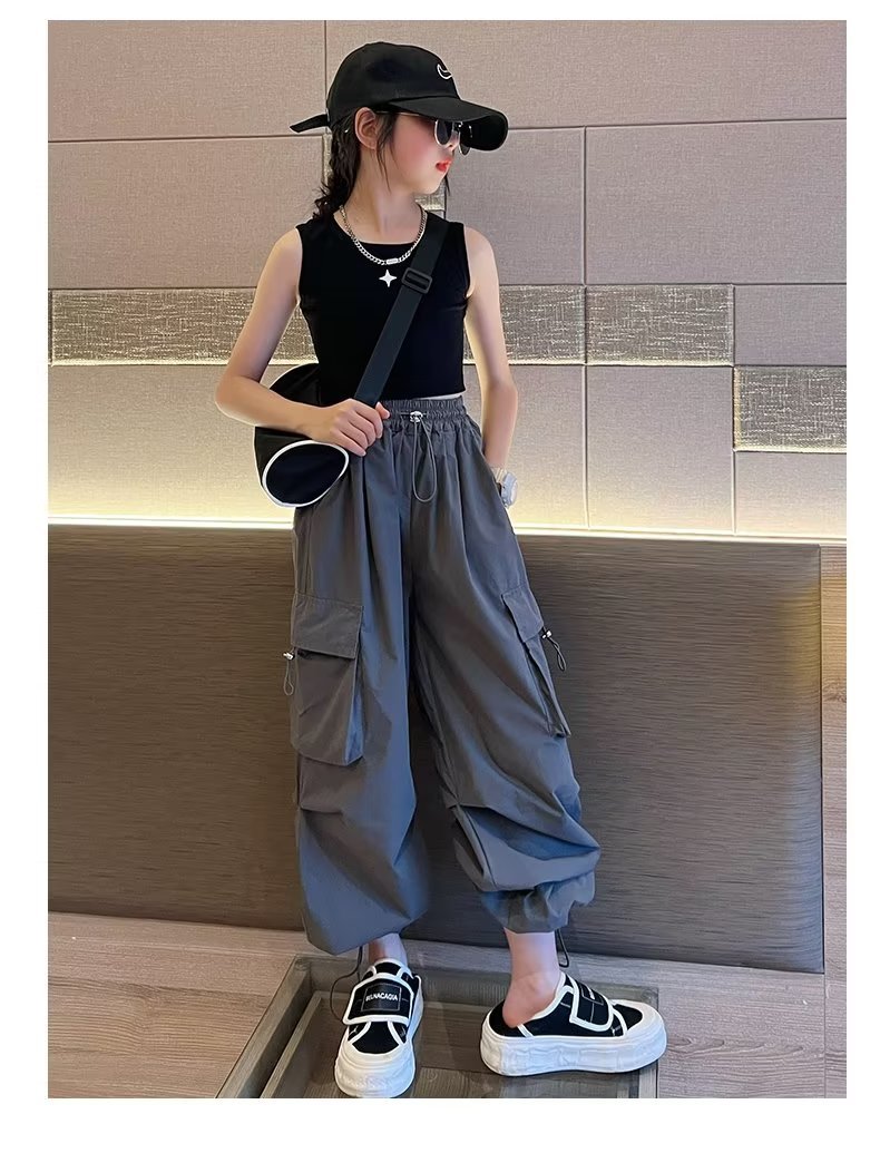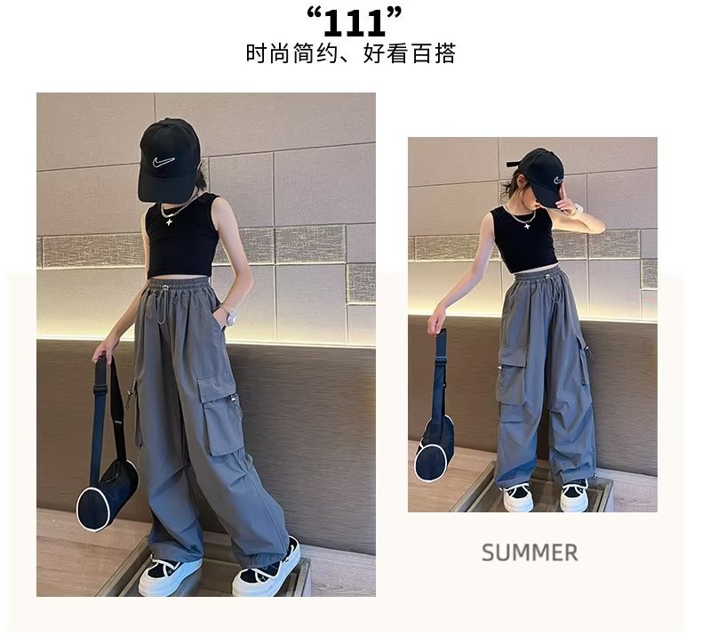 소녀 공예 바지 여름 2025 서양식 바지 큰 어린이 거리 넓은 다리 바지 어린이 세트 바지 캐주얼 바지