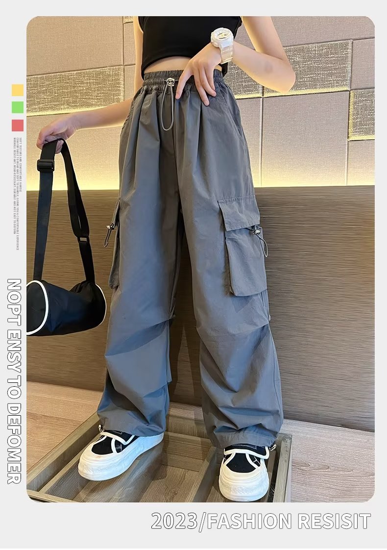 소녀 공예 바지 여름 2025 서양식 바지 큰 어린이 거리 넓은 다리 바지 어린이 세트 바지 캐주얼 바지스토어 가기