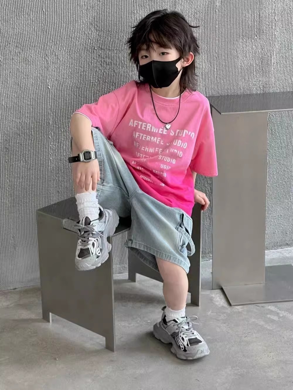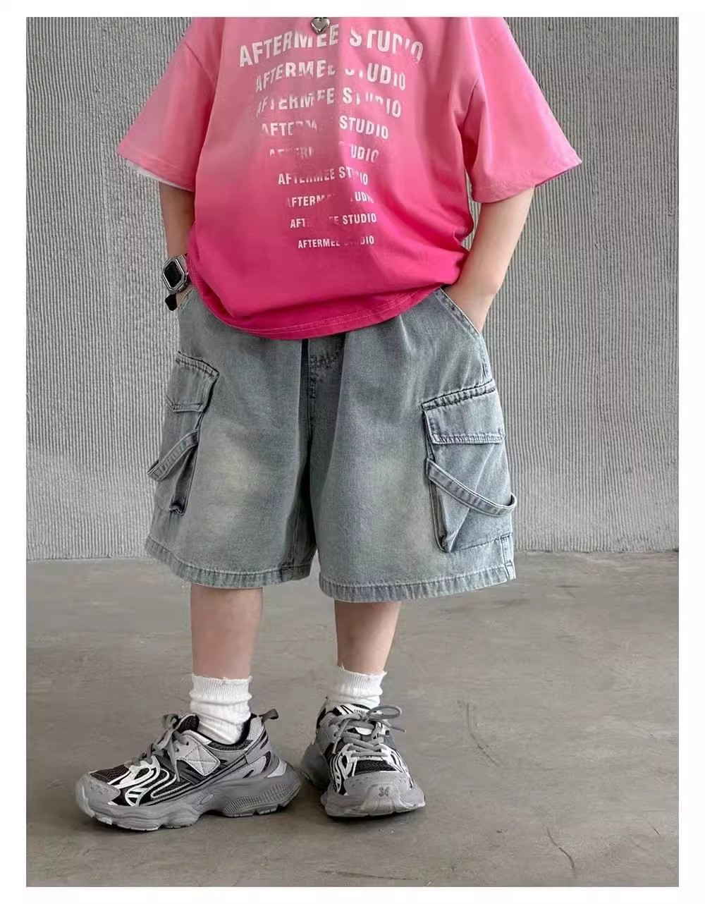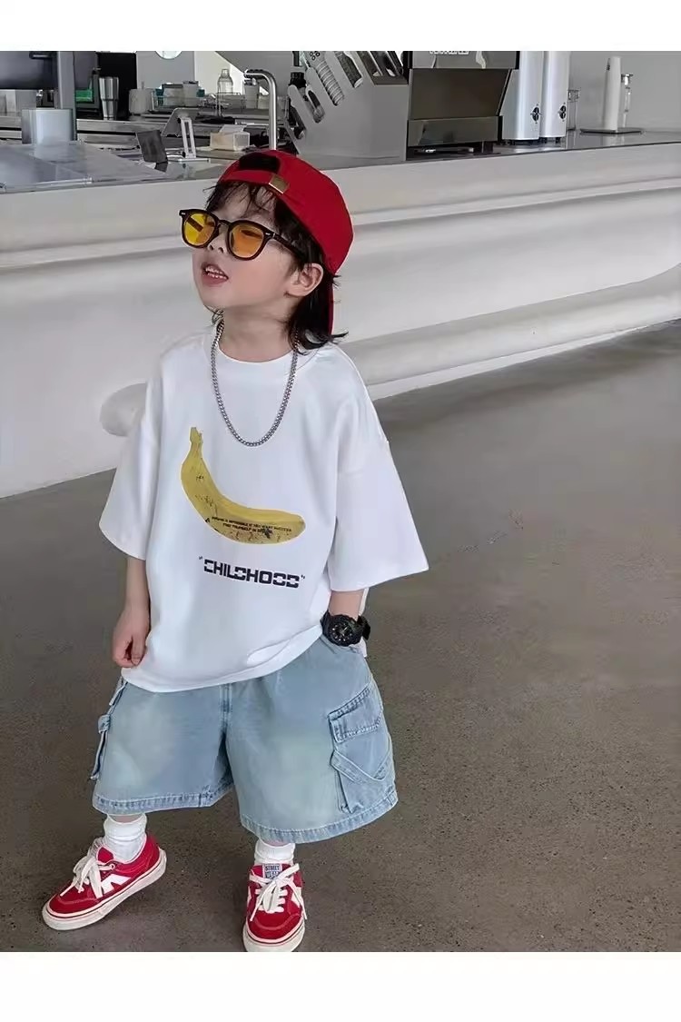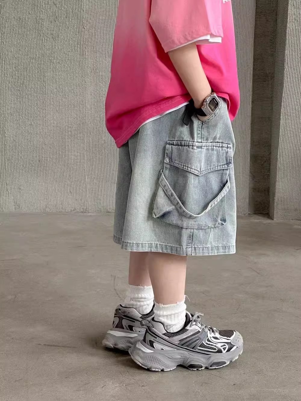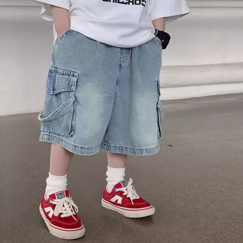 소년 바지 여름 소년 잘 생긴 데님 반바지 2025 새로운 어린이 유행 작업복 바람 바지스토어 가기