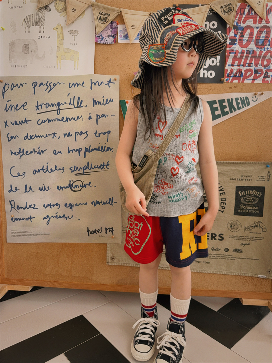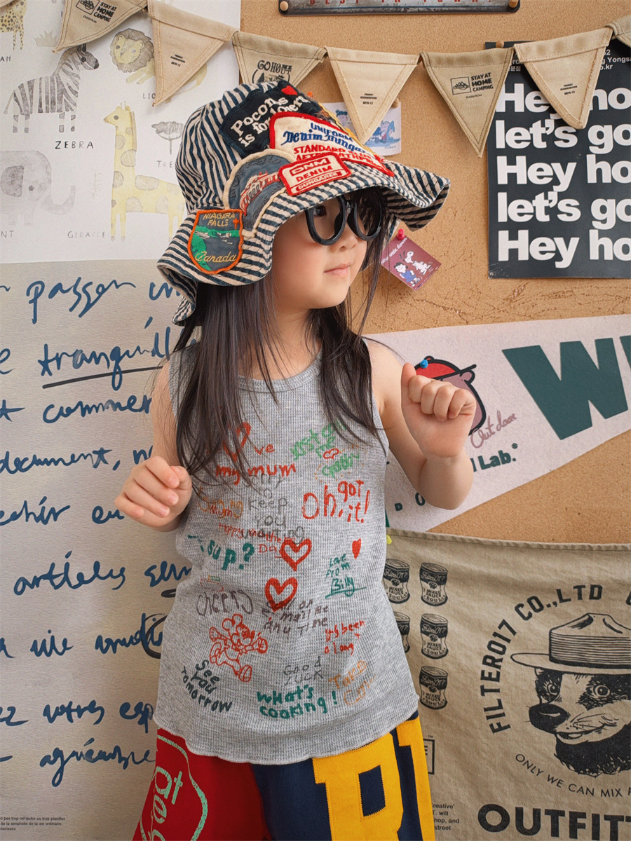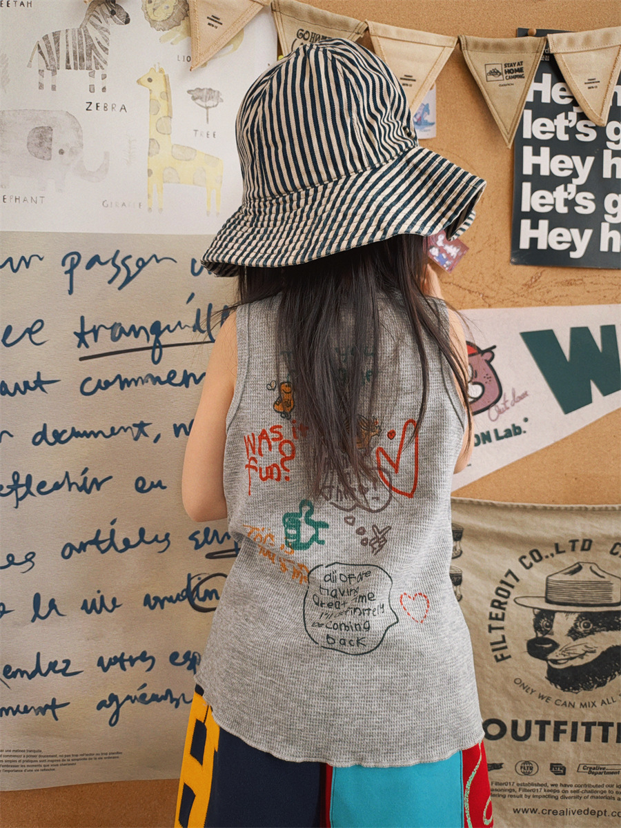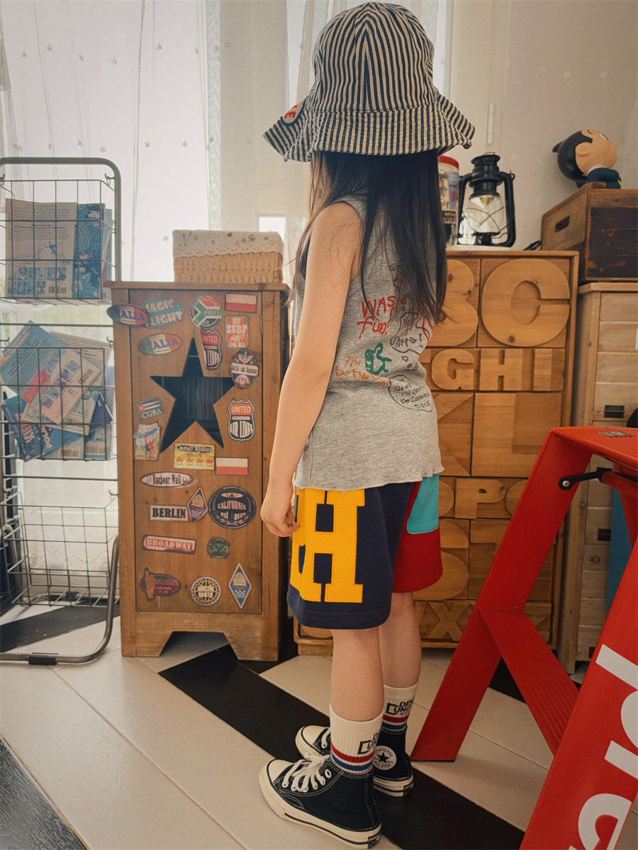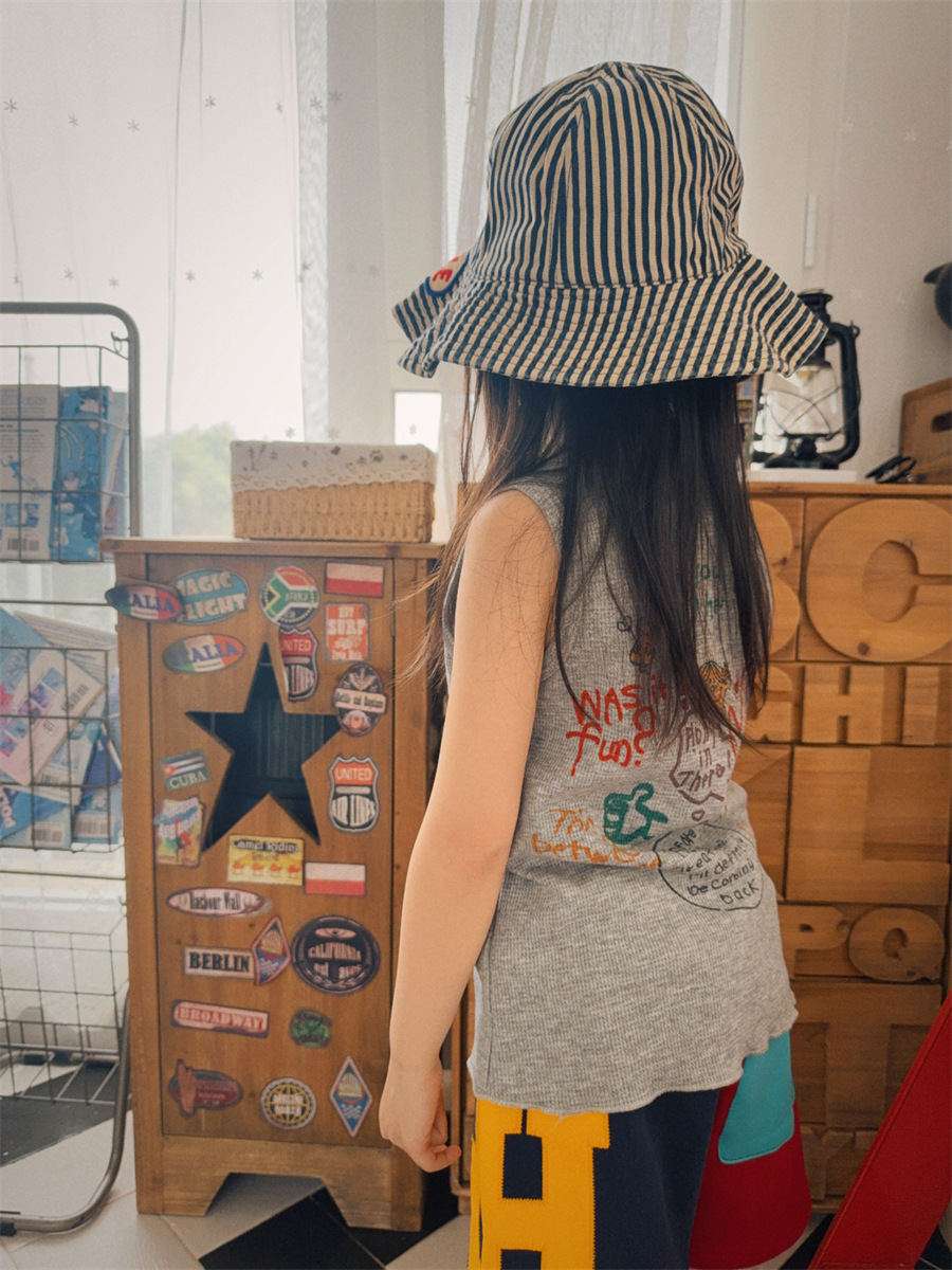 2024 년 새로운 여름 일본 틈새 소년 소녀 조끼 와플 니트 코튼 민소매 티셔츠스토어 가기