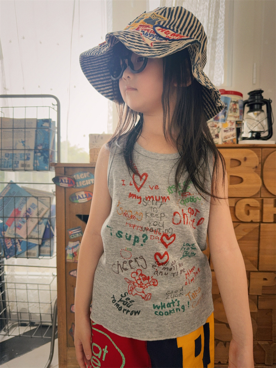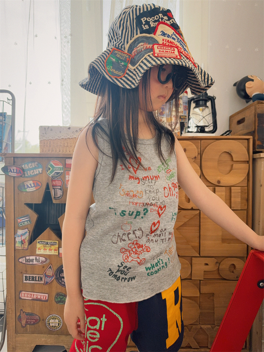 2024 년 새로운 여름 일본 틈새 소년 소녀 조끼 와플 니트 코튼 민소매 티셔츠