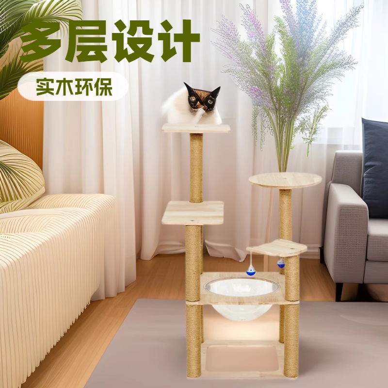 고양이 클라이밍 프레임, 고양이 둥지, 고양이 트리, 우주 캡슐, 원목, 고무나무, 대형 고양이 다층 점프 플랫폼, 삼베 스크래치 컬럼, 대형 고양이 클라이밍 프레임
