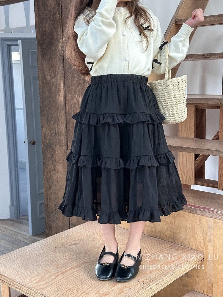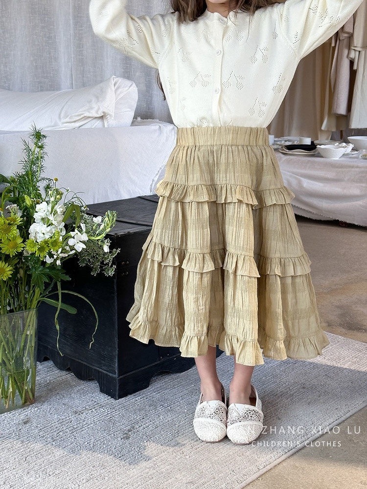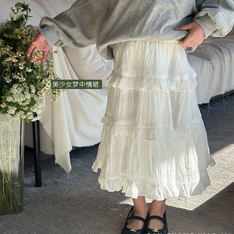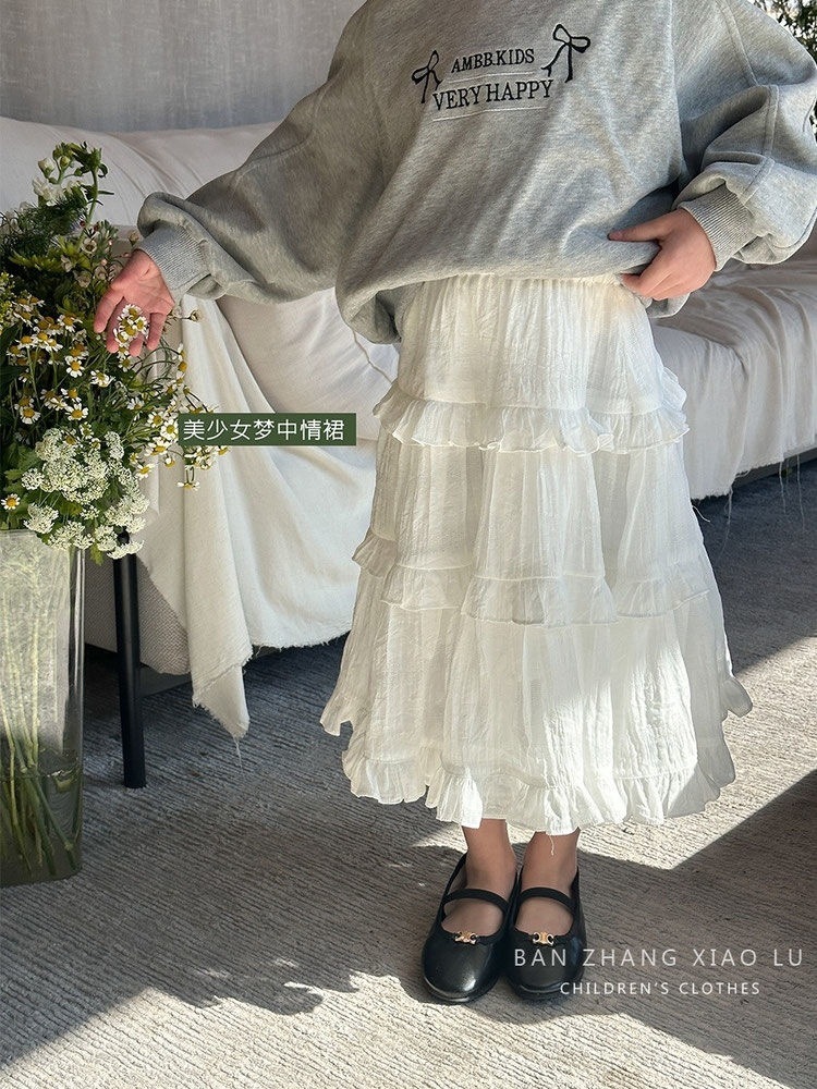 소녀의 달콤한 러플 스커트 2025 봄과 여름 어린이 케이크 스커트 소녀의 중간 길이 서양식 스커트