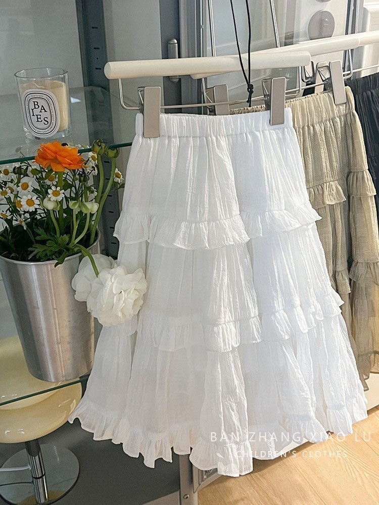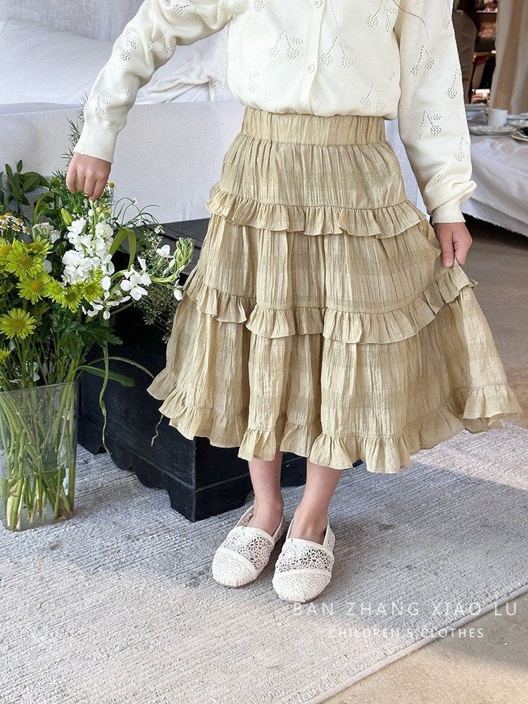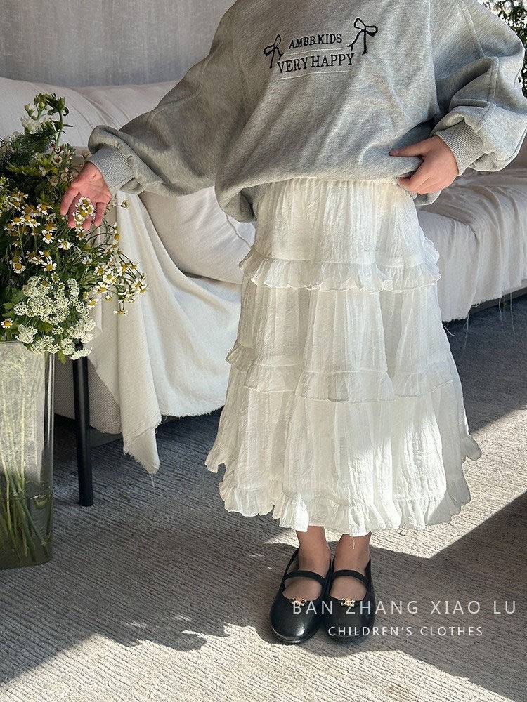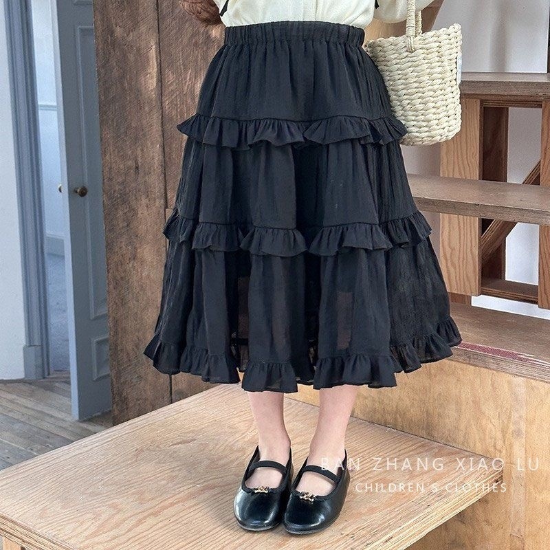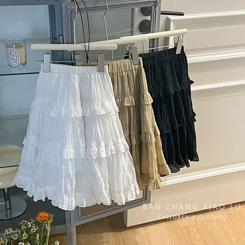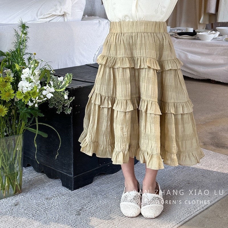 소녀의 달콤한 러플 스커트 2025 봄과 여름 어린이 케이크 스커트 소녀의 중간 길이 서양식 스커트스토어 가기