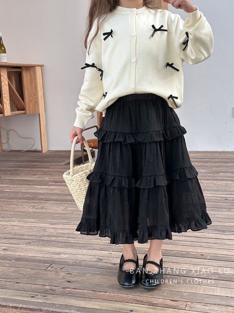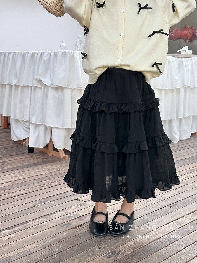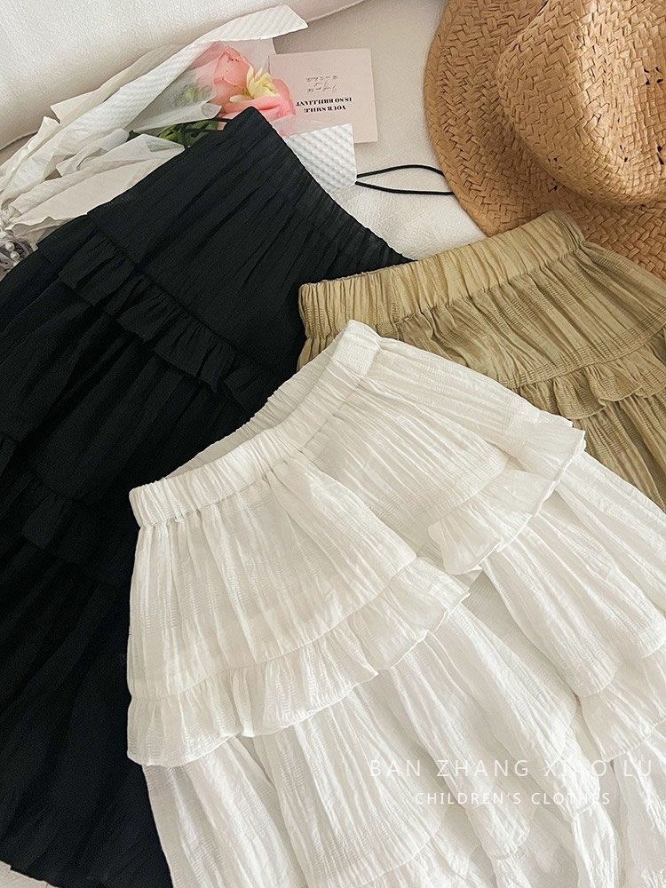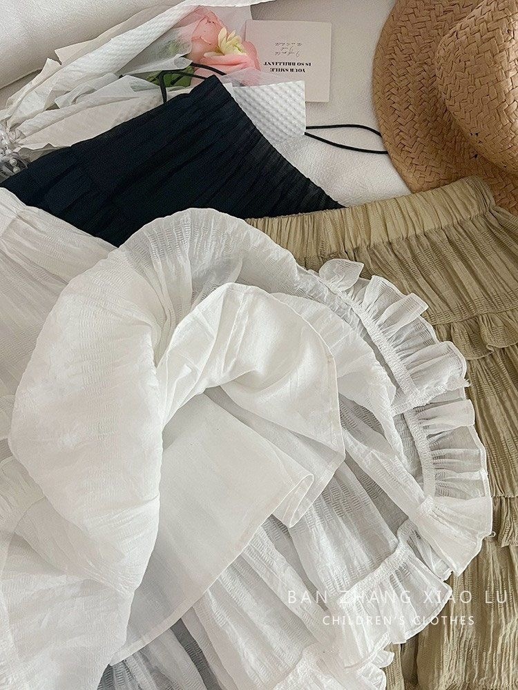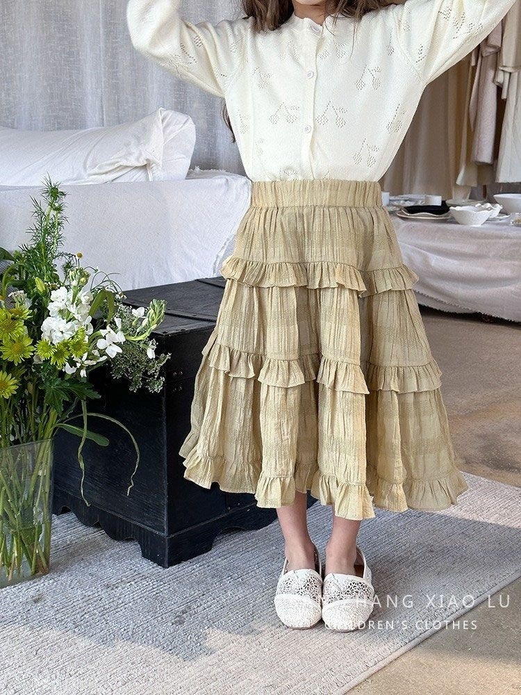 소녀의 달콤한 러플 스커트 2025 봄과 여름 어린이 케이크 스커트 소녀의 중간 길이 서양식 스커트스토어 가기