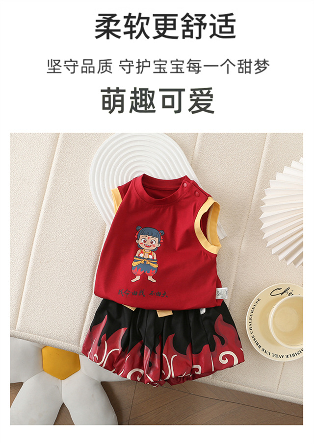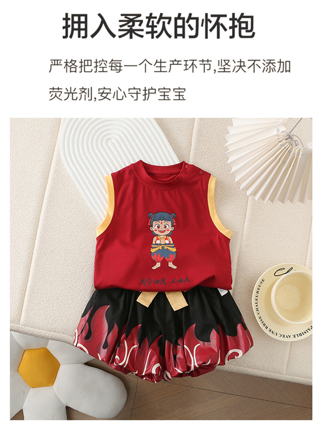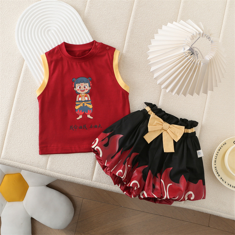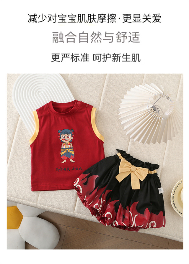 네자 민소매 세트 아기 여름 세트 중국 스타일 얇은 원피스 세트 백일 연회 1 년 된 연회