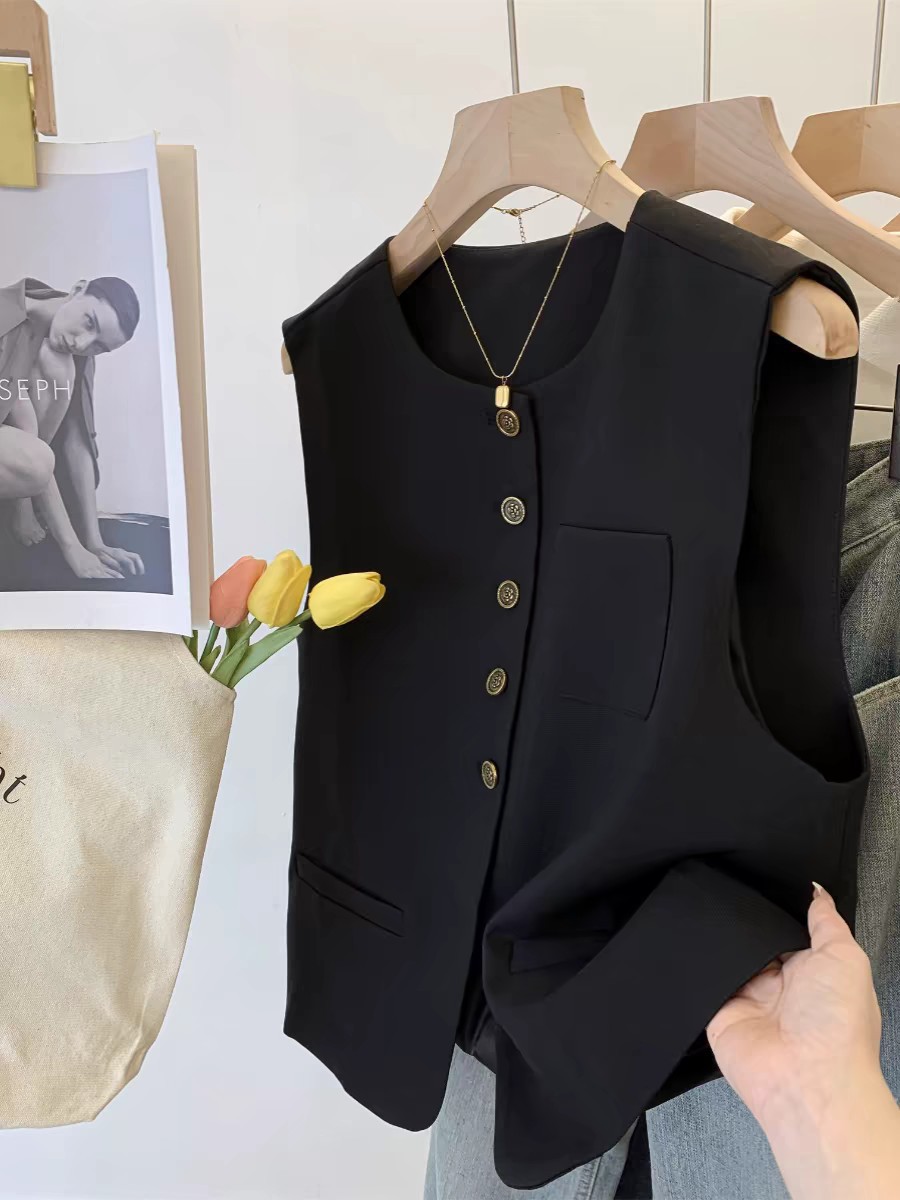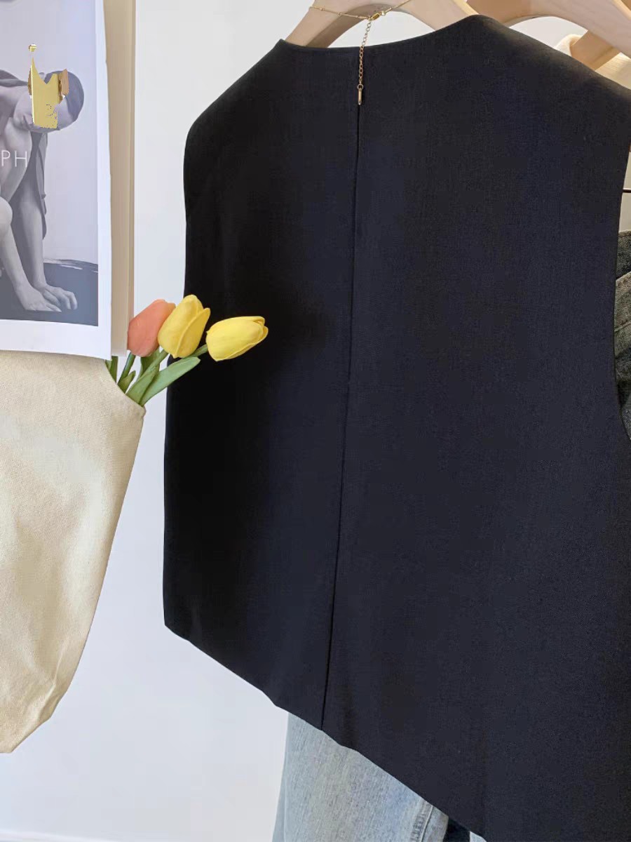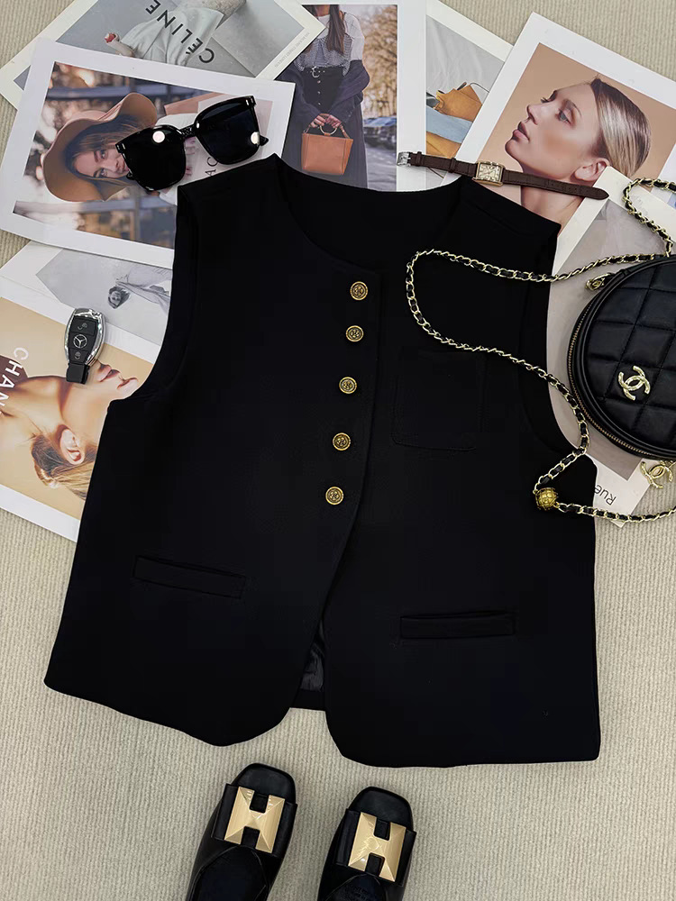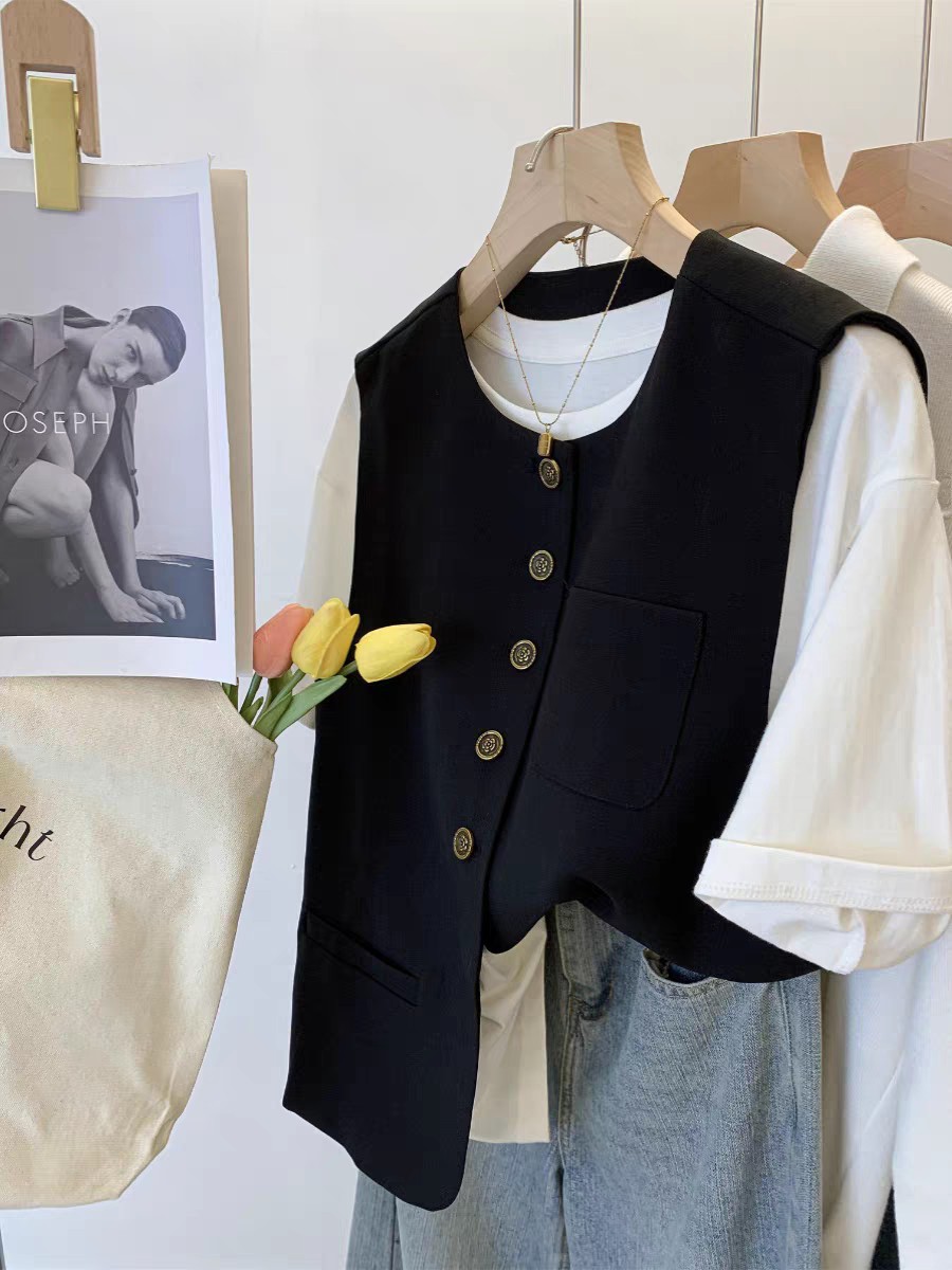 느슨한 둥근 목 싱글 브레스트 짧은 세트 조끼 여성 봄과 가을 유럽 유행 서양식 하이 엔드 조끼스토어 가기