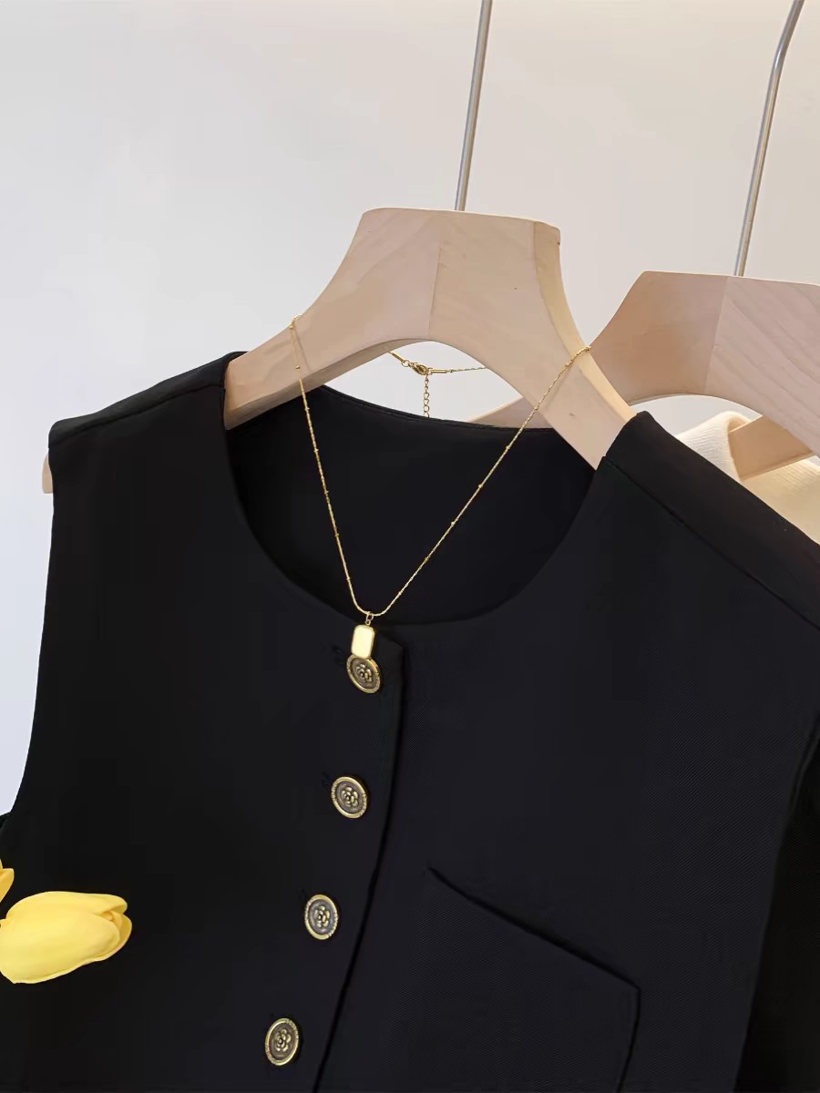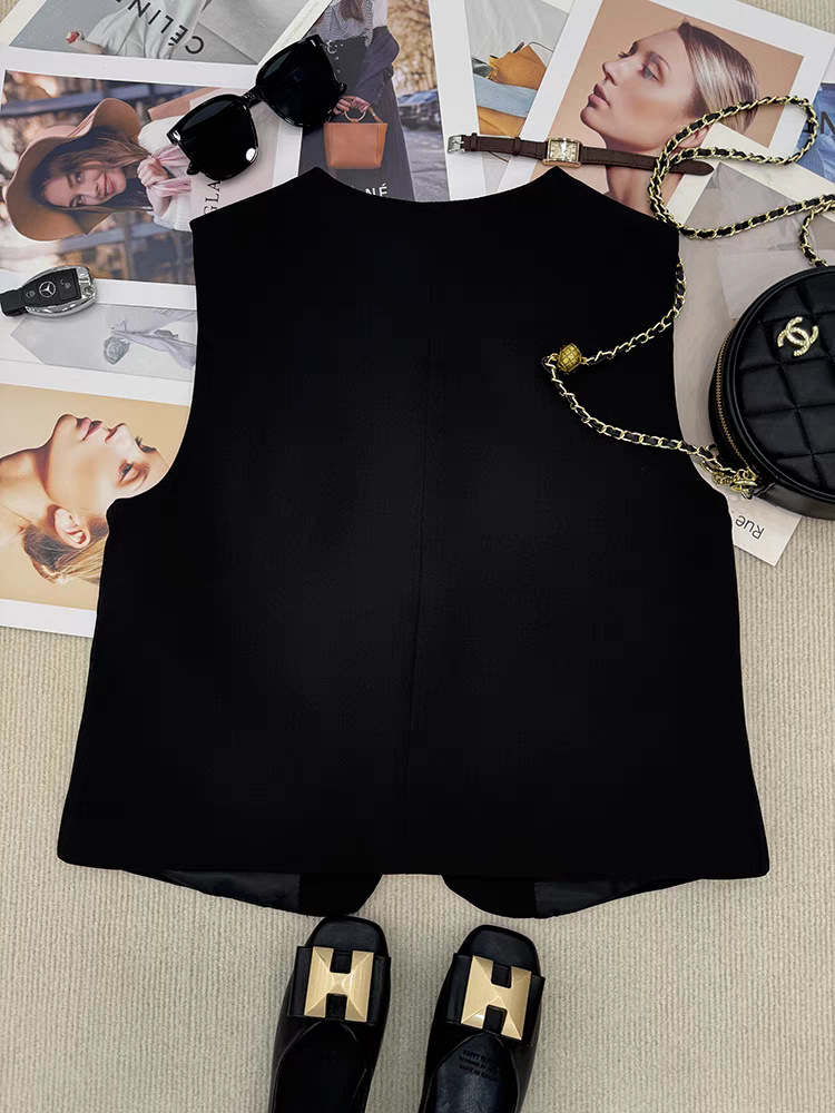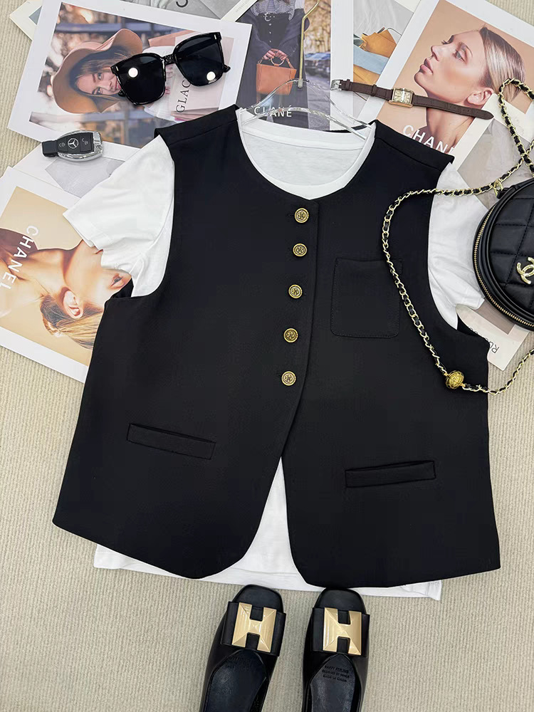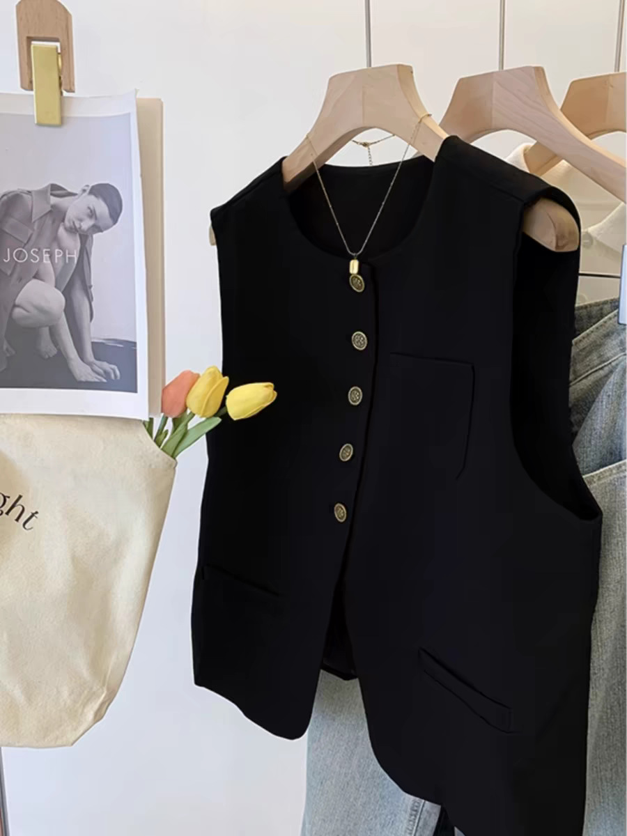 느슨한 둥근 목 싱글 브레스트 짧은 세트 조끼 여성 봄과 가을 유럽 유행 서양식 하이 엔드 조끼스토어 가기