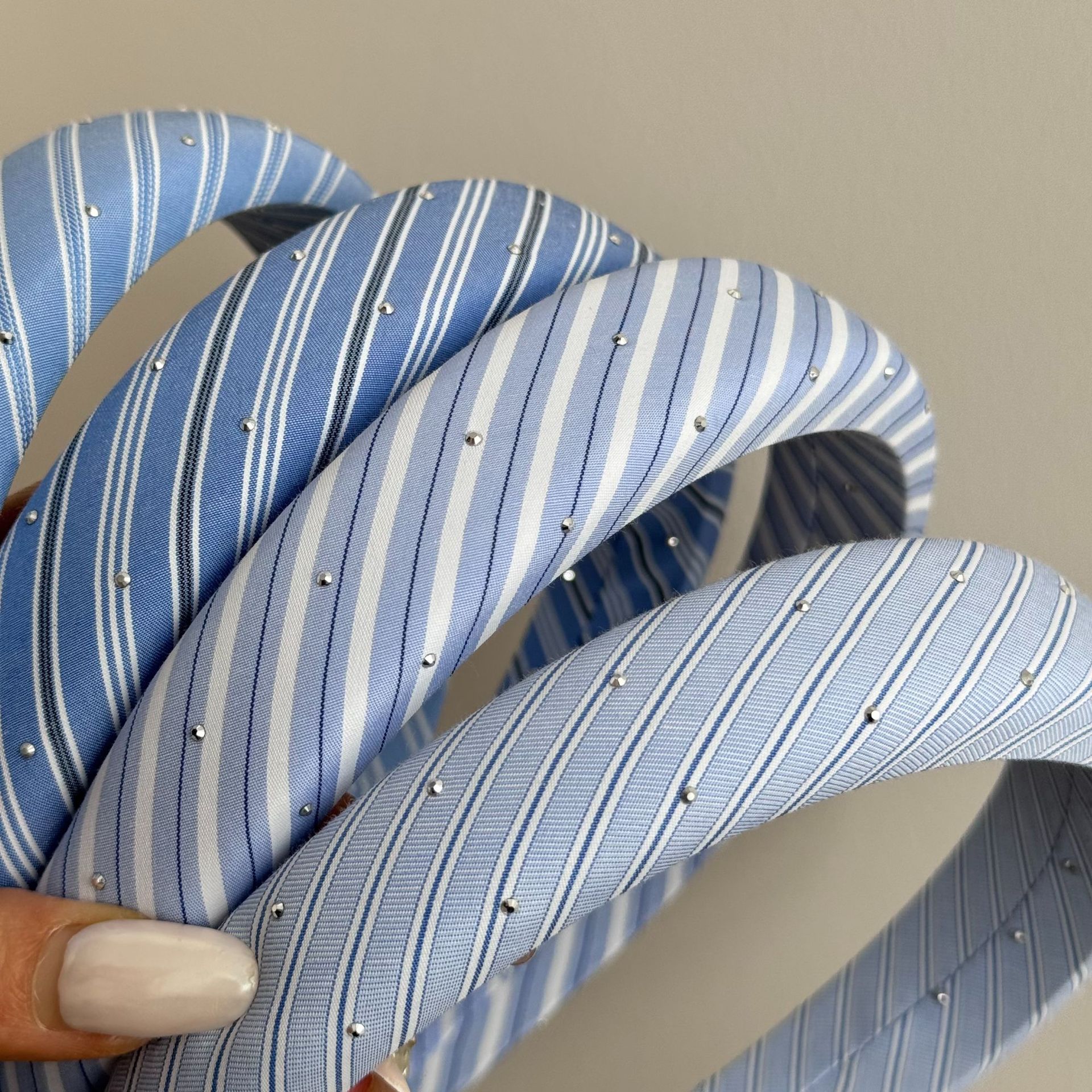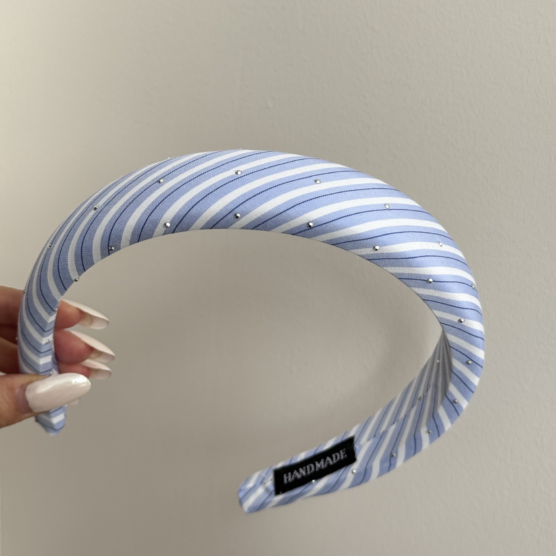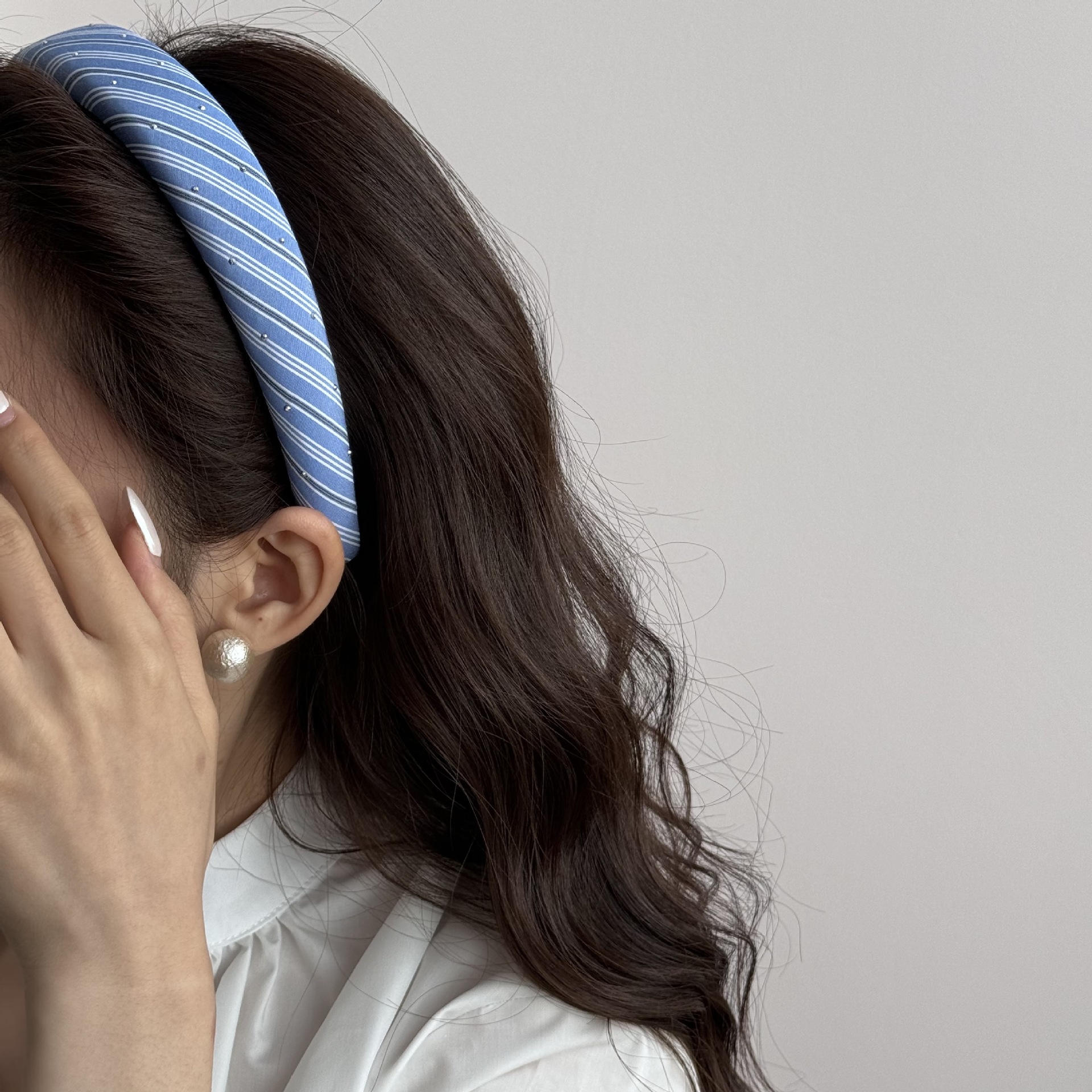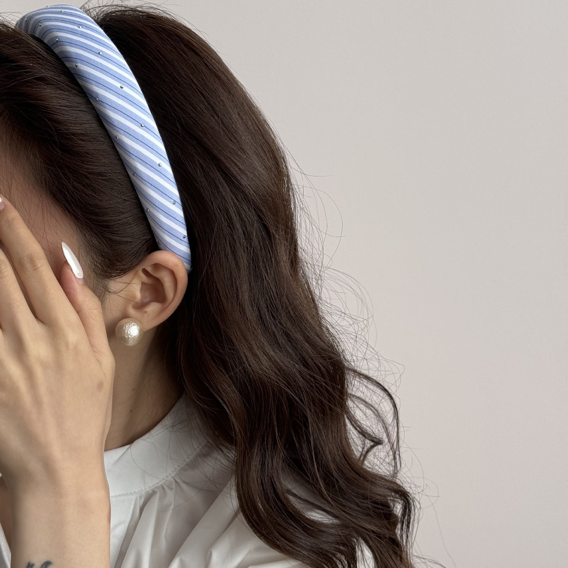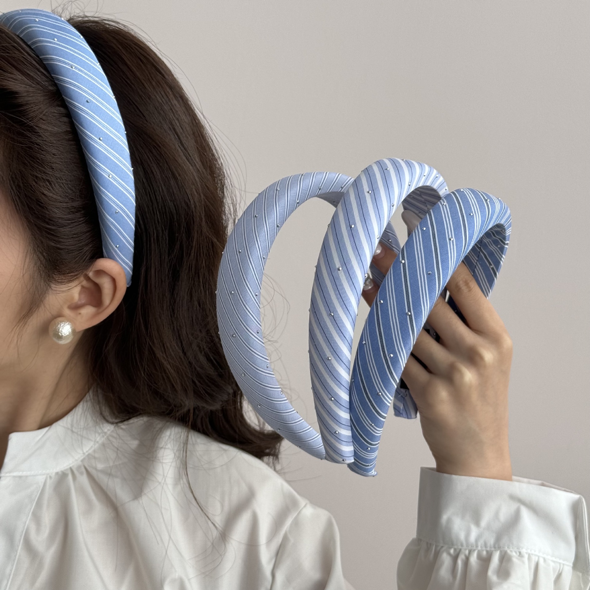블루 스트라이프 바다 소금 헤드웨어 새로운 작은 도트 트윌 패브릭 스폰지 헤어 밴드 패션 프레스 헤어핀 헤어 밴드