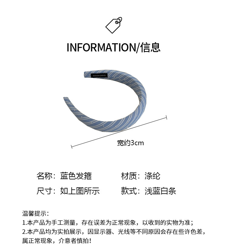 블루 스트라이프 바다 소금 헤드웨어 새로운 작은 도트 트윌 패브릭 스폰지 헤어 밴드 패션 프레스 헤어핀 헤어 밴드스토어 가기