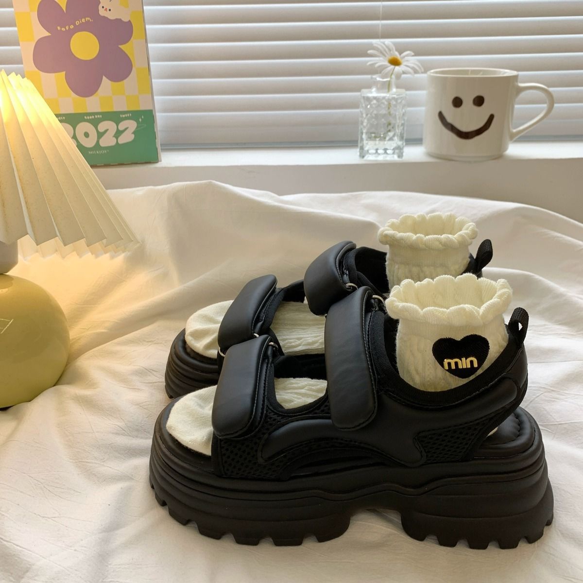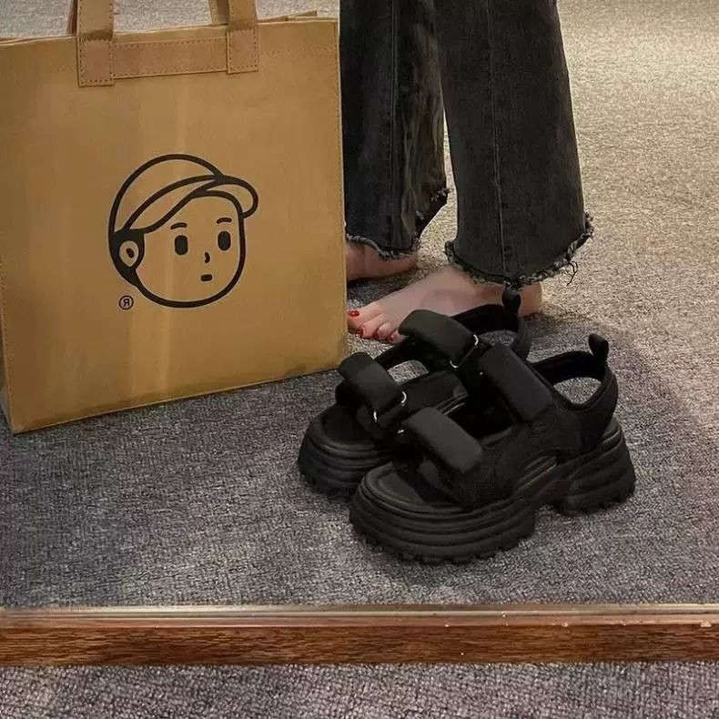 2025 두꺼운 단독 사이버 Celebrum 플랫폼 스포츠 샌들 유행 캐주얼 여름 라운드 발가락 오픈 발가락 벨크로 비치 신발 여성 신발스토어 가기