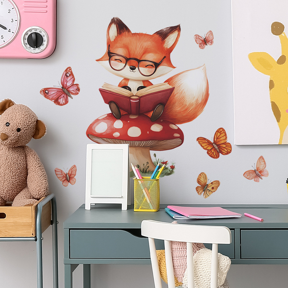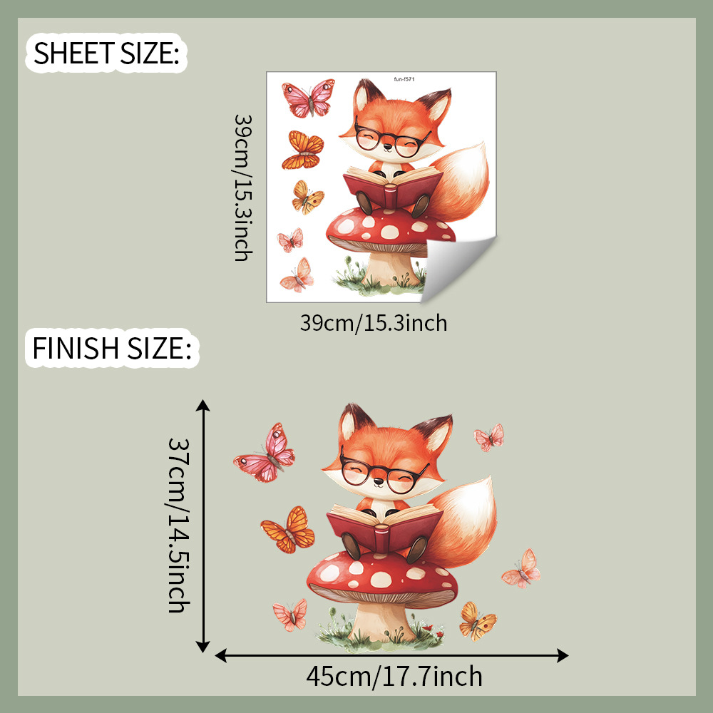 Fun-f571 귀여운 작은 여우 버섯 나비 침실 거실 홈 벽 배경 미화 장식 벽 스티커