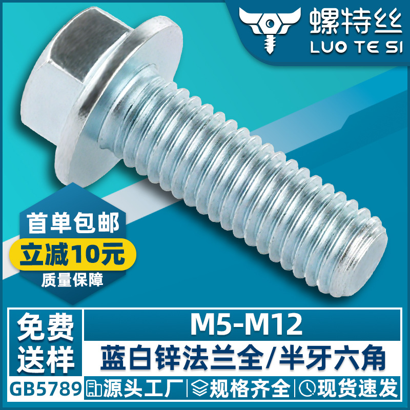 파란색 및 흰색 아연 외부 육각 플랜지 볼트 미끄럼 방지 반나사 플랜지 볼트 풀 나사형 외부 육각 볼트 M6M8스토어 가기