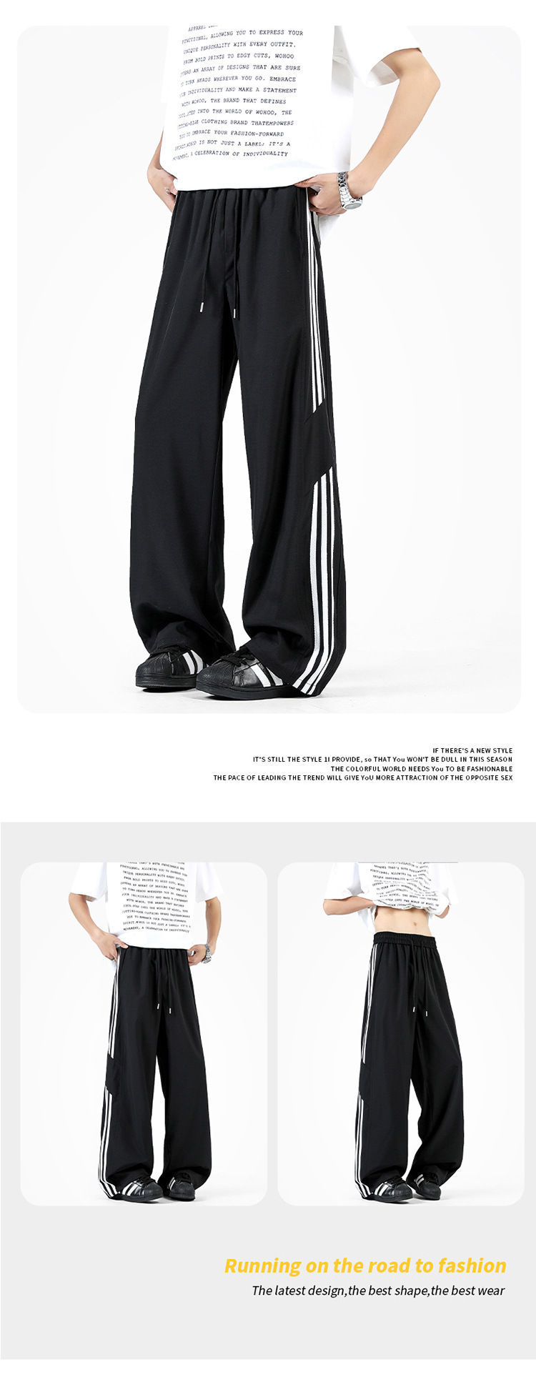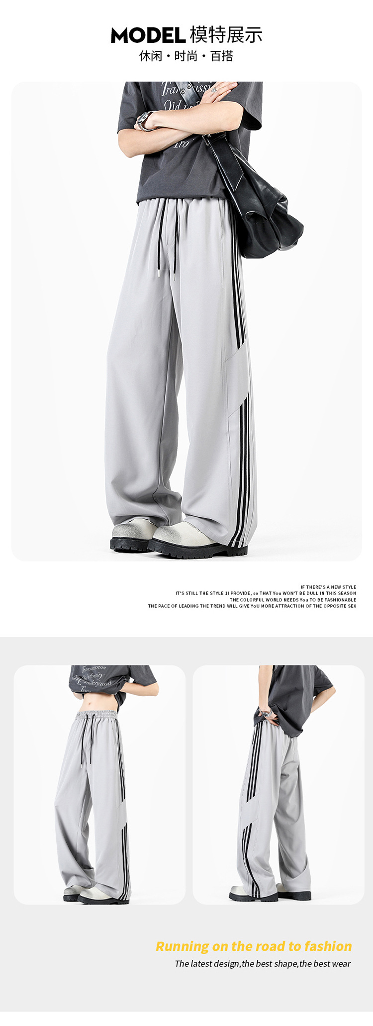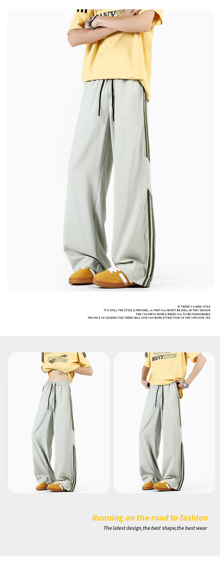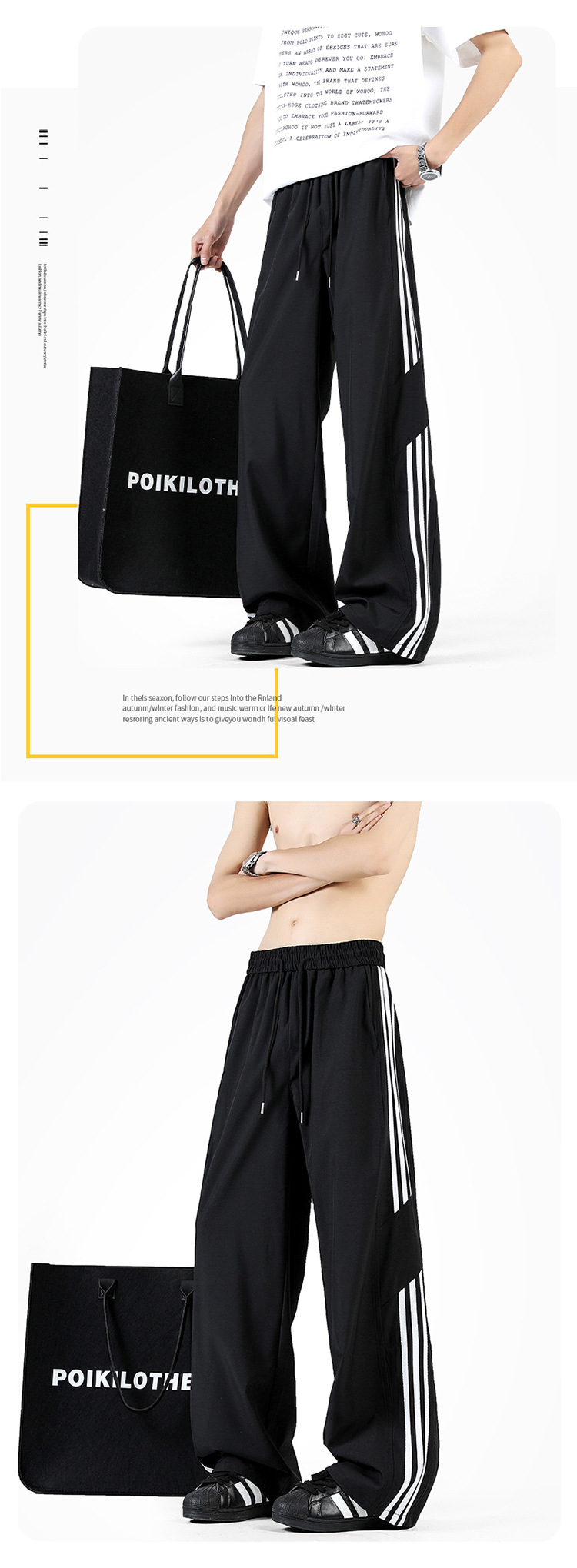 2025 여름 아이스 실크 스트라이프 스플 라이스 바시 바지 남성 트렌디 아메리칸 스타일 방수 캐주얼 바지 루즈 스트레이트 바지스토어 가기