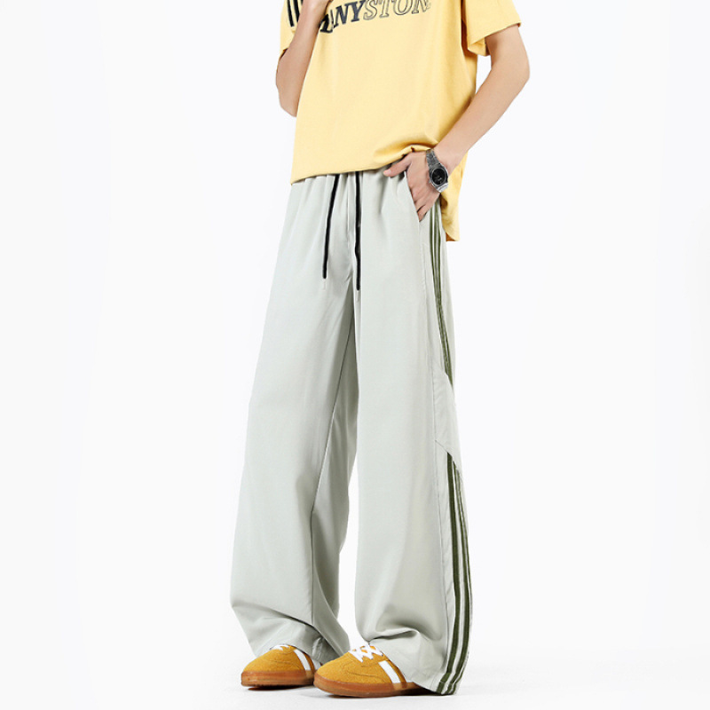 2025 여름 아이스 실크 스트라이프 스플 라이스 바시 바지 남성 트렌디 아메리칸 스타일 방수 캐주얼 바지 루즈 스트레이트 바지