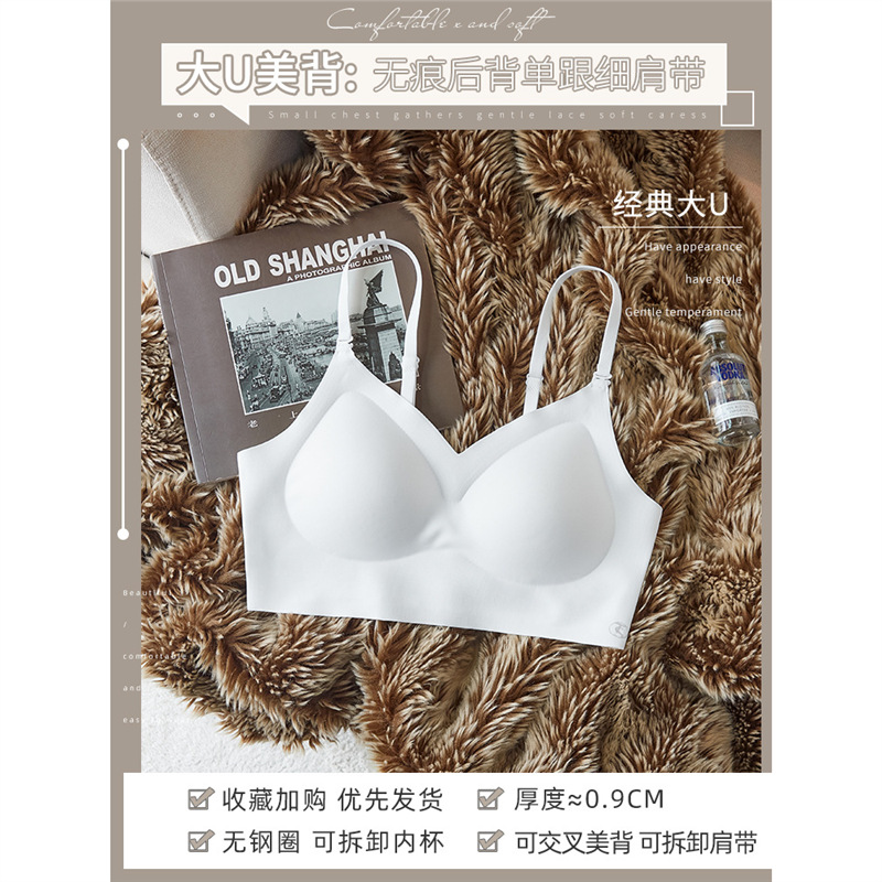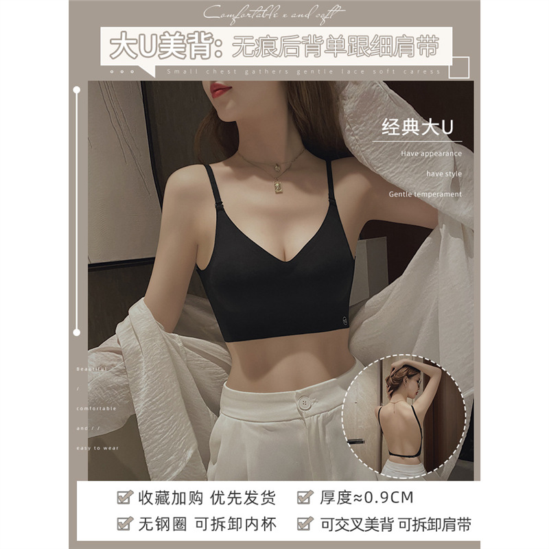 여름 얇은 섹시한 U 자형 아름다운 백 속옷 여성 내부 착용 조끼 외부 착용 추적 인 백리스 삼각형 컵 푸시 업 브라