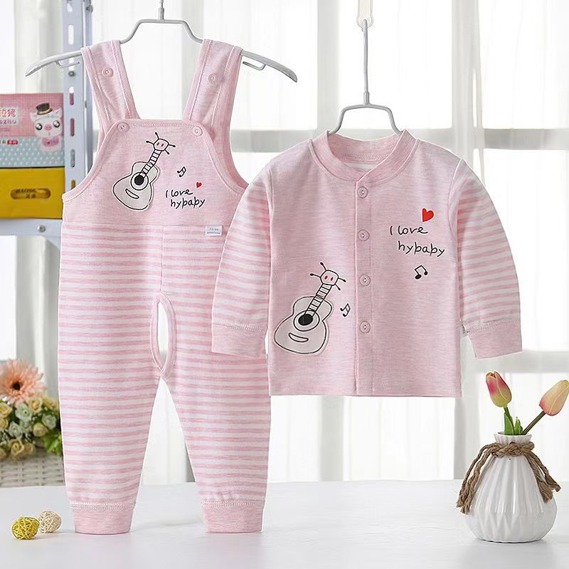 영유아 순면 작업복 세트, 아동용 가랑이 없는 점프수트 세트, 남아 및 여아용 봄, 가을 가정복 투피스 세트