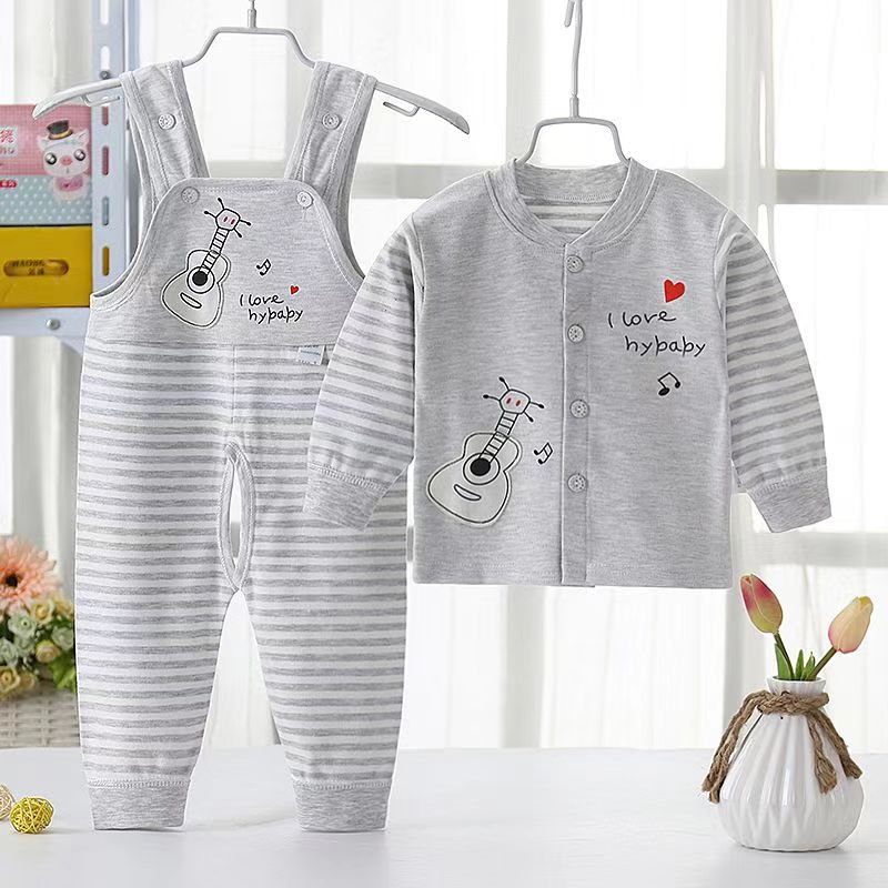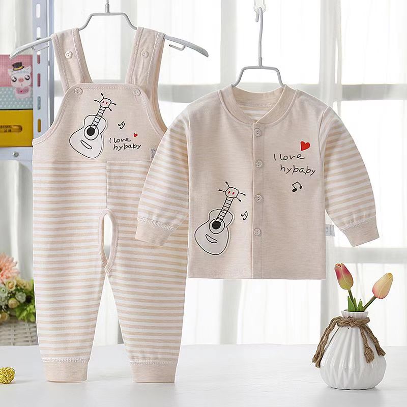 영유아 순면 작업복 세트, 아동용 가랑이 없는 점프수트 세트, 남아 및 여아용 봄, 가을 가정복 투피스 세트스토어 가기