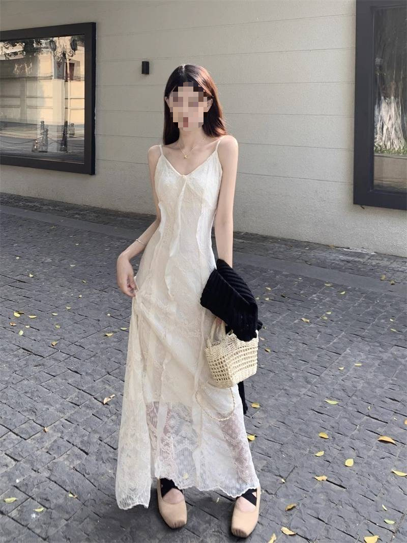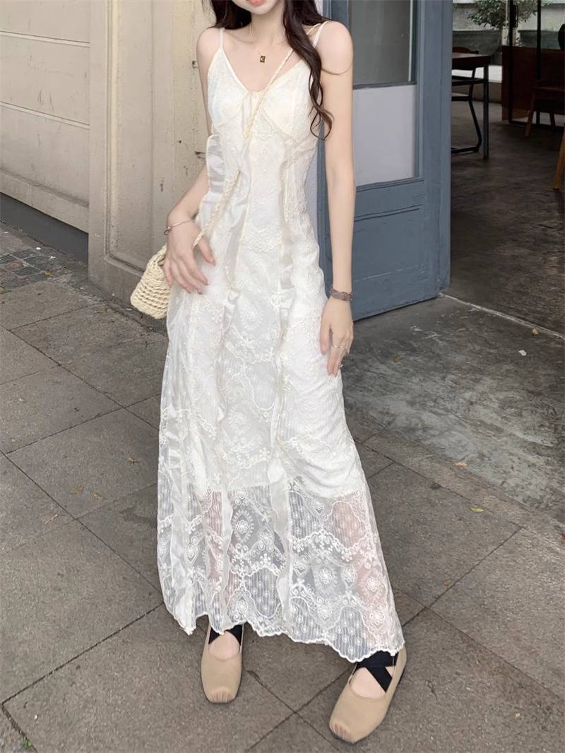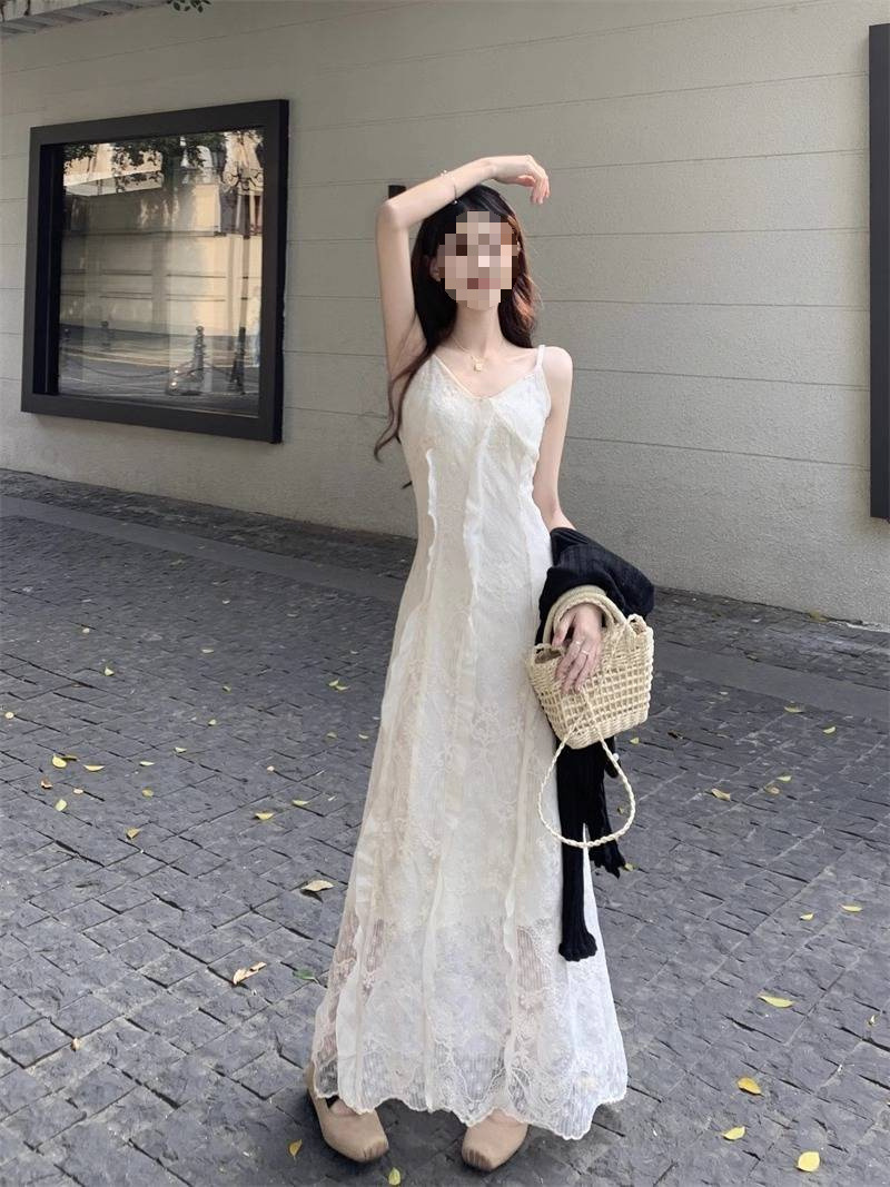 해변 휴일 칼라 레이스 슬링 원피스 여성의 2024 새로운 봄 플라티코돈 프랑스 우아한 요정 원피스 치스토어 가기