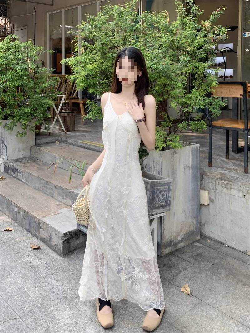 해변 휴일 칼라 레이스 슬링 원피스 여성의 2024 새로운 봄 플라티코돈 프랑스 우아한 요정 원피스 치