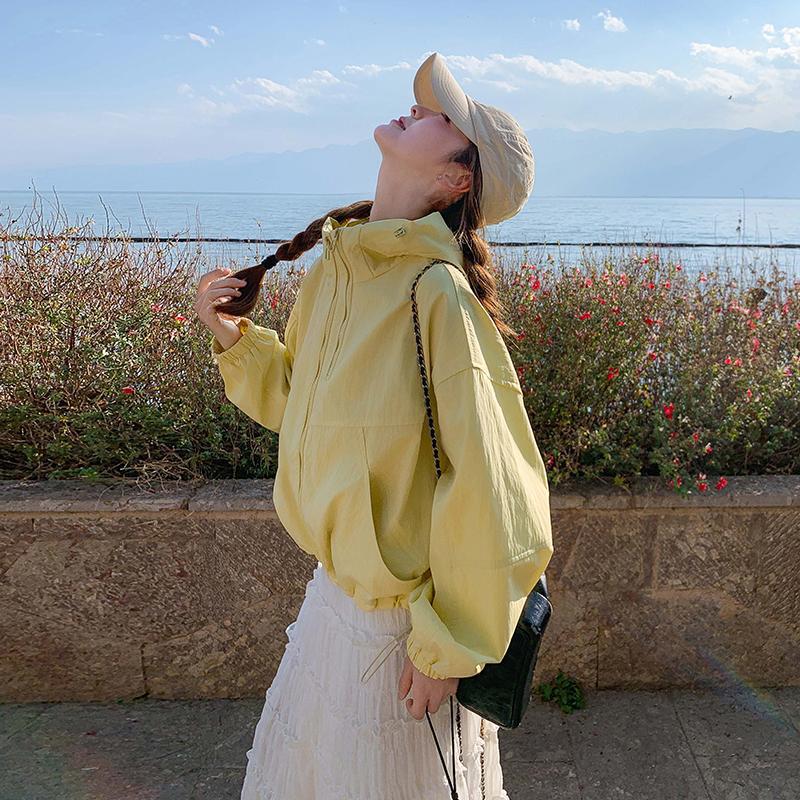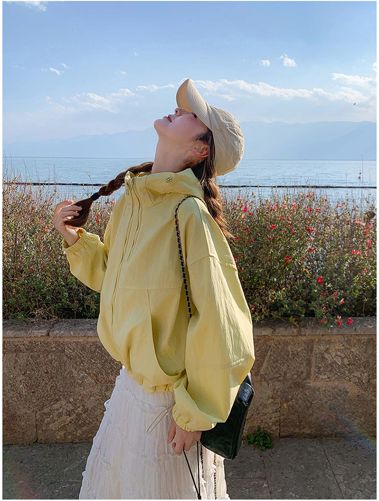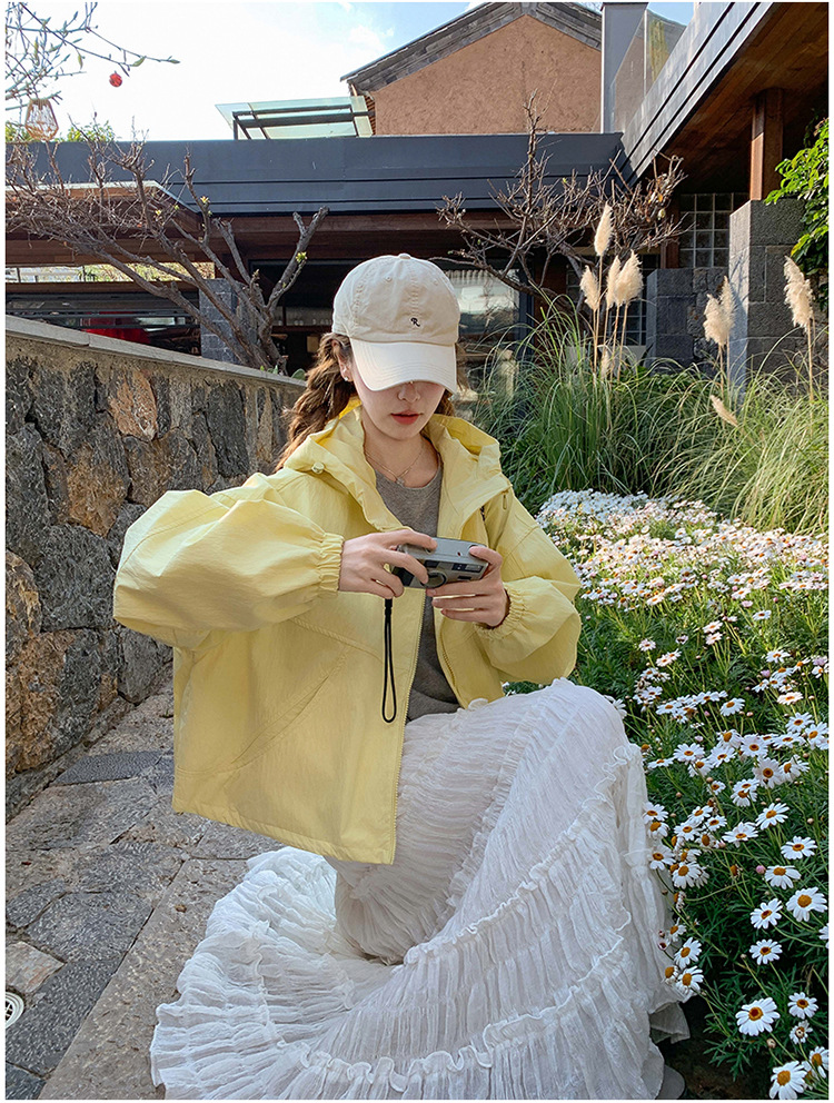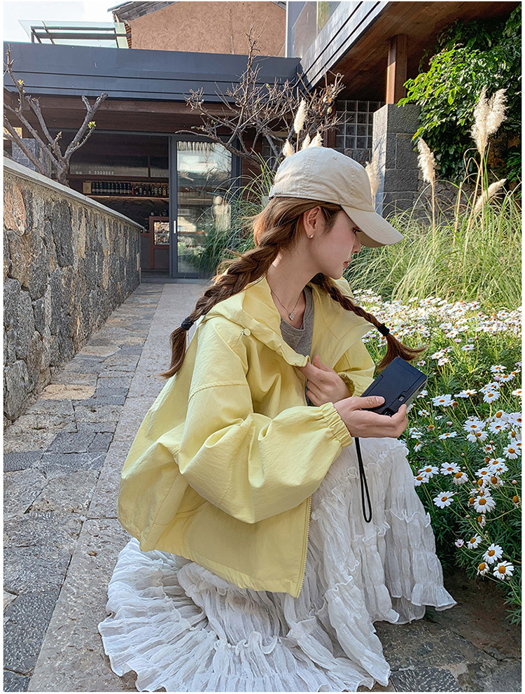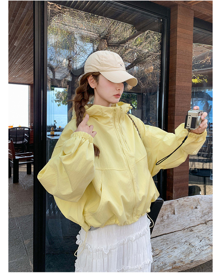 리얼 샷 한국 스타일 후드 재킷 여자 2025 봄 새 재킷 작은 짧은 느슨한 탑